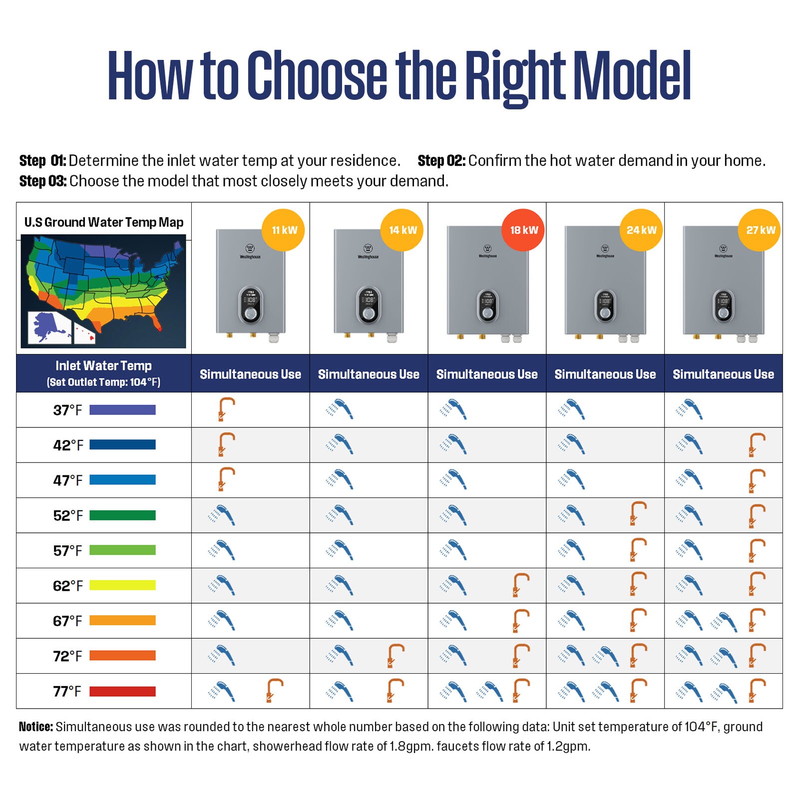 Westinghouse Electric Tankless Water Heater, tankless design is smaller than traditional tank water heaters, which can be wall-mounted and more compact in size. Ideal for small apartments, perfect for showers, sinks, dishwashers, washing machines, etc. Including multi-safety protections. Smart home eligible for Bluetooth and Wi-Fi.