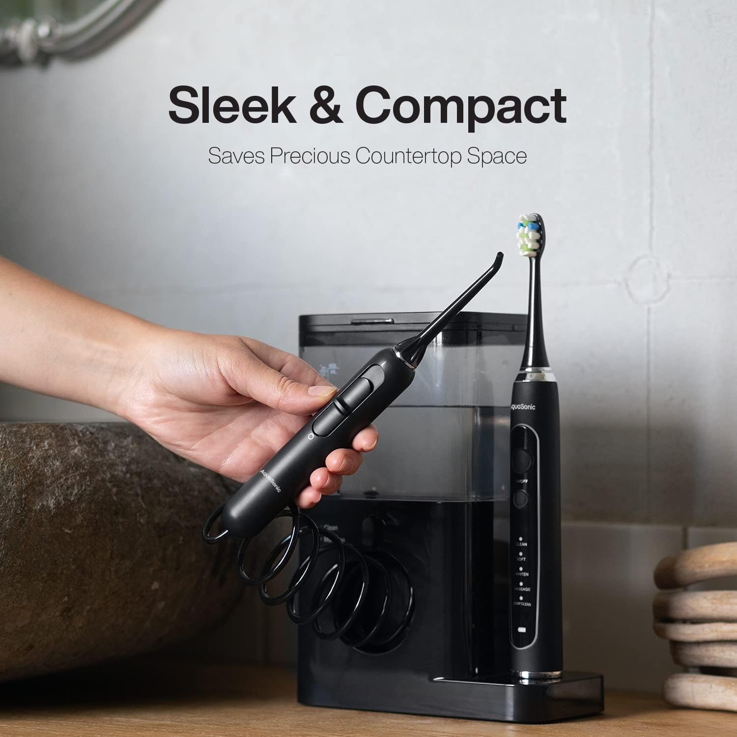 AquaSonic Home Dental Center PRO – 600ml Tank, Electric Power Toothbrush & Water Flosser, Black Series Pro+Oral Irrigator – ADA Accepted (Black)