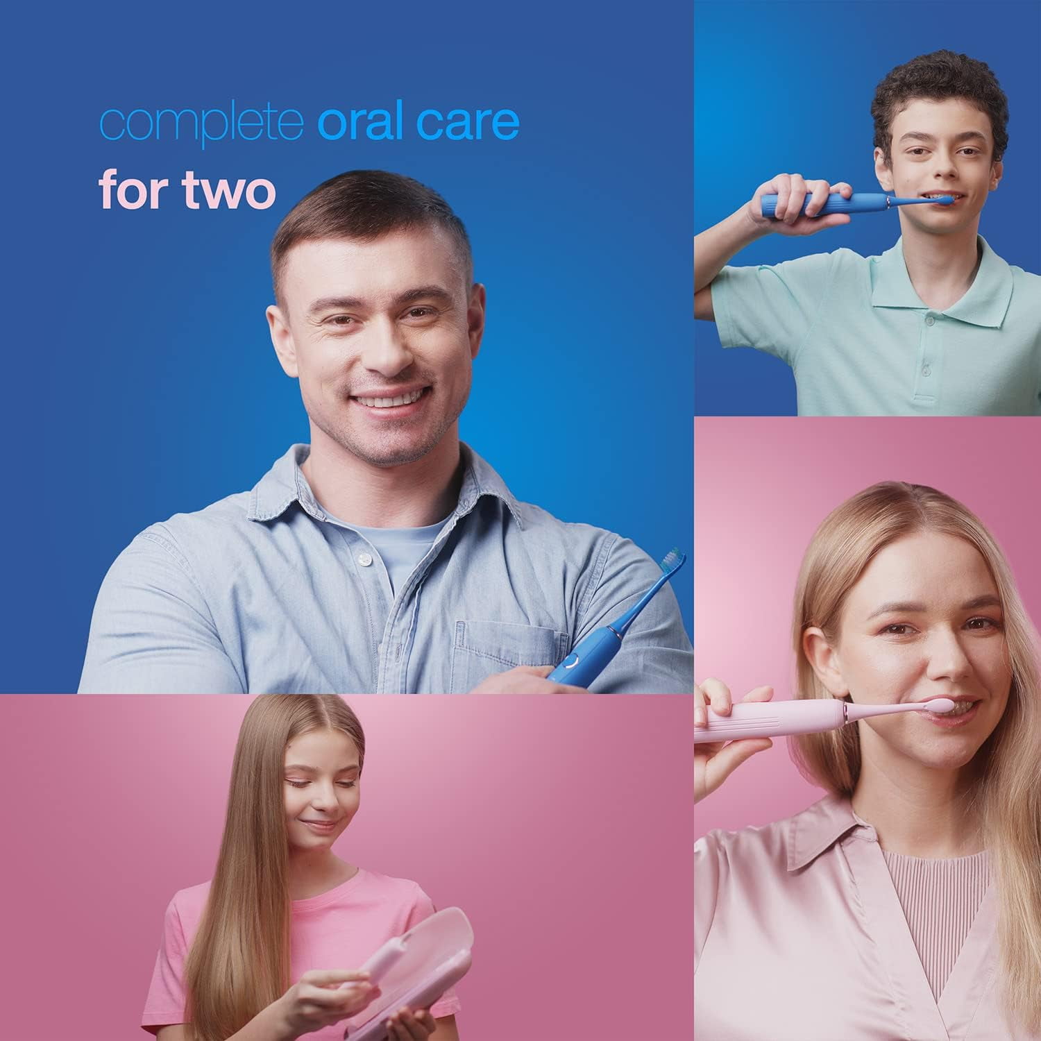 Powerful 40,000 vibrations per minute motors for effective plaque removal 3 unique brushing modes, including whitening and gum health settings Long-lasting 30-day battery life for extended use between charges Smart timers with vibrating notifications for proper brushing duration 10 DuPont-engineered replacement brush heads included 2 BPA-free hard-shell travel cases for convenient on-the-go use Stylish design in baby pink and coral blue colors Comprehensive set with all necessary accessories (brush heads, cases, charging cables) Suitable for couples, families, or individual users seeking advanced oral care technology