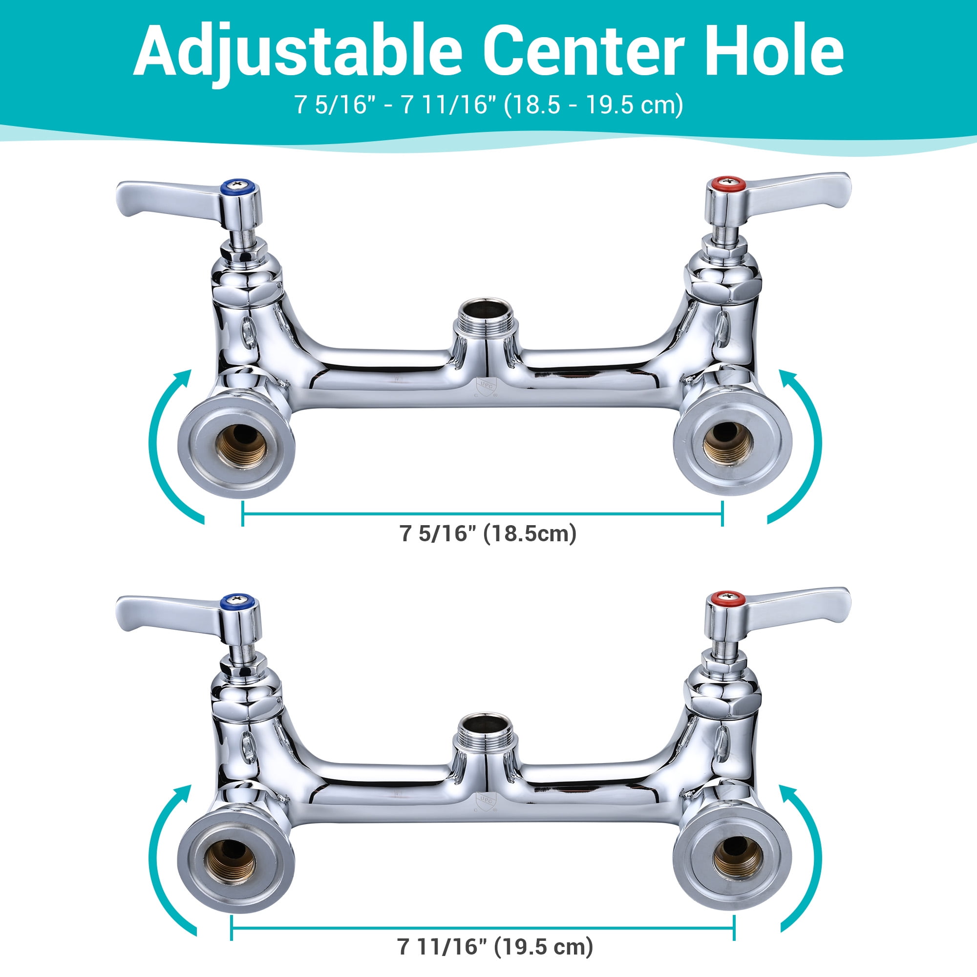 Aquaterior Wall Mount Pre-rinse Faucet with Sprayer features durable construction, 2 outlets for flexible cleansing and convenient operation with lever handle. It is perfect for home kitchen, restaurant, bar to use. Efficient & Safe Rinsing – Aquaterior Wall Mount Pre-rinse Faucet with 8″ adjustable center distance, features high efficiency spray valve for fast rinsing & making cleaning chores a breeze; cUPC & NSF certificated to ensure water safety & meets CEC’s requirements to save water with higher pressure water stream, suitable for 1, 2 or 3 Compartment Professional Grade Commercial Kitchen sink use, ideal for food service, commercial kitchens, restaurants and hotel applications. Durable Construction – Stainless steel spring and zinc alloy lever handle for rust-resistance, hose of sprayer for supporting 100,000 times of bending, brass faucet cartridge to withstand 500,000 times of opening & closing, perfectly satisfies frequent use; Also 5-year warranty for quality issue. Flexible Sprayer & Swivel Faucet – 22″ high-arch spring hose can be easily stretched to any corner, sprayer with strong water pressure to efficiently rinse dishes or utensils; 12″ swivel add-on faucet can rotate 360 degrees to reach different sinks for flexible cleansing. Easy Adjustment – Double lever handles for conveniently adjusting water temperature and flow rate; Valve to control sprayer, lever handle on the middle for opening and closing add-on faucet individually. Anti-leakage Design – Double-layer gaskets on all the joints perfectly enhance leak-tightness of the faucet without concerns about wrapping water blocking tape; Also, extra gasket provided to replace old gaskets for extending the lifespan Specifications: – Overall Dimension(LxWxH): 11 13/16″ x 12 3/16″ x 26″ (30 x 31 x 66 cm) – Wall Bracket Length: 12 3/16″ (31 cm) – Spout Reach: 12″ (30.5 cm) – Spout Height: 3 3/8″ (8.6 cm) – Hose Length: 21 5/8″ (55 cm) – Fit for < 60cm width sink – Center Hole Distance: 7 5/16" to 7 11/16" (18.5 to 19.5 cm) – Net Weight: 11.8 Lbs (5.35 kg)