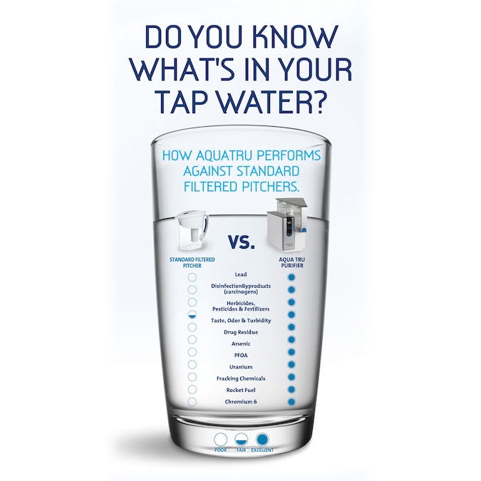AquaTru creates purified, great tasting water from your tap. No plumbing or installation required. AquaTru is the first and only countertop reverse osmosis water purifier certified to NSF standards to remove 83 contaminants, including lead, Chromium-6, Chlorine, Fluoride, PFAs, and more. Our patented 4 stage Ultra Reverse Osmosis Technology uses the same technology as all the major bottled brands, but in a convenient, compact countertop design. With AquaTru, you can transform your tap water into pure, delicious water you can trust. AquaTru’s water is so fresh and delicious, it’s easy to meet and beat your hydrations goals. AquaTru’s pure water is also the best option for brewing the perfect cup of tea or coffee and it’s even great for cooking. Don’t forget about your furry friends, pets love AquaTru water.