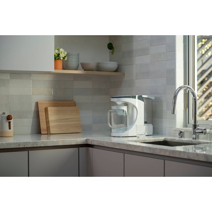 - 64 oz GLASS CARAFE for easy plastic-free pouring and sleek control panel with change filter and maintenance alerts
