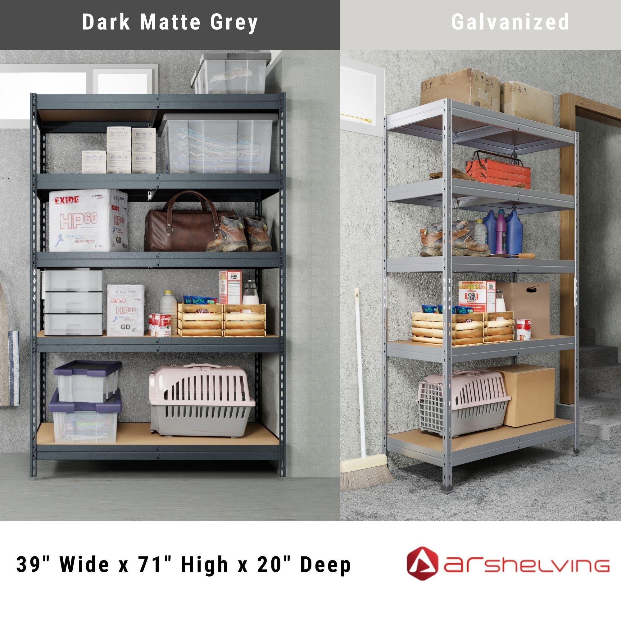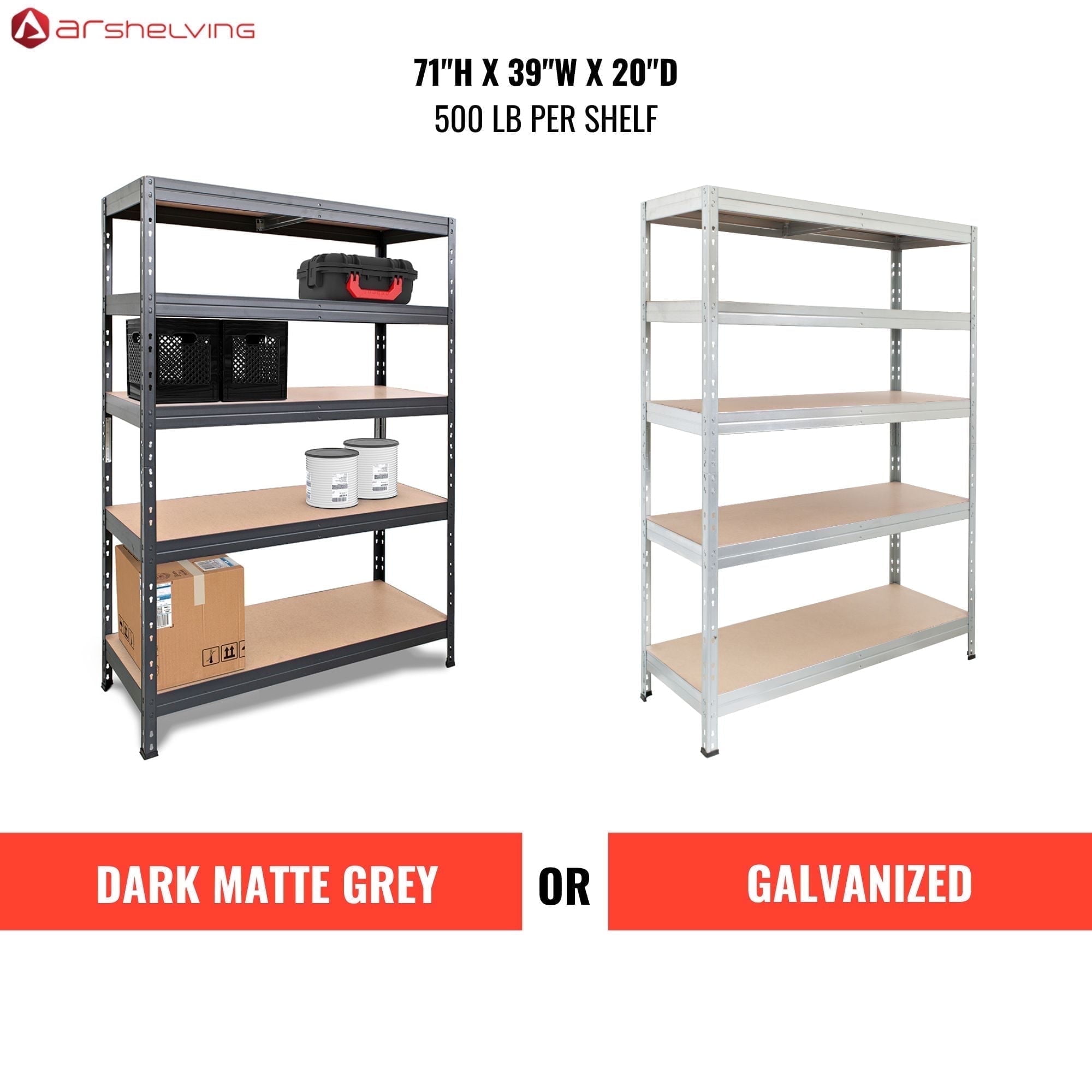 Ar Shelving 5- Tier Galvanized Steel Heavy Duty Garage Storage Shelving Unit with HDF Rack (39.2 in. W x 71 in. H x 20 in. D)