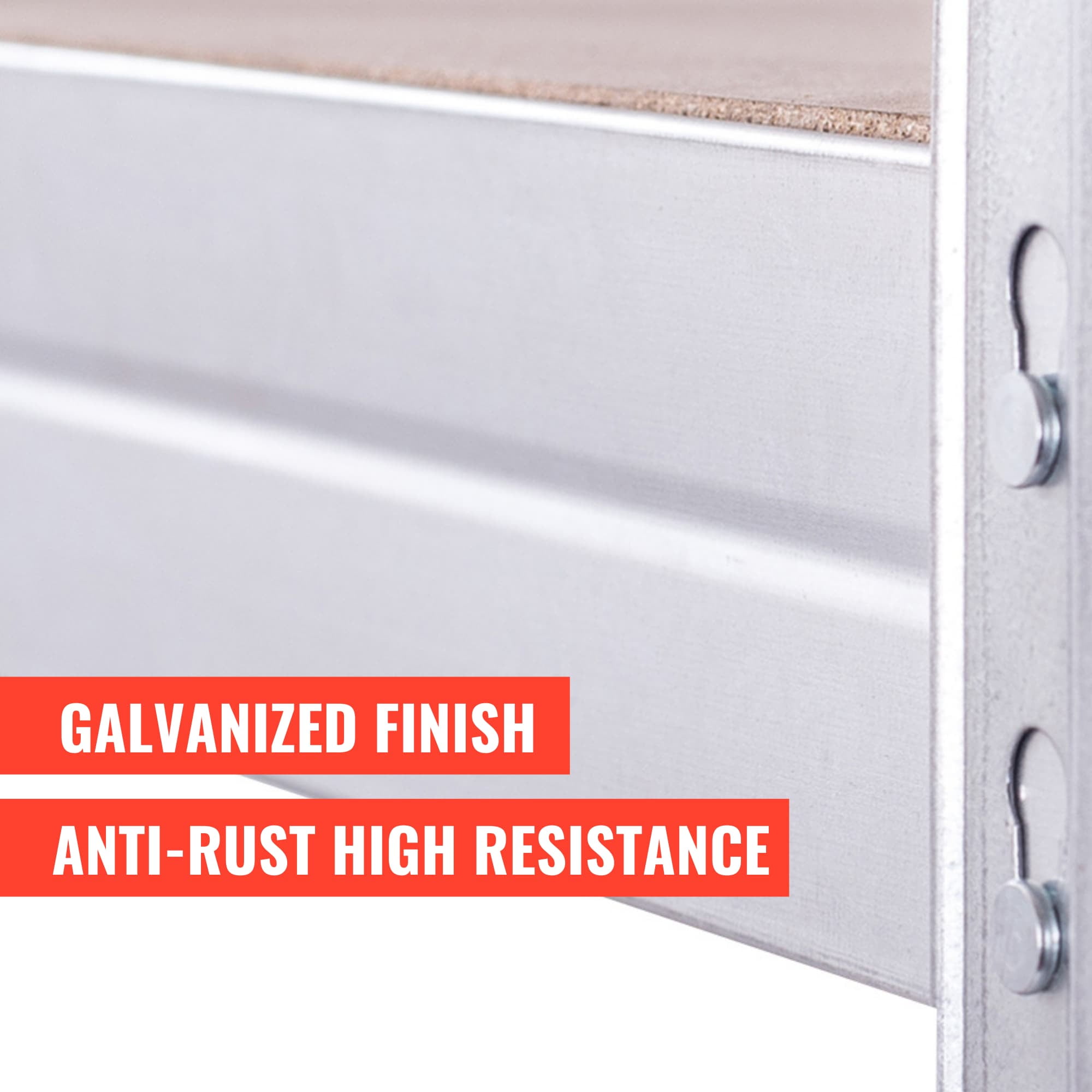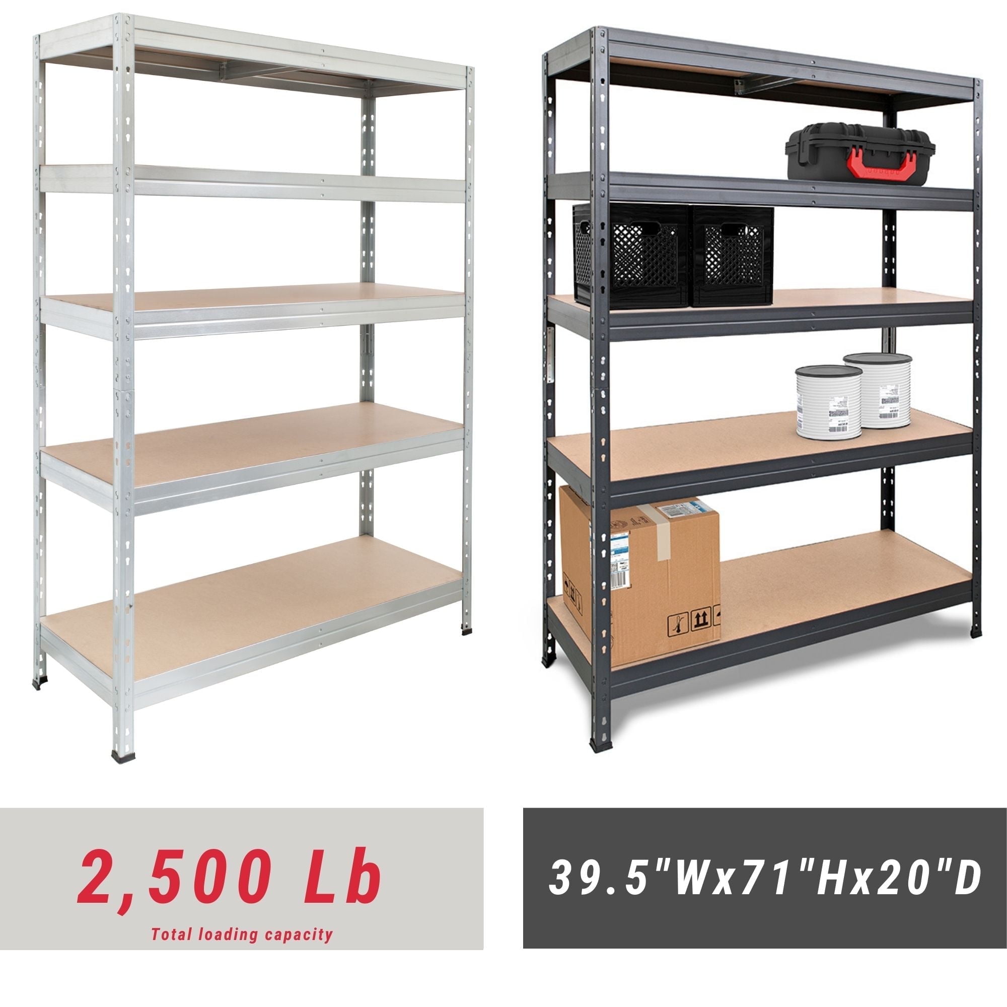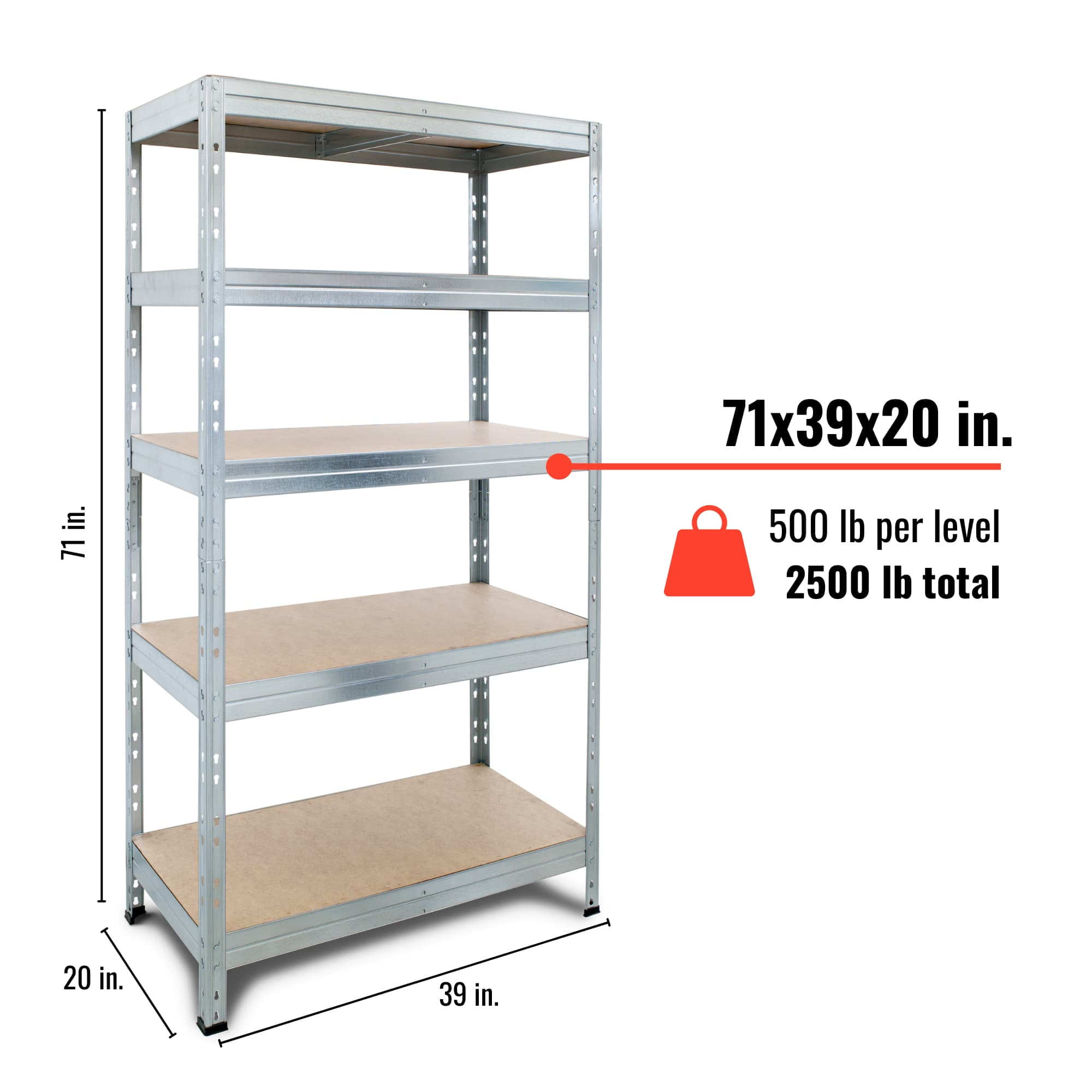 Galvanized Steel Finish for Superior Rust Protection – More durable and rust-resistant than powder-coated shelving, ideal for humid or demanding environments. Heavy-Duty Steel Frame – Engineered to support high weight loads without bending or warping, offering reliable stability for years. Polished High-Density Fiberboard Decks – Easy to clean and built to last, the smooth wood surface adds a modern touch while resisting damage. Adjustable Shelf Heights – Customize spacing to store large tools, boxes, supplies, or bins with ease. Tool-Free, Easy Assembly – Designed for quick and hassle-free setup by two people. No bolts or complex instructions required. Spacious Storage Dimensions – 39.2″ W x 71″ H x 20″ D provides ample room for all your storage needs, whether at home or at work. Versatile Multi-Use Design – Perfect for garages, warehouses, utility rooms, retail displays, or home offices. Low Maintenance & Long-Term Value – Galvanized steel resists corrosion and scratches, reducing upkeep and increasing lifespan.