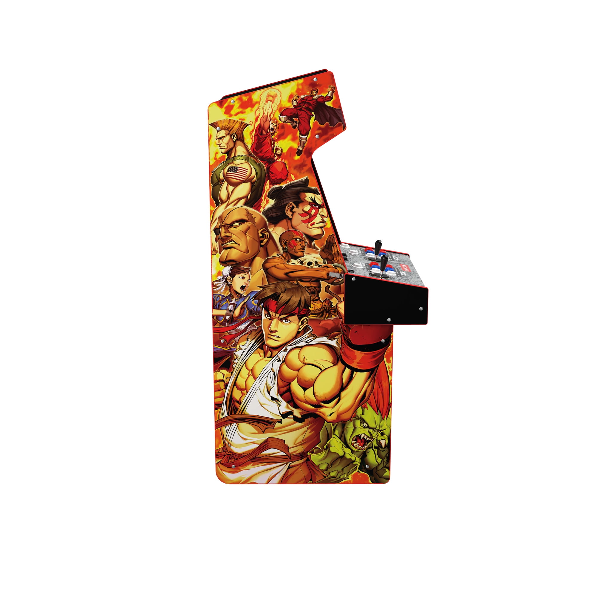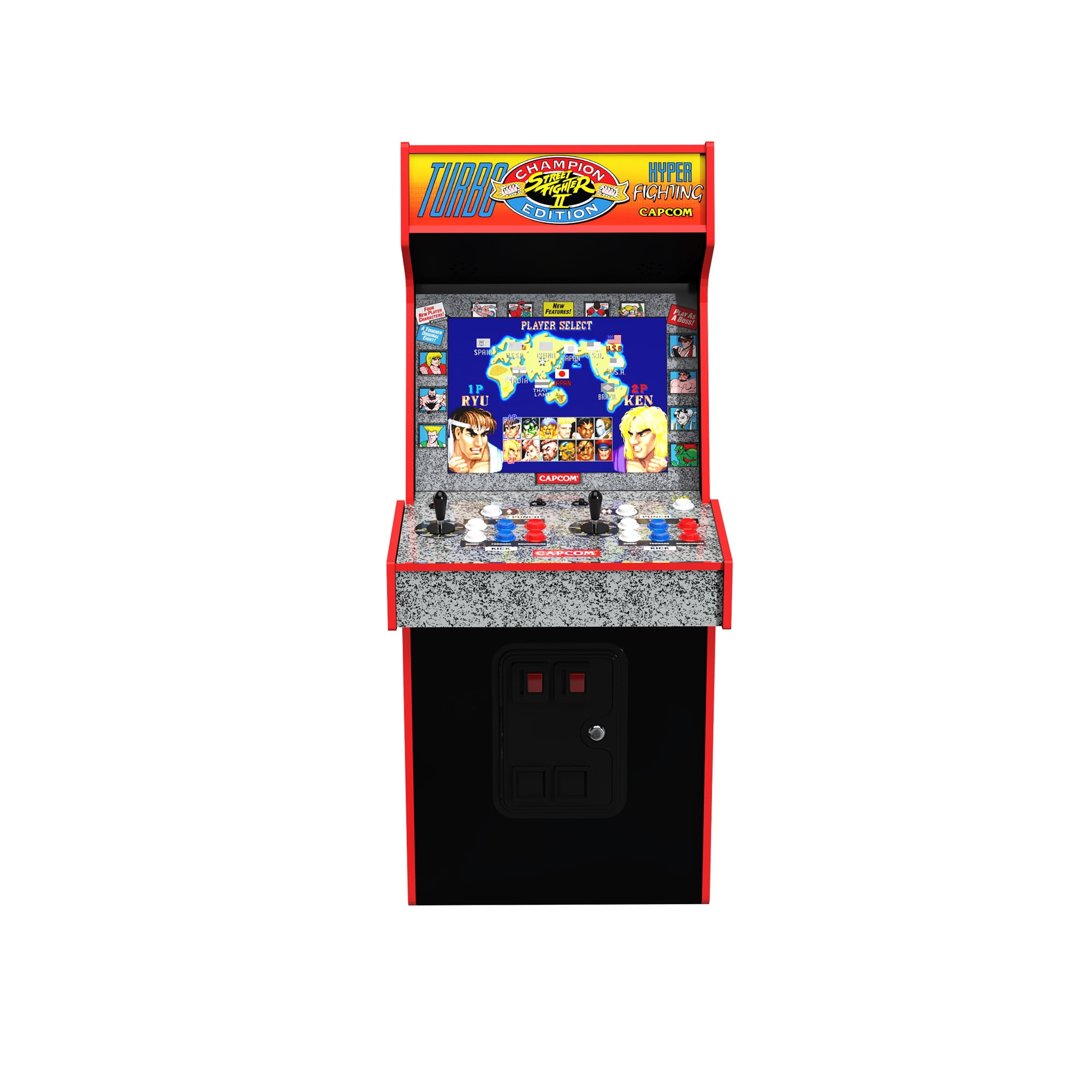 Arcade1Up introduces remote WiFi LIVE online play in a Capcom Legacy home arcade game machine! STREET FIGHTER II™ was the first one-on-one fighting game to feature a variety of characters with their own unique martial arts combinations, propelling it to become an instant arcade phenomenon, and one of the most influential arcade games of all time. Now, over three decades later (and as iconic as ever), Arcade1Up’s Capcom Legacy Arcade Game Yoga Flame Edition features a red-themed cabinet aesthetic inspired by the mystical Dhalsim’s fiery attack…and this Arcade1Up game machine is THE way to bring that fierce fightin’ ‘90s style home! Easily assembled, Arcade1Up game machines provide authentic (and yes, way nostalgic) arcade experiences for your family game room, fan cave, or a welcome distraction in the office. They play great, look great, and are instant conversation pieces. Let’s start with the marquee game, STREET FIGHTER II TURBO: HYPER FIGHTING. An unreal, amped-up iteration of the title that absolutely revolutionized the fighting game genre! From Ryu to Ken to Chun-Li and all of your other favorite combatants, perfect your combos, and pile up those victories. Also included are STREET FIGHTER II™: CHAMPION EDITION and SUPER STREET FIGHTER™ II TURBO. All at your fingertips, all just like how you remember them! KING OF DRAGONS™, STRIDER™, PROGEAR™, BATTLE CIRCUIT™, SUPER PUZZLE FIGHTER™, SATURDAY NIGHT SLAM MASTERS™, CAPCOM SPORTS CLUB™, FINAL FIGHT™, GIGA WING™, CAPTAIN COMMANDO™, ARMORED WARRIORS™, are also ALL included. Switch it up to any included game at will, with the easy to navigate on-screen menus. Oh, and in addition to the WiFi LIVE play, see how your high scores measure up with online WiFi leaderboards! Iconic arcade games. Pop culture imagery that has stood the test of time. Nostalgia that transcends generations. Arcade1Up calls this the “Legacy Edition” for a reason…make that many reasons!
