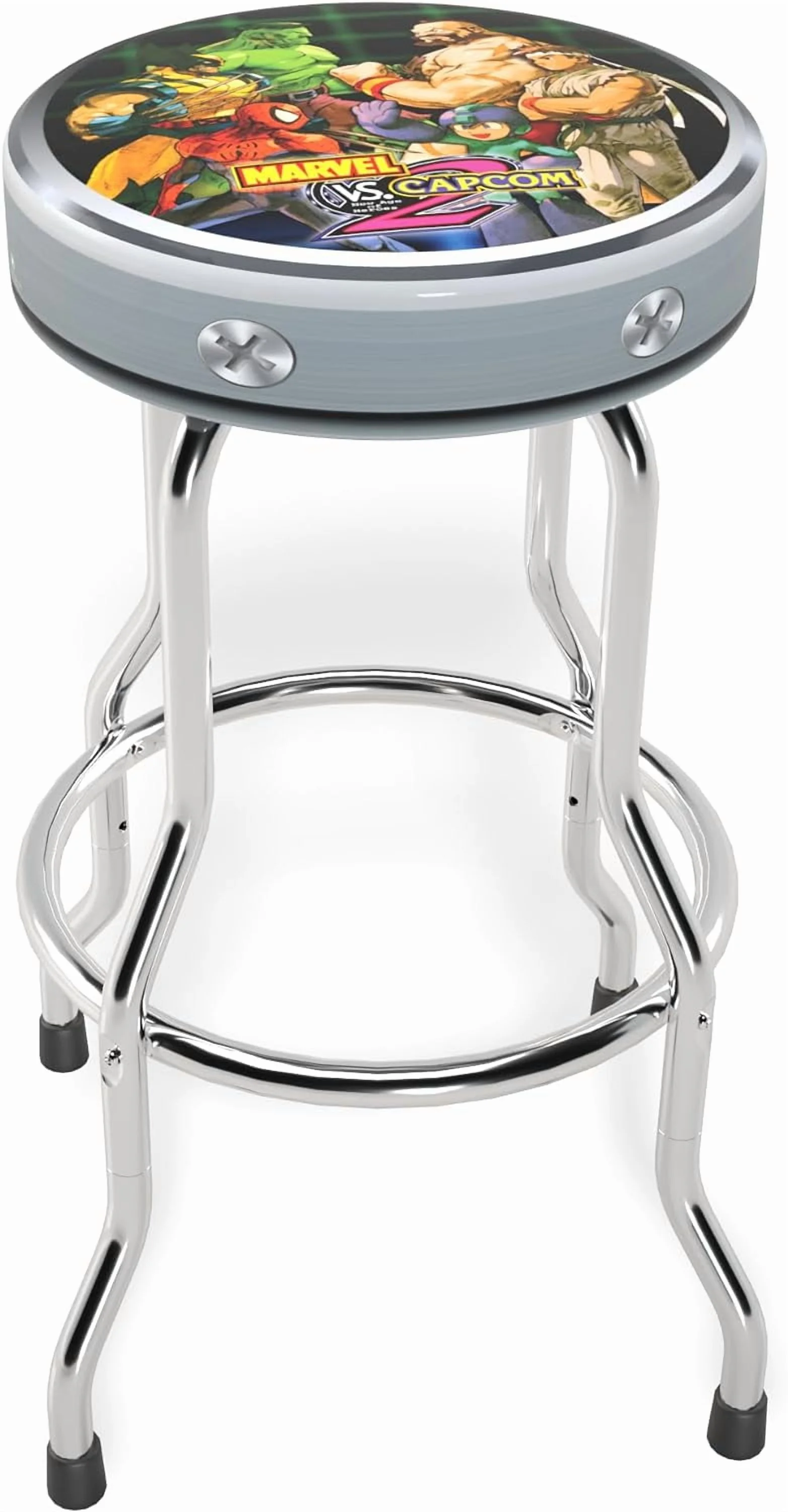 Arcade1Up Marvel Vs Capcom 2 Round Seat Adjustable Height Backless Stool, Multicolor Durable Construction: Crafted with a robust metal frame, ensuring longevity and stability for extended gaming sessions Optimal Comfort: The cushioned seat is designed for comfort, allowing gamers to focus on gameplay without distractions Customizable Height: Features adjustable height to cater to individual preferences, perfect for both casual gaming and intense battles Sleek Modern Design: Elevates your game room or entertainment area with a sophisticated design that complements your gaming setup Compact and Lightweight: Easy to move and store, offering practicality beyond gaming and suitable for additional seating in your living space