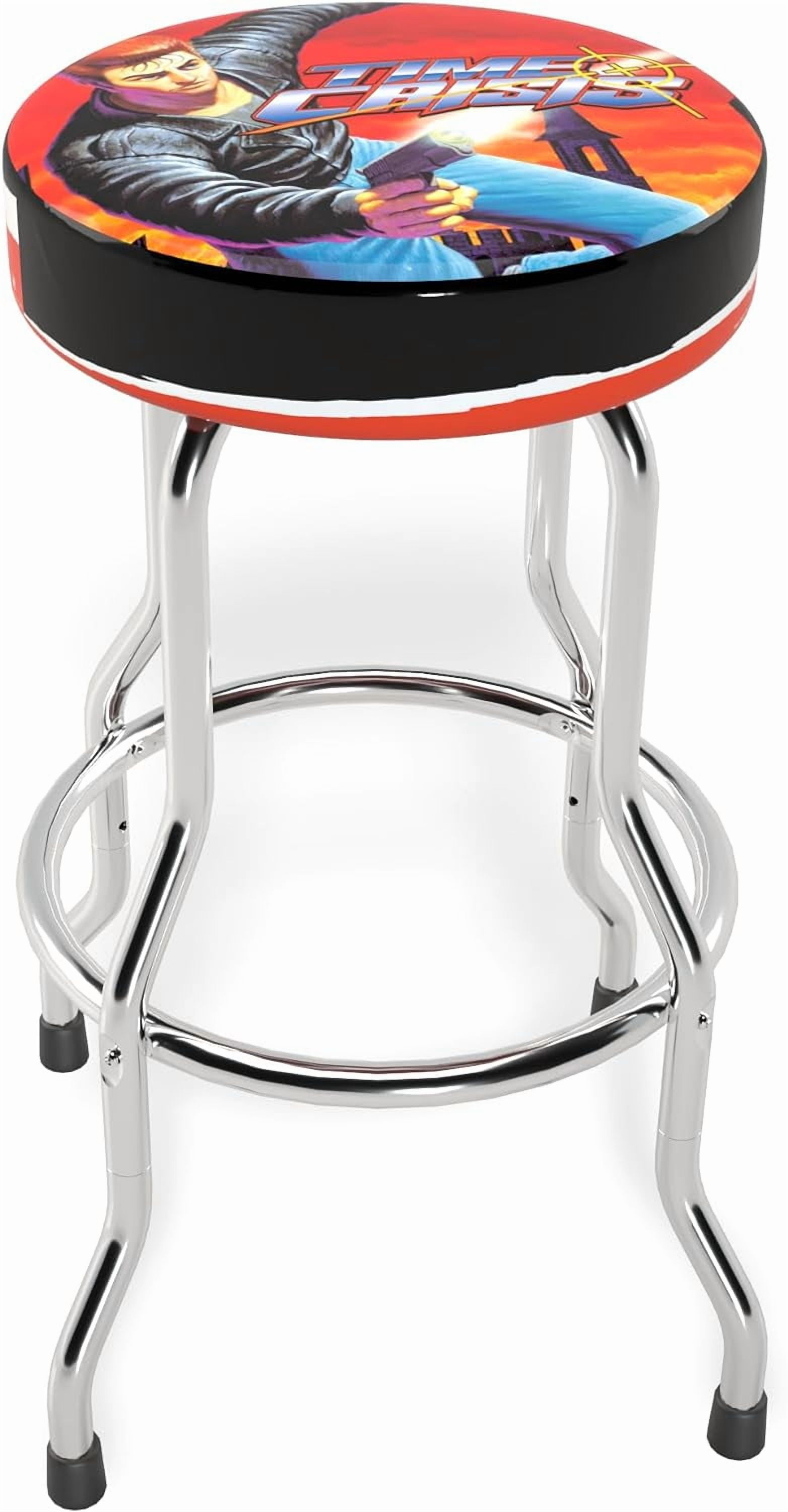 Arcade1Up Time Crisis Adjustable Stool with Chrome-Plated Steel Frame, Multi-Color Durable Construction: Crafted with a robust metal frame, the Arcade1Up Adjustable Stool ensures longevity and stability, providing a reliable seating solution for extended gaming sessions Optimal Comfort: The cushioned seat of this premium stool is designed for optimal comfort, allowing gamers to focus on their gameplay without distractions, enhancing the overall gaming experience Customizable Height: The standout feature of this stool is its adjustable height, catering to individual preferences Easily customize the stool to your desired seating position for casual gaming or intense battles Sleek Modern Design: Elevate your game room or entertainment area with the sleek and modern design of the Adjustable Stool, adding a touch of sophistication to your space Compact and Lightweight: With its compact and lightweight construction, this stool is easy to move and store, offering practicality beyond gaming and seamlessly combining functionality with versatility