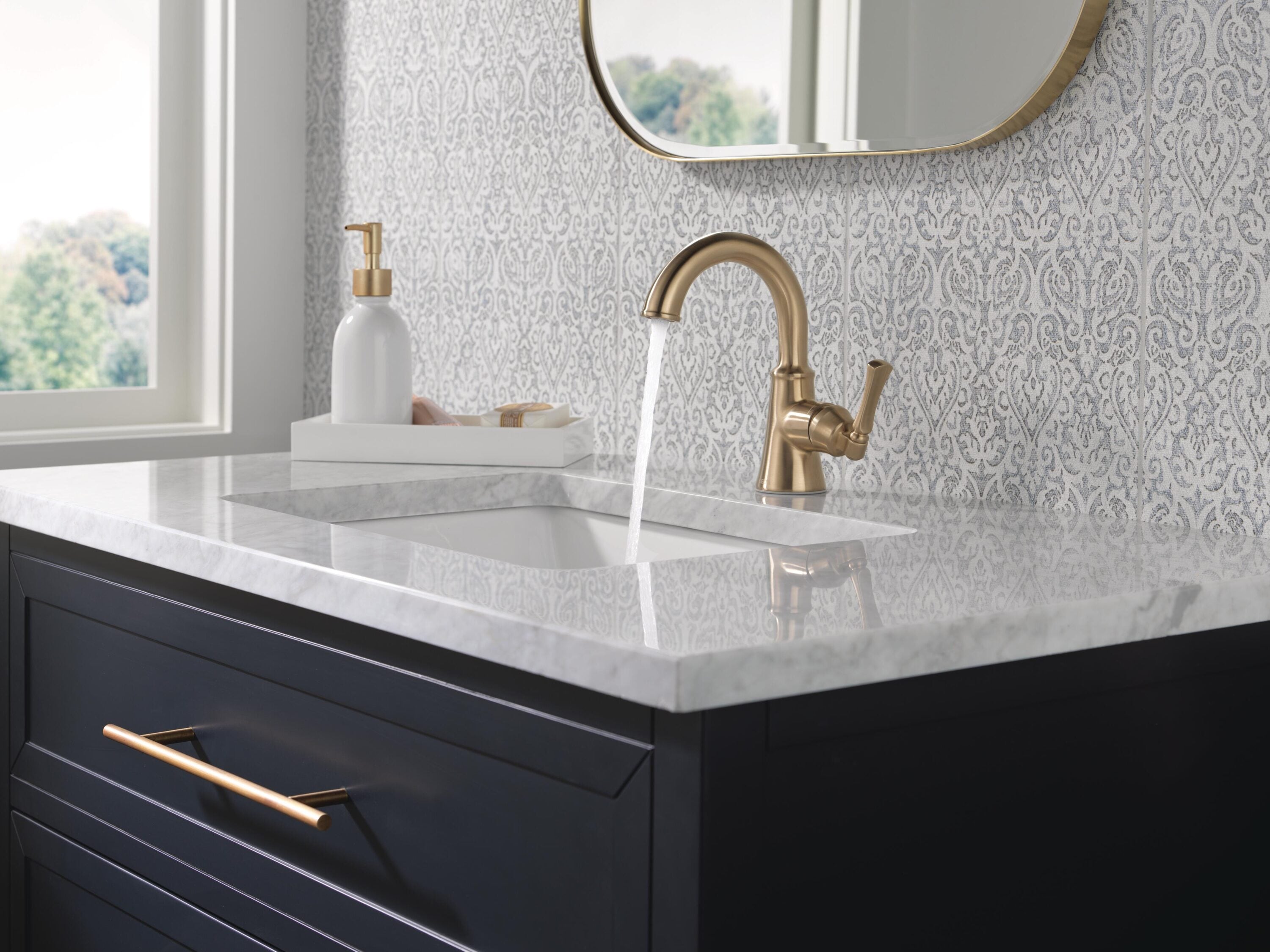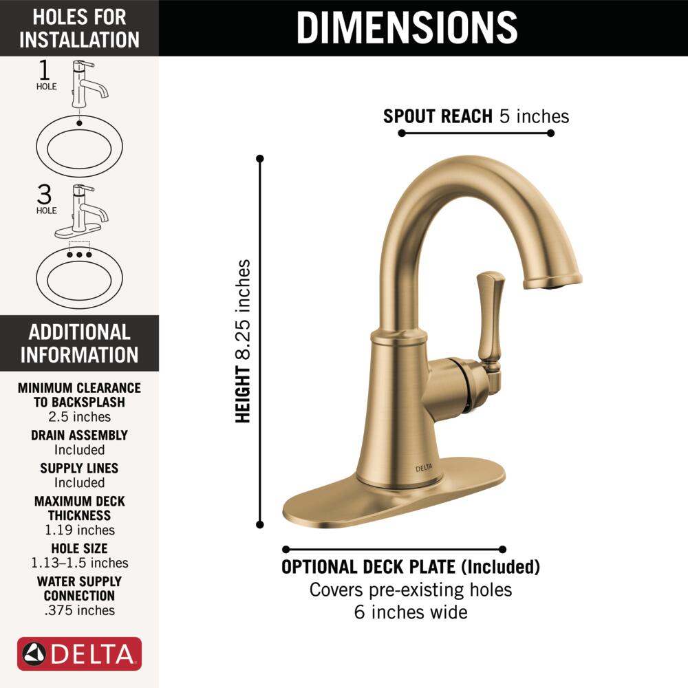 The Archdale™ Bath Collection brings timeless elegance and gentle curves to complement any bath setting. Delta® WaterSense® labeled faucets use at least 20% less water than the industry standard — helping you save water without compromising performance. You can install with confidence, knowing Delta products are backed by our Lifetime Limited Warranty.