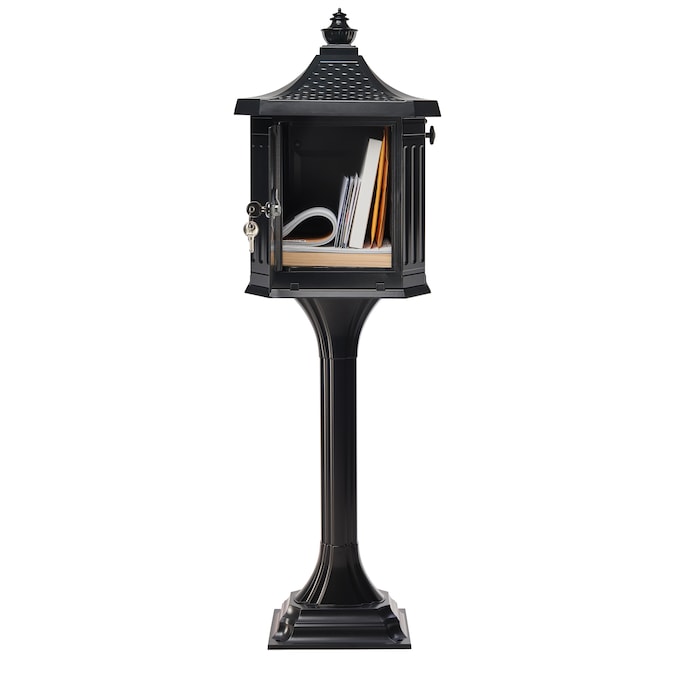 This decorative unit also serves to secure your mail with an internal locking compartment. Mail is delivered through the concealed front slot, and then easily retrieved by homeowners through the locking side-access door. The unit includes two keys for family access and convenience. Additionally, the pedestal post can be installed over a 4×4 wooden post (not included) or by bolting to a concrete pad for extra stability. Assembly is required. All assembly, mounting and installation hardware is included.