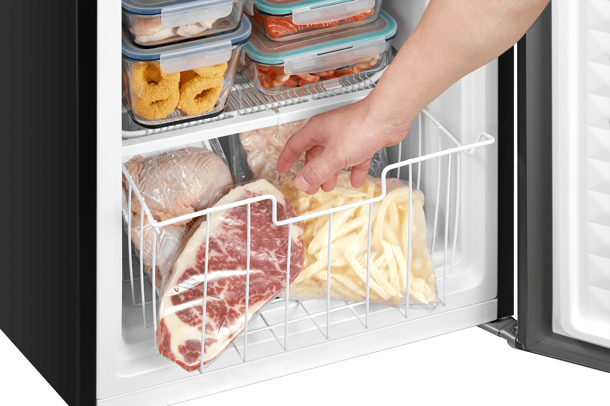 With the Arctic King 3.0 cu. ft. Upright Freezer ARU030S1ARSS, it’s easy to add a large-capacity freezer to almost any space. This compact unit gives you extra room for your frozen foods, looks sleek and takes up minimal space in your home or business. Whether you are shopping for your house, garage, basement, apartment, kitchen, cabin, lake house, time share, or business, the stainless steel upright freezer can meet your frozen food needs. The removable basket, 2 fixed shelves, easy-access defrost drain, easy-clean interior and recessed handle empower effortless use. The sleek stainless steel color blends easily into nearly any personal or professional environment. The 3.0 cu ft upright freezer includes a reversible door to fit in any place with ease. With two adjustable legs for leveling, feel at ease in fitting in any uneven space.The freezer is shipped in double-layer packaging to ensure safe delivery. It’s covered under a one-year warranty for added convenience. Arctic King’s Uptight Freezers are durable and
