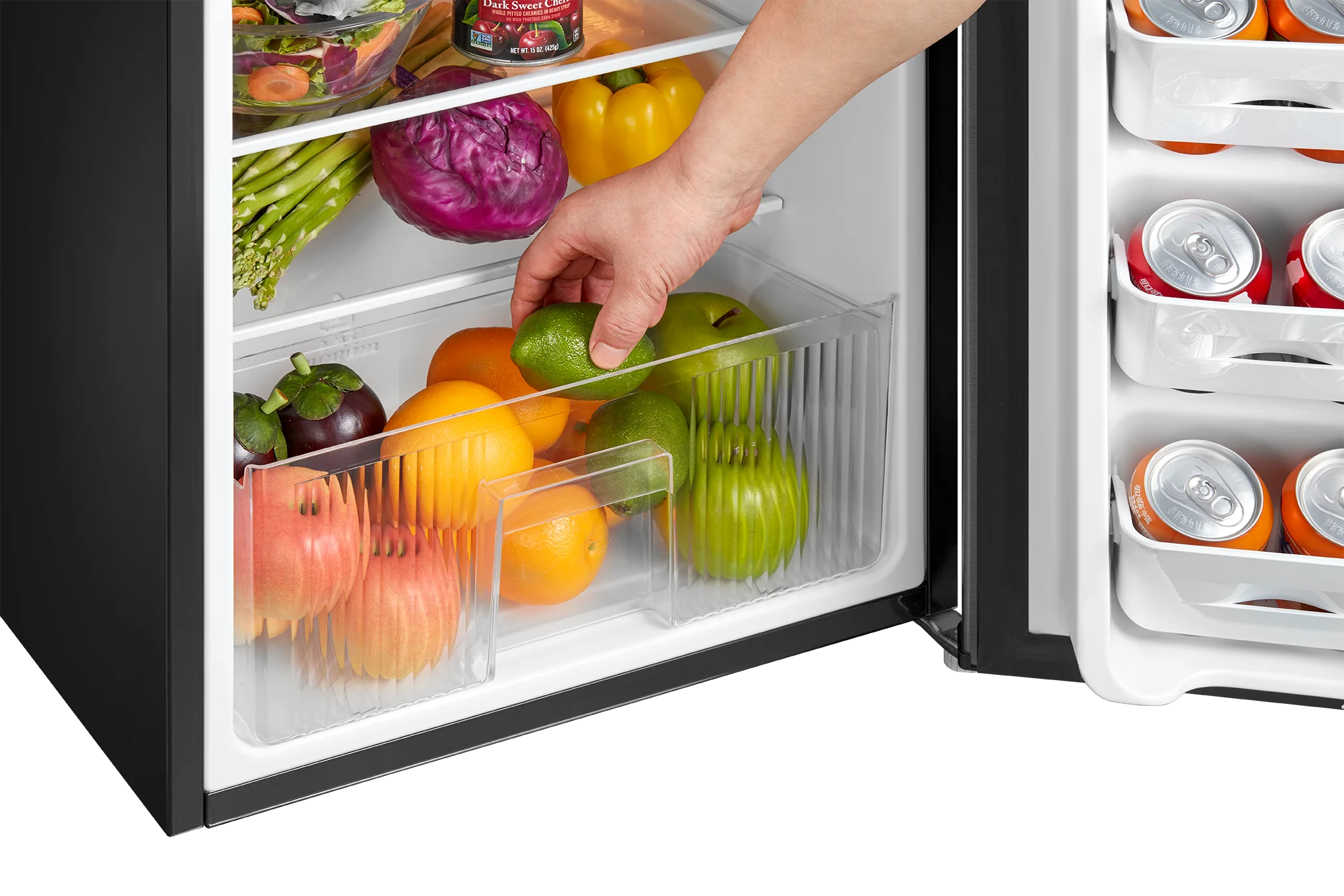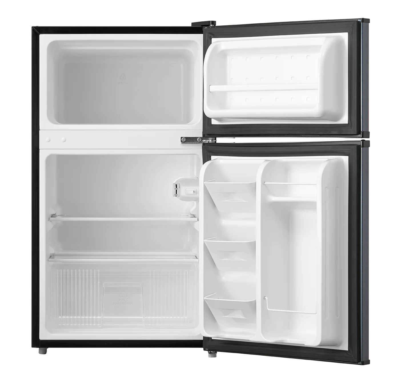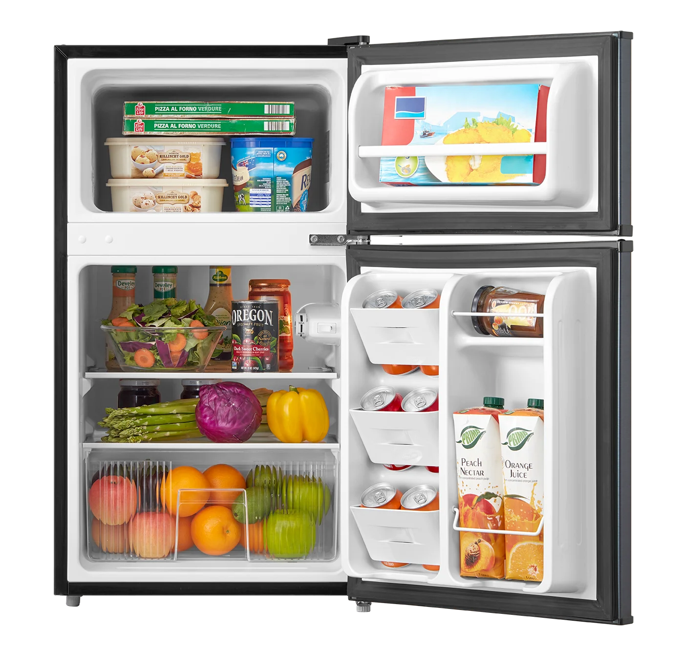 Ample Storage Capacity: With a generous capacity of 3.2 cubic feet, this mini fridge (measuring 18.5″ by 19.4″ by 33.3″) provides ample space to store a variety of beverages, snacks, and fresh produce. The standard mini fridge’s separate freezer compartment allows you to store frozen goods, such as ice cream, frozen meals, and ice cubes, keeping them easily accessible alongside your refrigerated items. The fridge’s new modern and elegant stainless steel exterior not only adds a touch of sophistication to any space but also ensures durability and easy cleaning, complementing your decor. Inside the fridge, you’ll find adjustable glass shelves, door bins, and a crisper drawer, offering flexibility to customize the storage space according to your needs and preferences. Operating with an energy-efficient E-star rating, this mini fridge helps conserve energy, reduce electricity costs, and promote environmental sustainability, making it a responsible and cost-effective cooling solution.