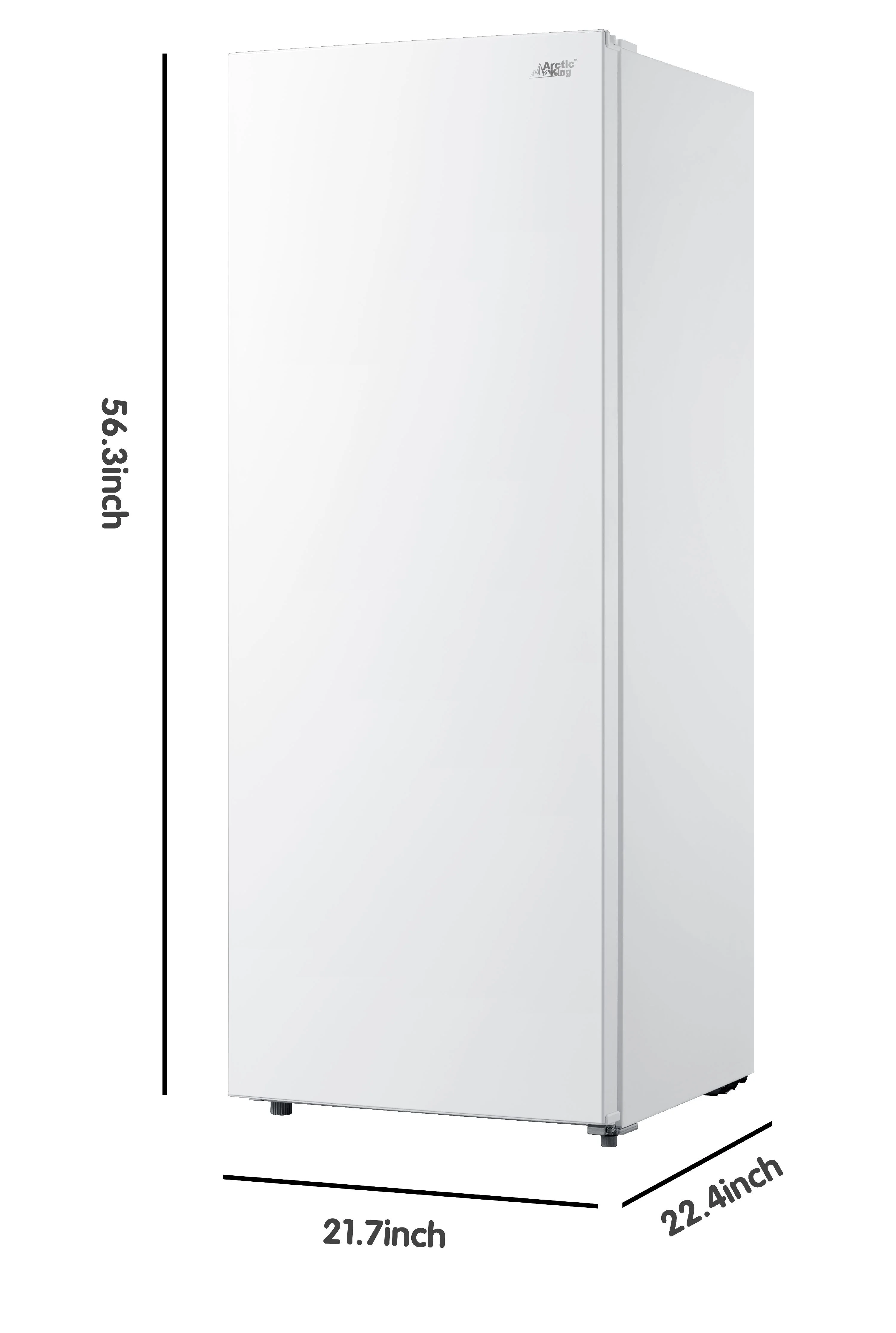 Arctic King 7.0CF Upright Freezer in White Discover the Arctic King 7.0CF Upright Freezer in White. This is a reliable and spacious freezer that combines a sleek design with outstanding performance. With its large capacity and sleek white exterior, this freezer is a perfect addition to any home or commercial space. Measuring 21.7″ by 22.4″ by 56.3″, this upright freezer provides an impressive 7.0 cubic feet of storage space. Store a wide range of items, including frozen meals, meats, fruits, and more. Keep your frozen items perfectly preserved. Equipped with adjustable temperature control, you can easily set and maintain the ideal temperature. The interior is designed with multiple shelves which allows you to organize your frozen foods efficiently and access them with ease. The Arctic King Upright Freezer has a quiet operation to ensure a peaceful environment while minimizing energy consumption. The reversible door provides flexibility in placement, allowing you to customize the freezer’s configuration to suit your space. Cleaning and maintaining the freezer is hassle-free thanks its convenient manual defrost drain. This drain makes it easy to remove excess water during the defrosting process to prevent ice buildup. Invest in the Arctic King 7.0CF Upright Freezer in White, measuring 21.7″ by 22.4″ by 56.3″, and experience the perfect combination of style, functionality, and performance. Enjoy the convenience of abundant storage space, precise temperature control, and effortless maintenance. Get one and elevate your frozen food storage to the next level.