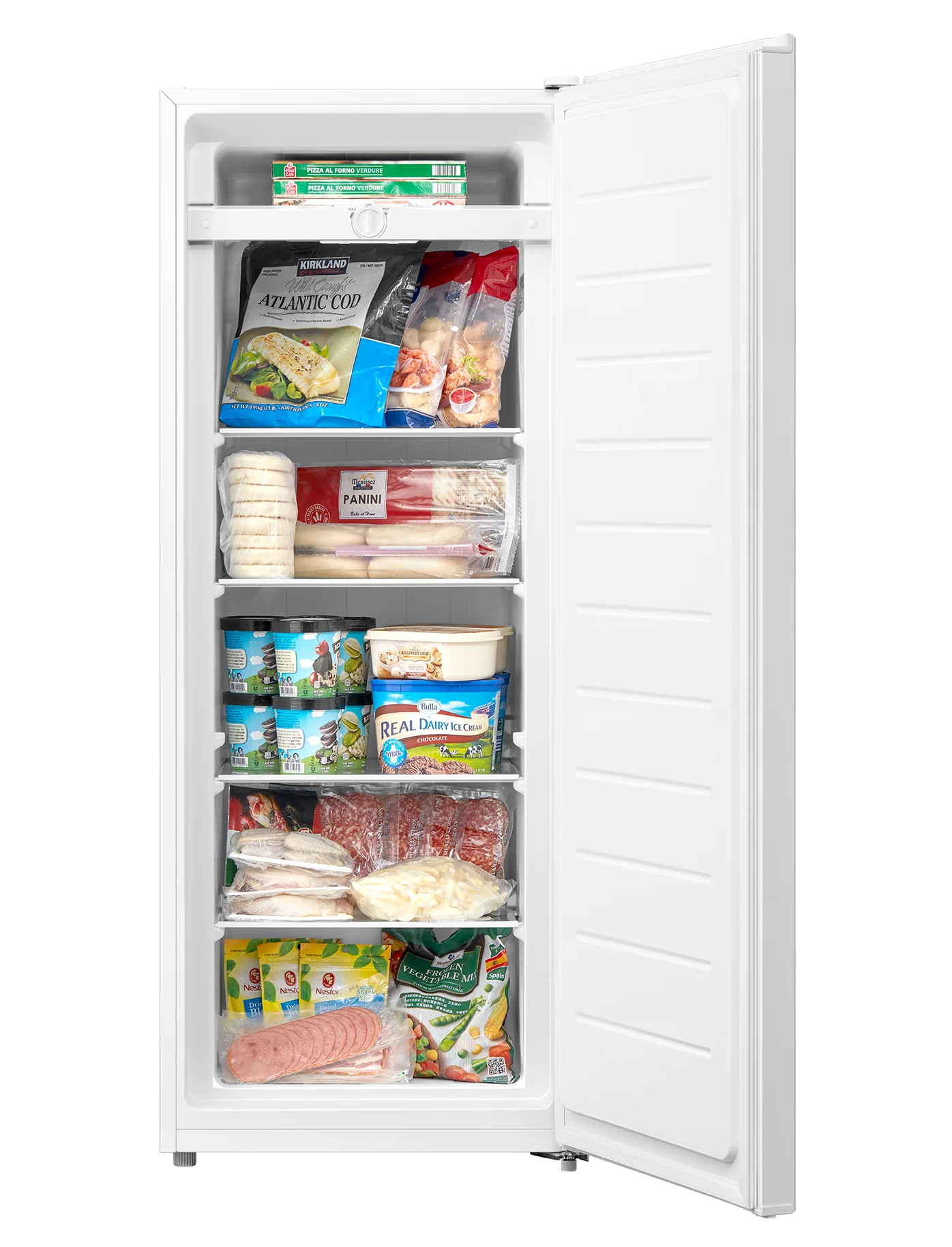 Easy to get the temperature you like with an adjustable thermostat Best experience with uniform cooling and fast freeze Unique design for Pizza storage It’s Garage Ready An easy organization with adjustable glass shelves Reversible door hinge for right and left opening Adjust to keep your upright steady with adjustable legs Model# ARU07M2AWW