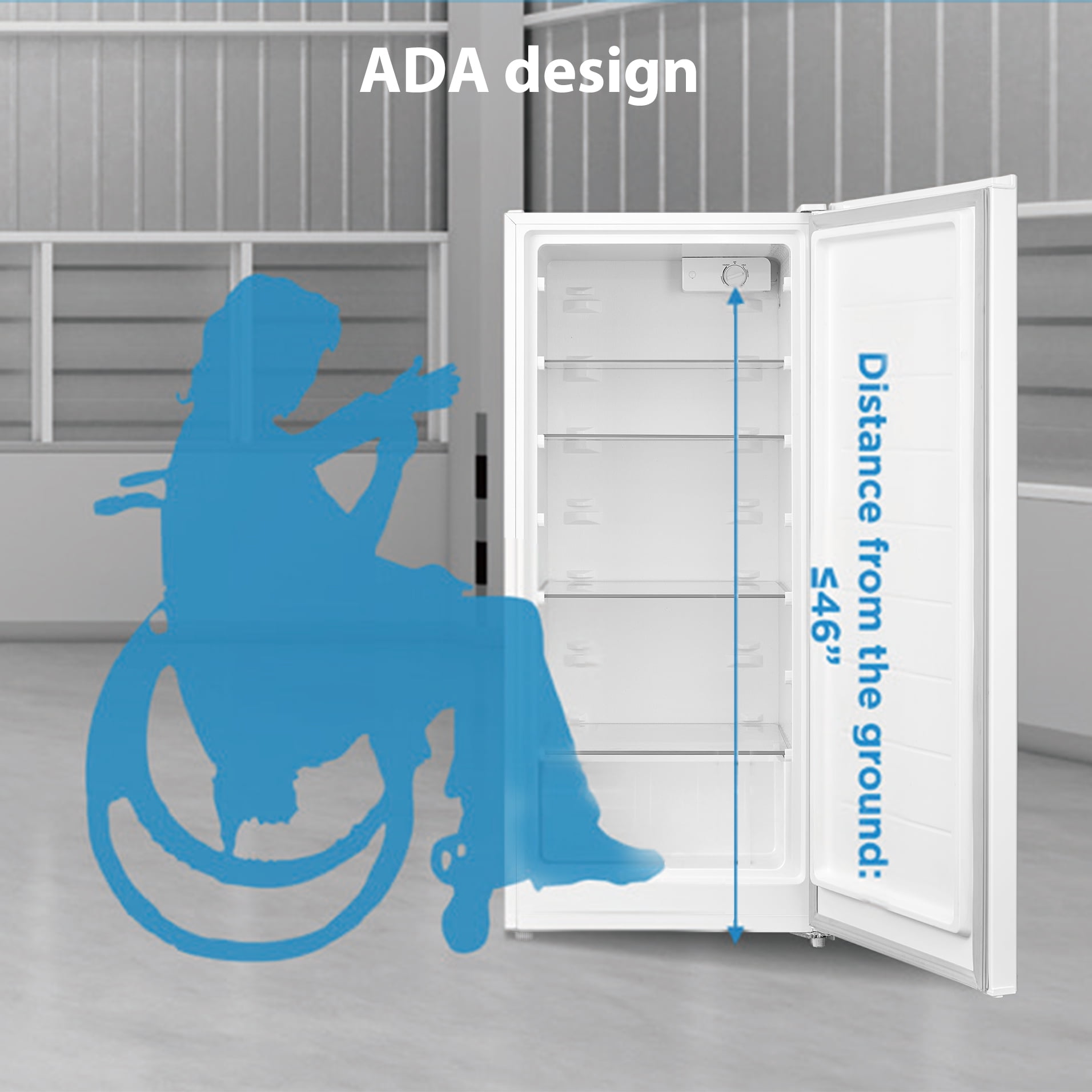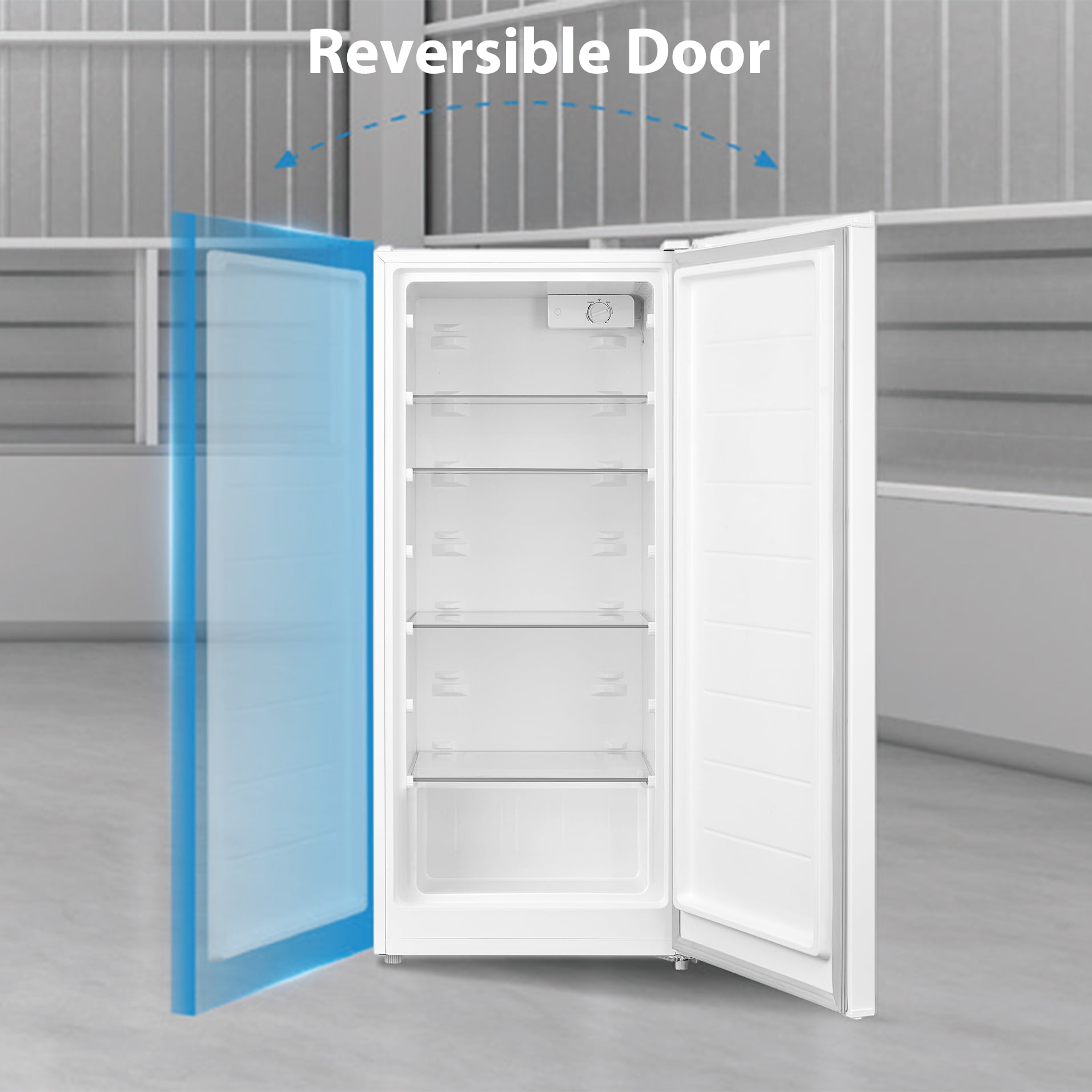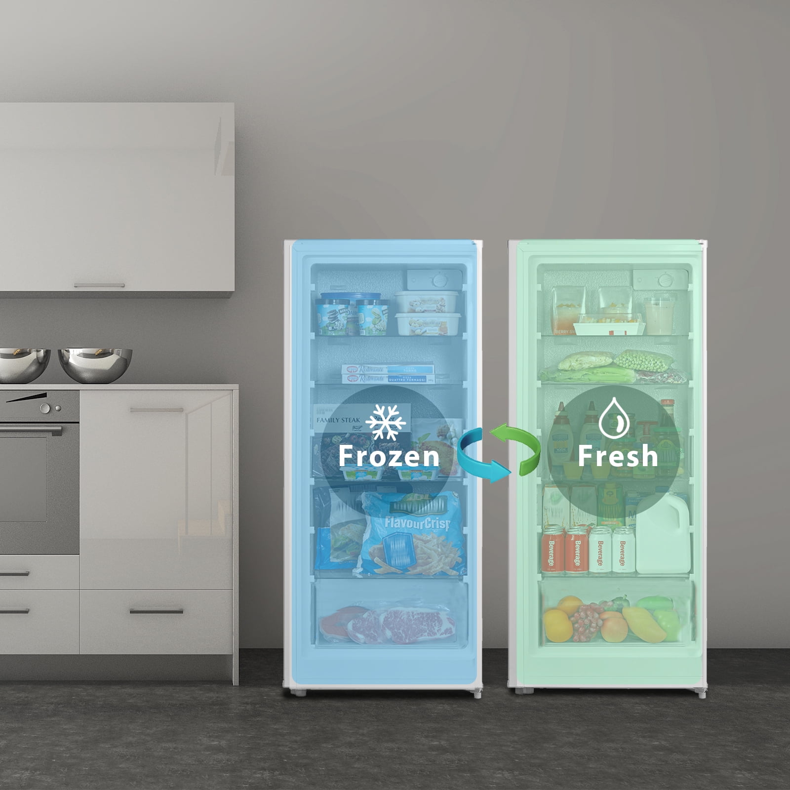 Dimensions: 22.44″ L x 21.65″ W x 50″ H. Easily convertible between Refrigerator and Freezer Adjustable temperature control. Multiple shelves and bins for organization. Frost-free design prevents ice buildup.