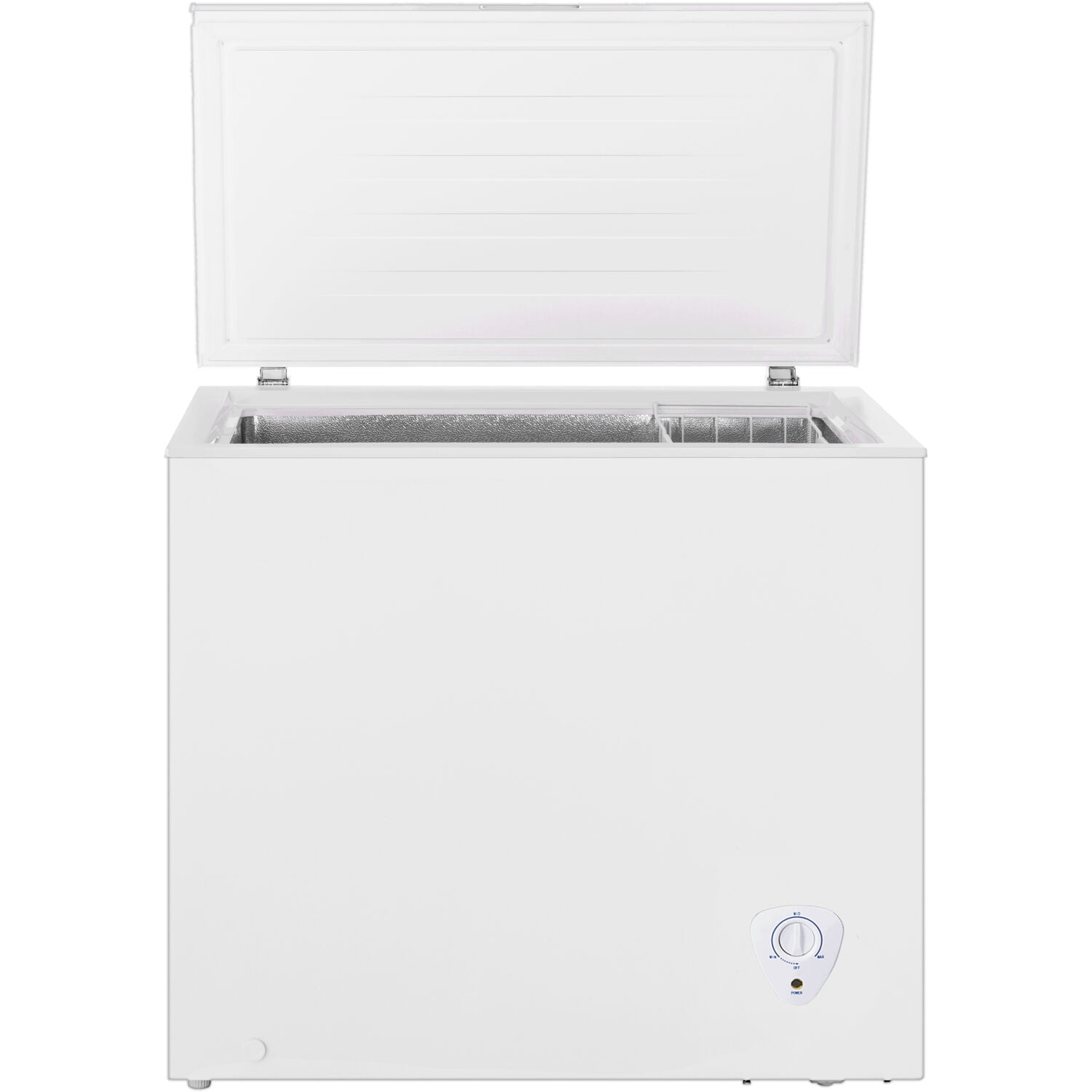7.0-cu. ft. chest freezer Convenient defrost drain provides an easy-to-clean interior Manual defrost allows you to clean at your own rate Adjustable mechanical temperature controls are easy to use Power-On indicator light allows you to check the power level of the unit without opening the lid Removable wire storage basket makes organization simple Recessed handle provides a seamless exterior design Front feet heights adjust to ensure freezer is level Low decibal operation of 43dBA UL Safety listing