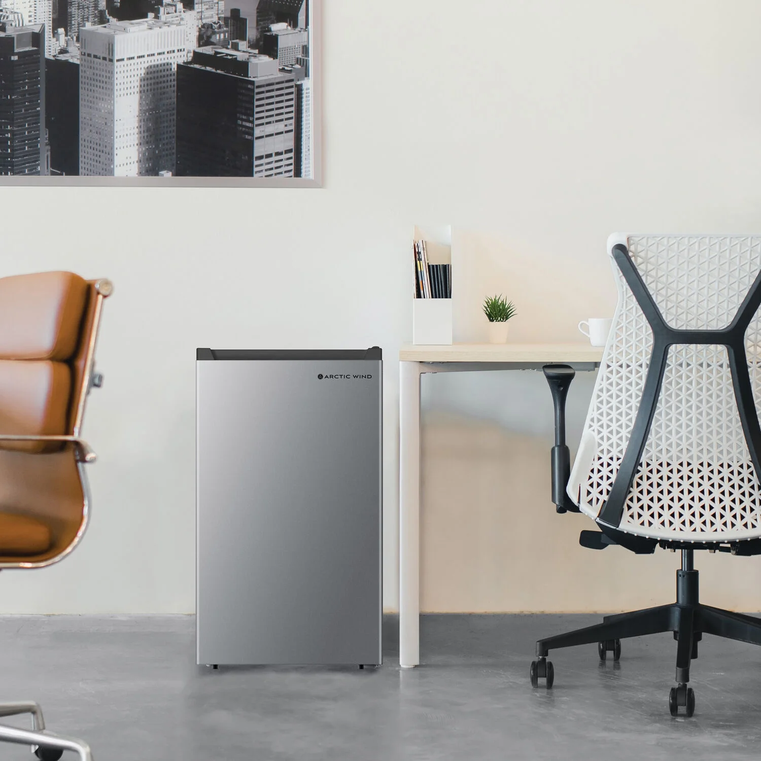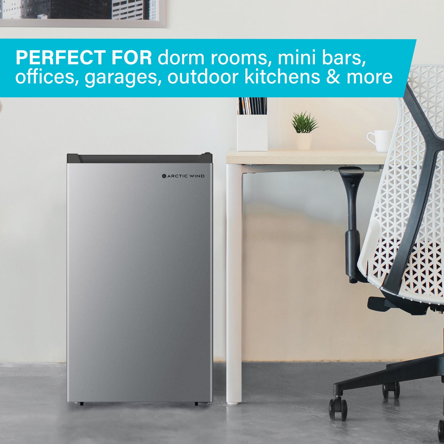 Arctic Wind New 4.4-Cu. ft. Standard Compact Refrigerator with Freezer Compartment, Silver, 2AW1SLF44A 3.9-cu. ft. refrigerator section with .5-cu. ft. freezer Features dedicated freezer space Perfect for dorm rooms, mini bars, offices, garages, and more Reversible door so it can be placed anywhere for your convenience