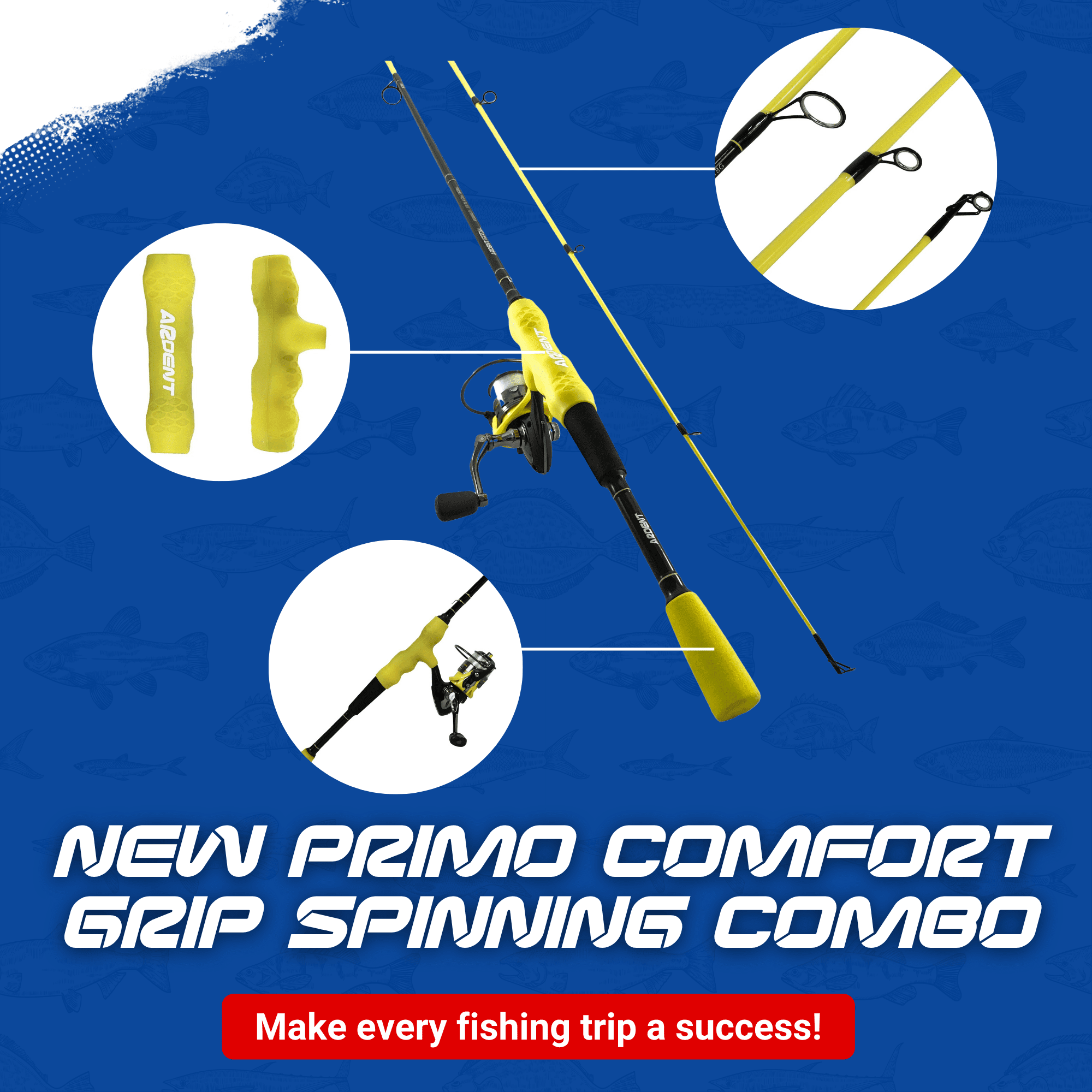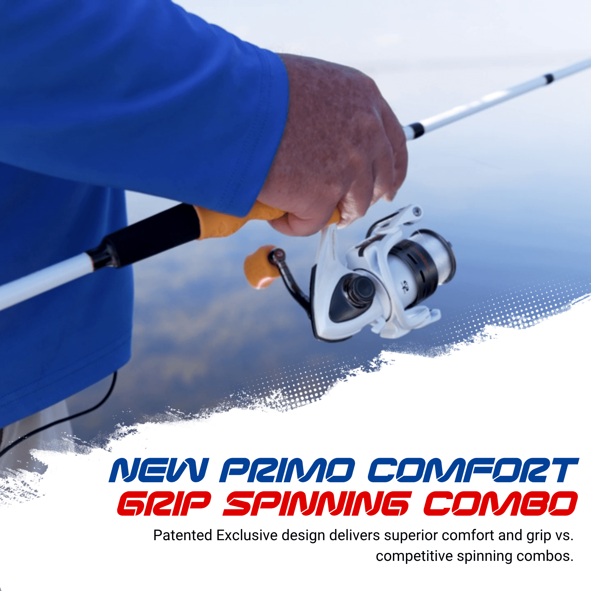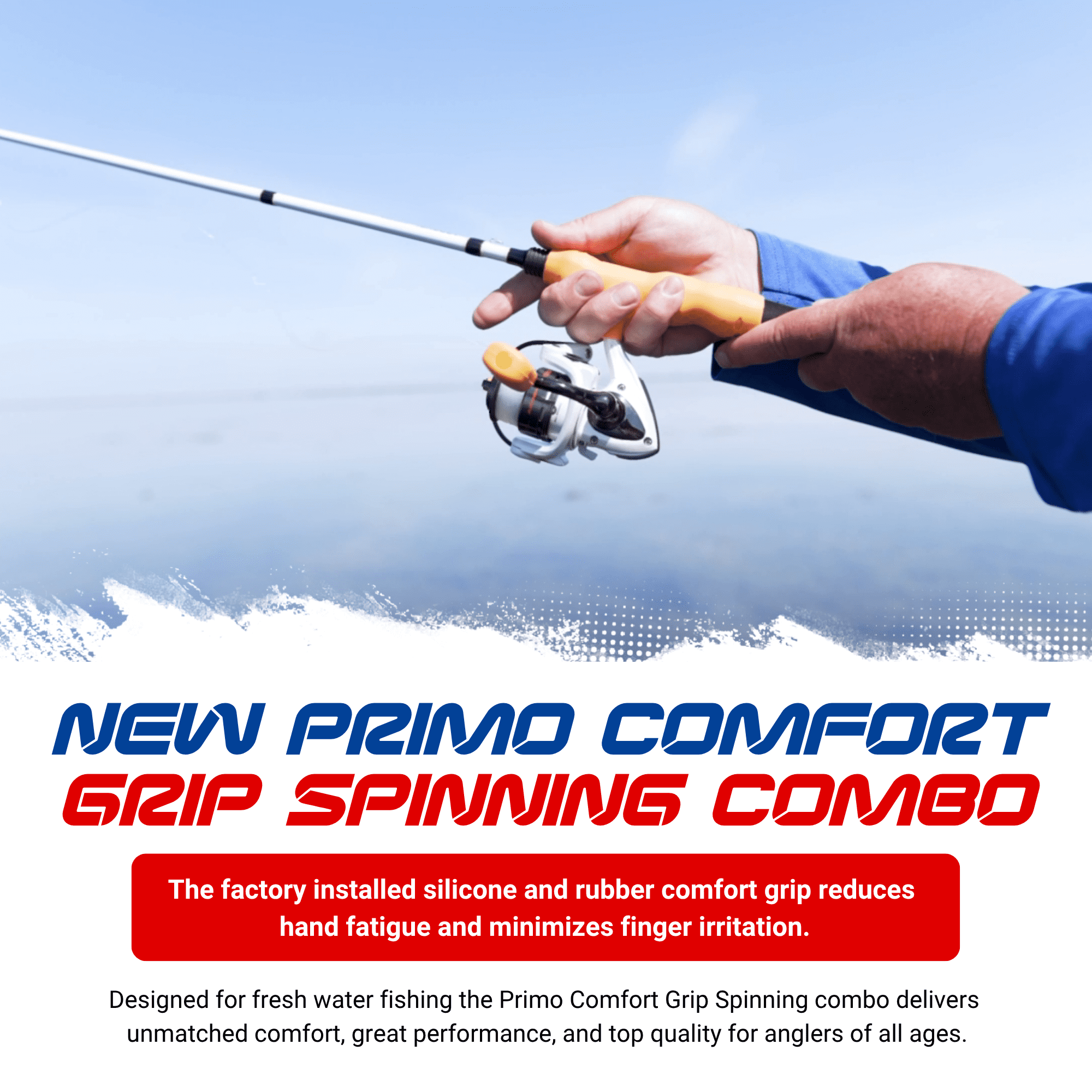 All-Day Comfort with Patented Grip Handle: This ergonomic fishing rod and reel combo, with a patented exclusive design, delivers superior comfort and grip versus competitive spinning combos. Great for both beginner and experienced anglers Reduce Hand Fatigue and Irritation: The factory installed silicone and rubber comfort grip on this fishing combo rod reduces hand fatigue and minimizes finger irritation Durable, Freshwater Fishing Rod: Designed for fresh water fishing the Primo Comfort Grip Spinning Reel Combo delivers unmatched comfort, great performance, and top-quality for anglers of all ages Smooth Casting Spinning Reel with Top-Quality Specifications: 2000 size spinning fishing reel, 5.1:1 gear ratio, 4 plus 1 ball bearings, infinite anti reverse, multi stack drag, 6’6” medium action 2 piece IM6 rod, stainless steel guides Trusted By Anglers: Developed by Ardent, a brand dedicated to high-performance reel care, this fishing reel is a must-have for every serious fisherman. Made in the USA