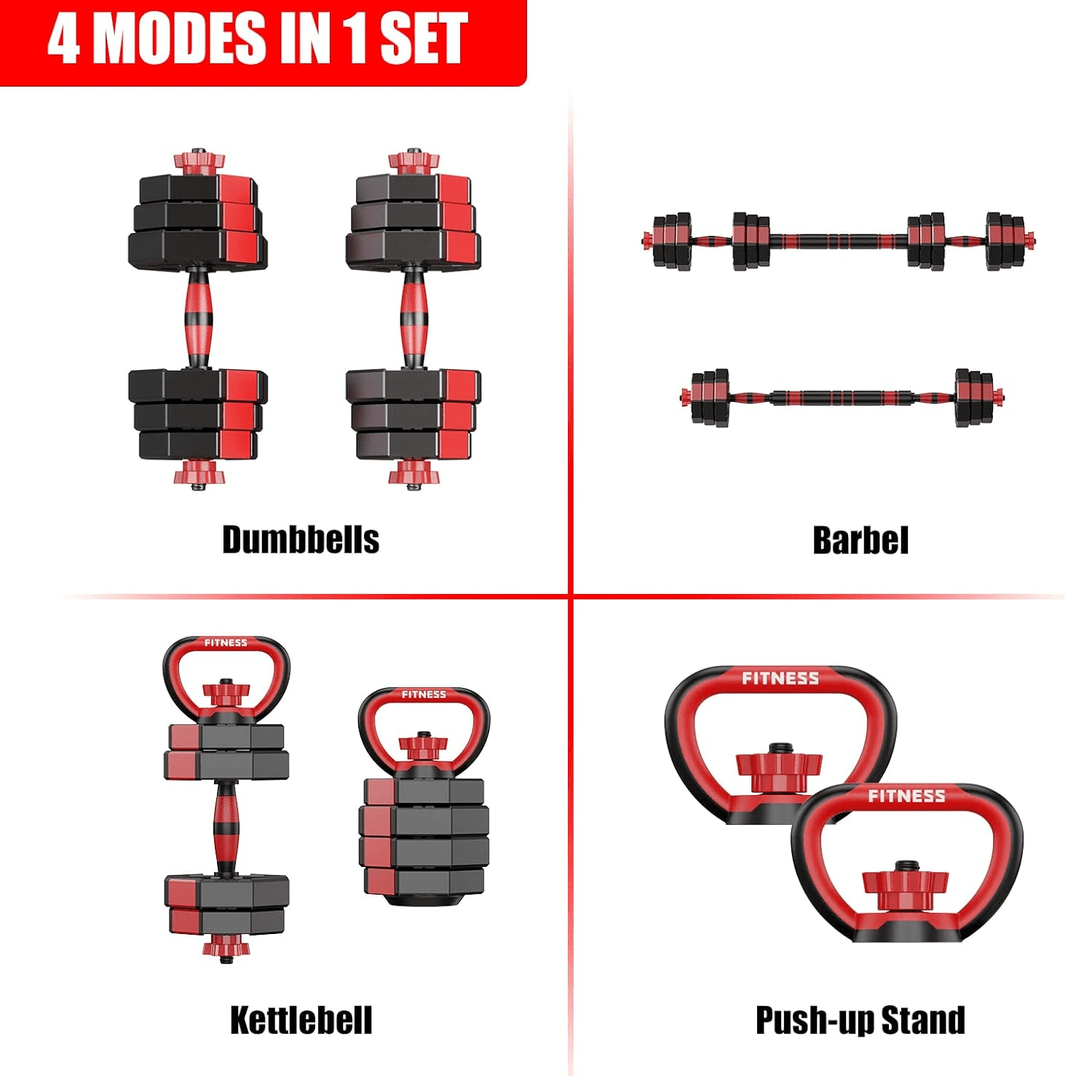 ARDIKAMA 4-in-1 Adjustable 44 lb Dumbbell, Barbell, and Kettlebell Weight Set, 22 Pieces