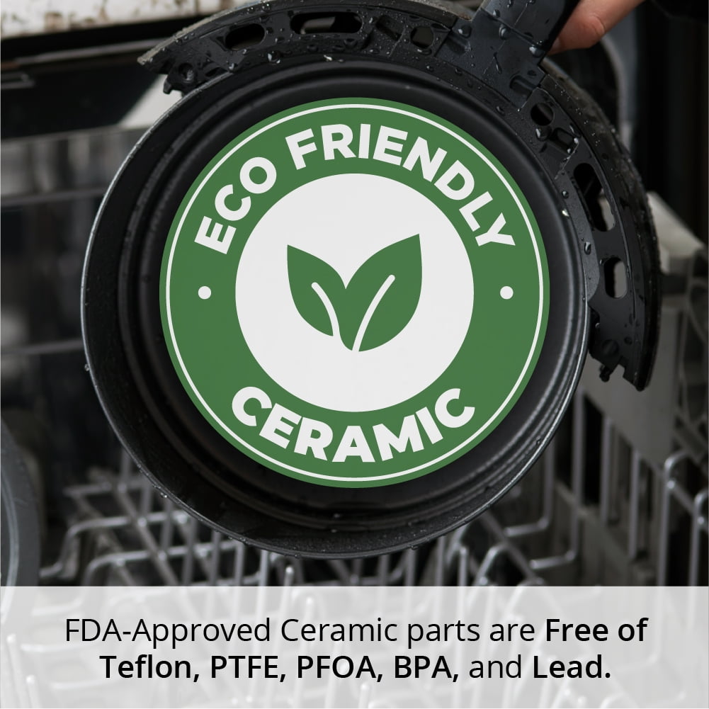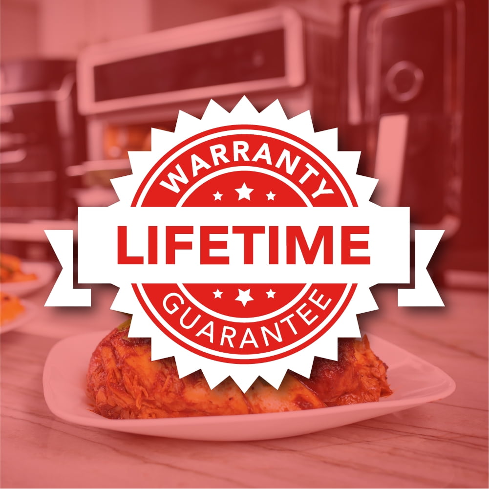 Grill, fry, reheat, roast and toast your favorite meats, breakfasts, vegetables and more faster than ever. Do this with the Teflon-Free Aria 2 Qt. Ceramic Air Fryer. It reaches 400° in seconds using the latest, most powerful Air Frying technology to cook faster than a traditional, convection, or microwave oven. Also without the need for extra oil or grease. This reduces fat in your food by up to 80%. Roast mouth-watering chicken wings, sauté sizzling vegetables, grill tender salmon, or reheat leftovers instantly to enjoy and share anytime. Our FDA-Approved, Ceramic Dishwasher-Safe Baskets and Crisping Racks are PTFE-Free, PFOA-Free and BPA-Free. Ensuring you won’t get any harmful side effects that are possible with Teflon. They’re also more durable and easier to clean. Featuring a Precision Dial that allows you to conveniently adjust your Cooking Time at any point during the process. It also has a slim footprint so it can easily fit in your cabinets and on your countertop. The Extended Full-Color Cookbook has exclusive mouth-watering recipes so you can get started right away. This recipe book is curated by the champions of ABC’s Family Food Fight. It also features your favorite recipes including Vegan and Keto options from TV-Chef Mario Fabbri. Enjoy mouth-watering meals knowing that Aria Air Fryers are the ONLY Air Fryers with a Lifetime Warranty on parts and accessories and friendly customer service. Endless culinary adventures await – with the Teflon-Free Aria 2 Qt. Ceramic Air Fryer. Assembled the air fryer is 11.75 inches and 6 pounds.