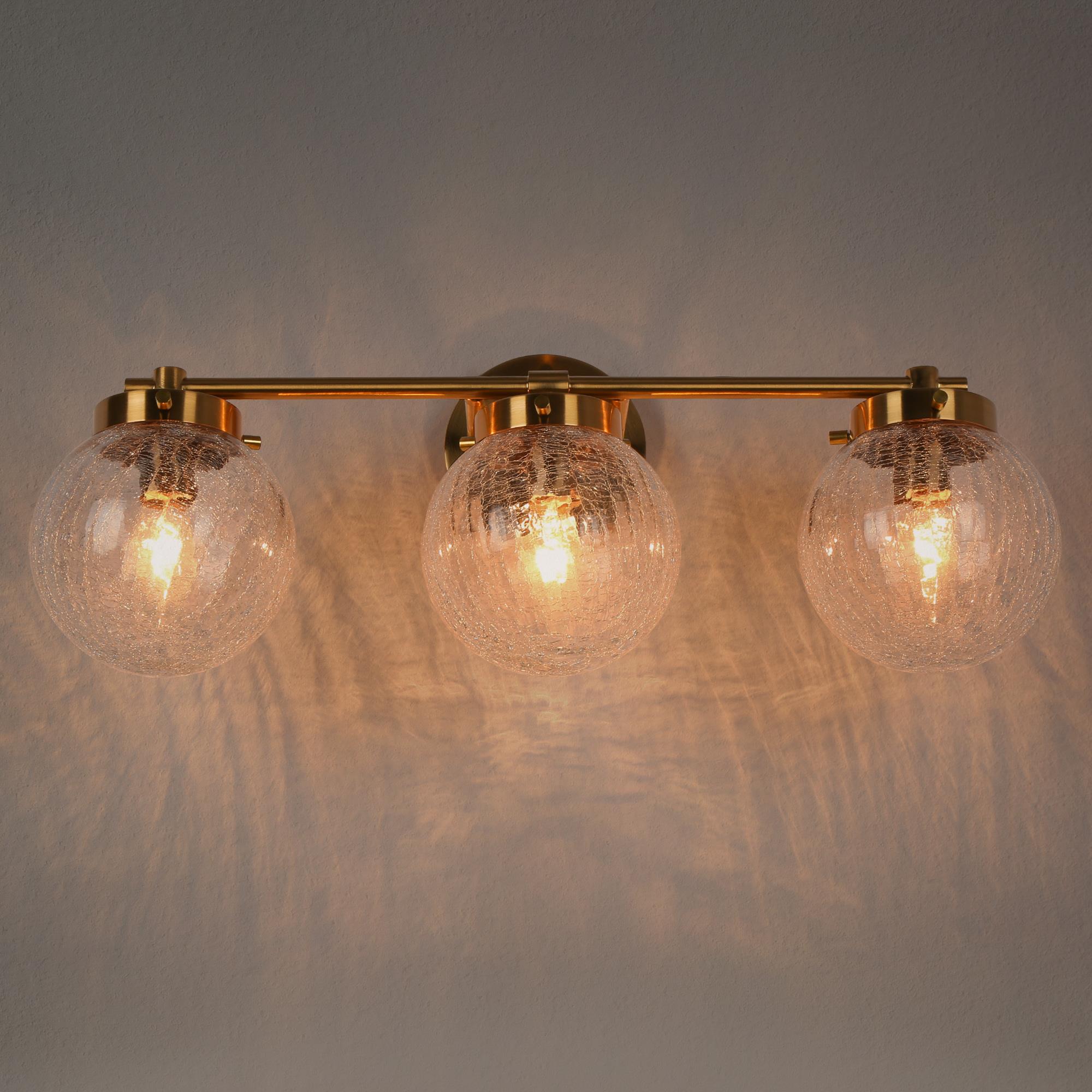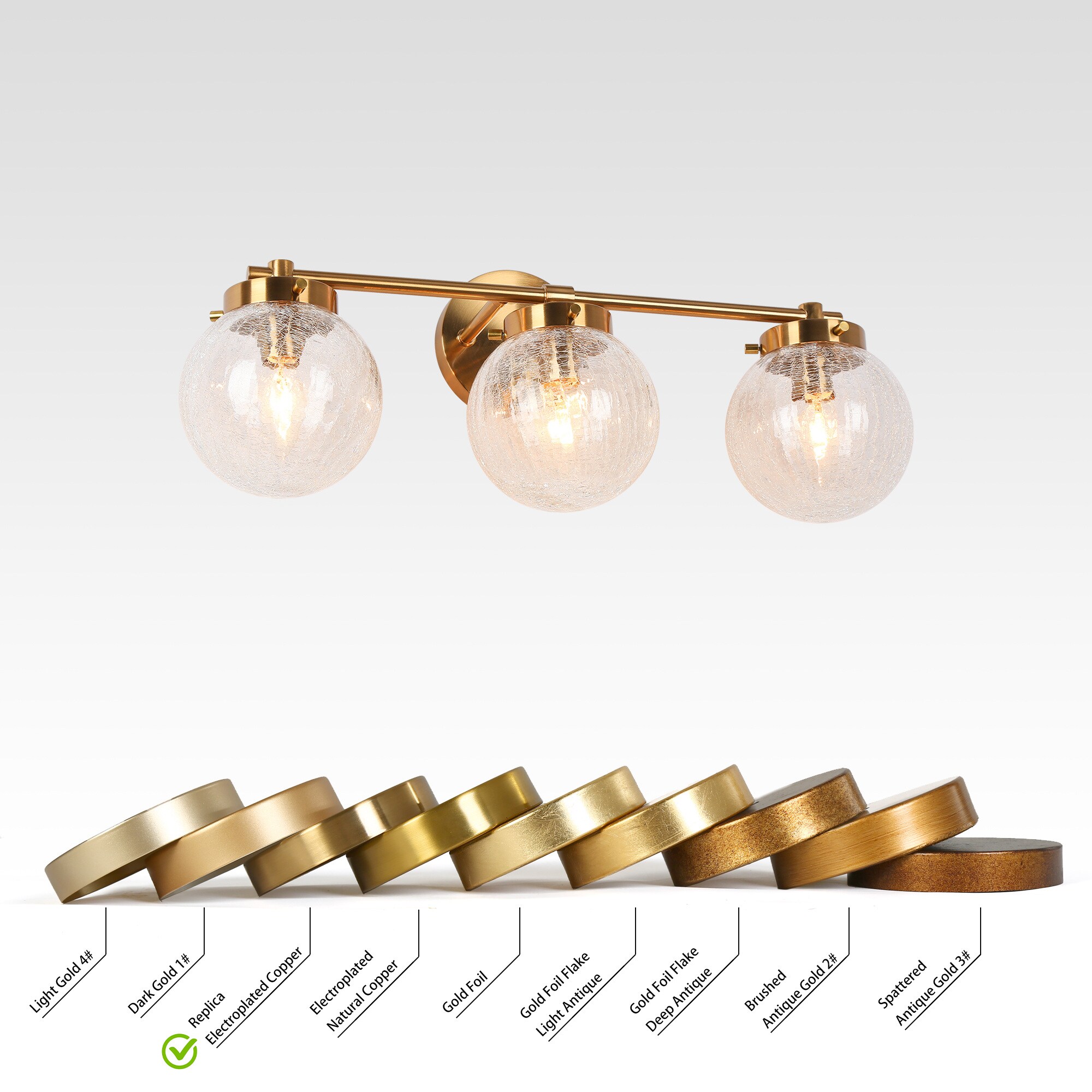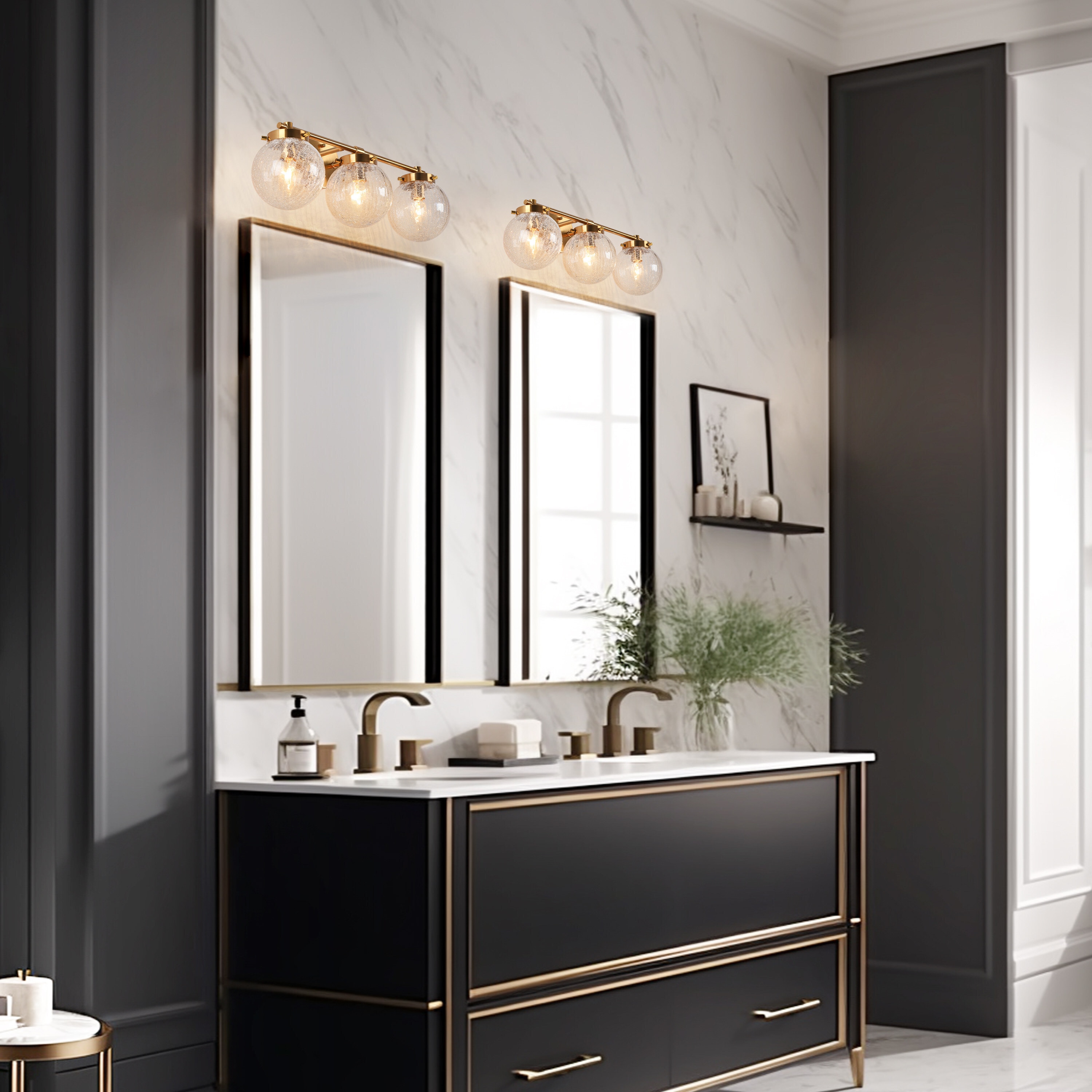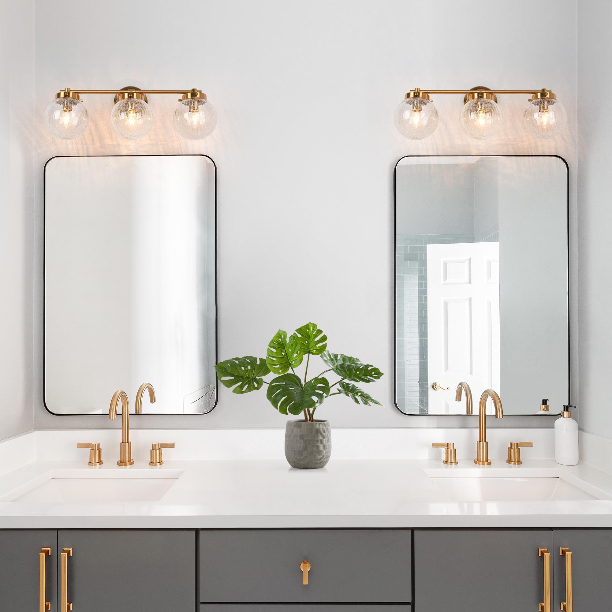 Add elegance and utility to your bathroom with the Ariene Collection 3-Light Vanity Light. Crafted for both beauty and function, this wall-mounted light features three graceful glass globes that glow with a soft halo effect, framed in lustrous gold. It provides flattering lighting for grooming while adding a luxe designer feel to your everyday routine. The Ariene vanity fixture is a thoughtful upgrade that enhances both your space and your self-care experience.