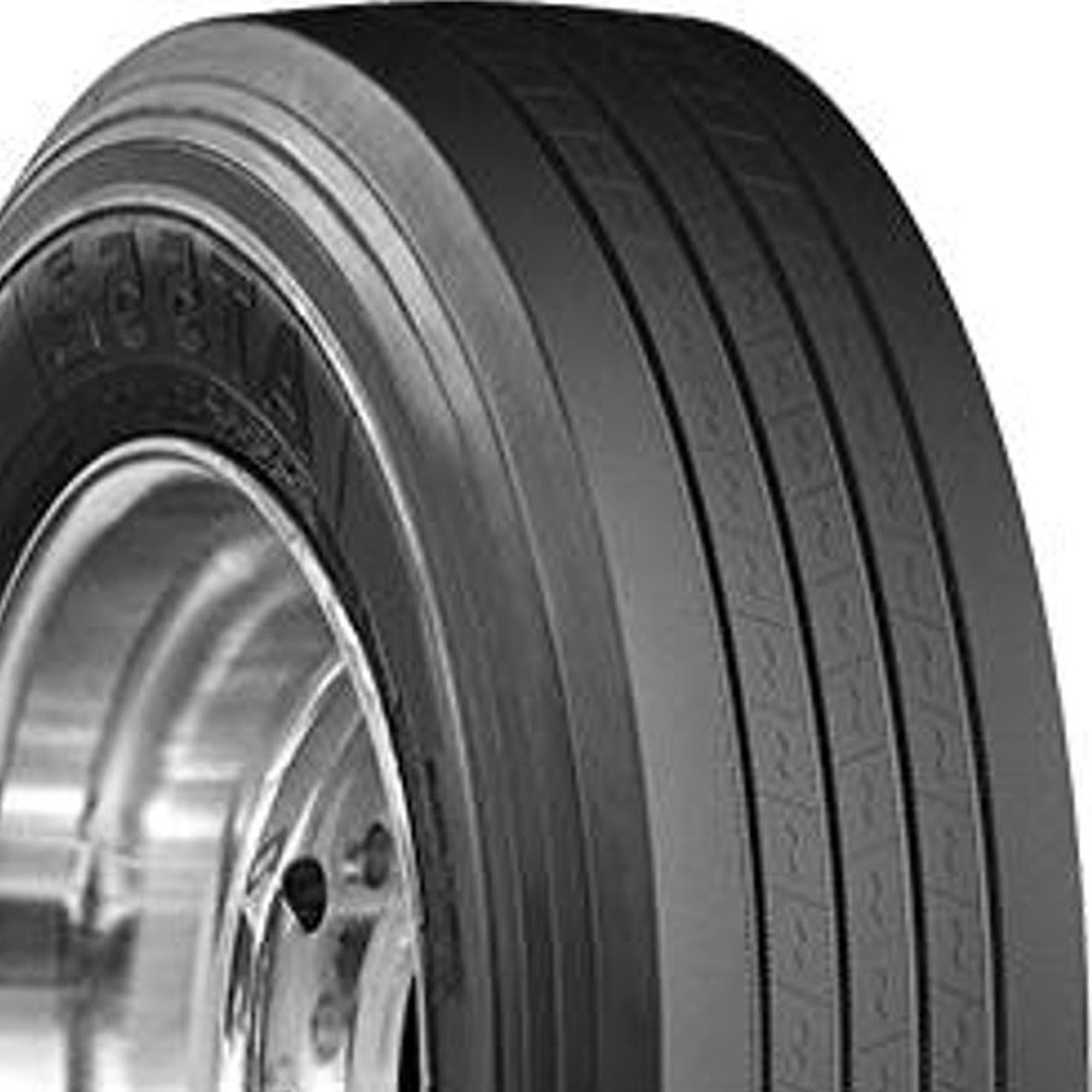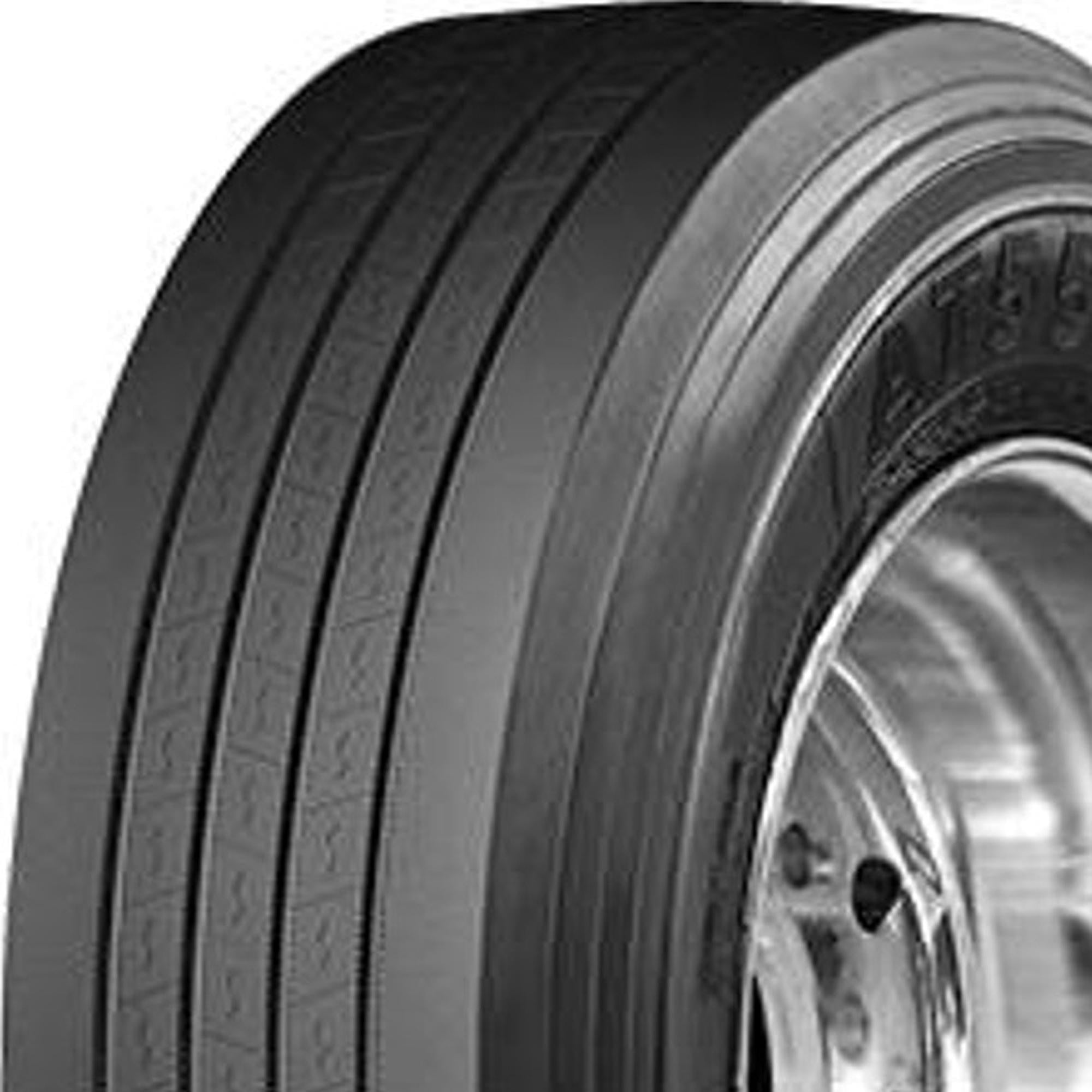 Designed for use on the trailer axle of semi-trucks Exceptional handling ability due to the un-directional tread design Advanced 5-rib tread design enhances even wear, wet traction, and reduces rolling resistance Advanced 4-belt casing design under the tread gives a higher level of casing durability and retreadability Specially developed rubber compounding formula ensures even treadwear for a longer tread life Size: 295/75R22.5 Load Range: G Product May Vary From Picture Wheel/Rim Not Included