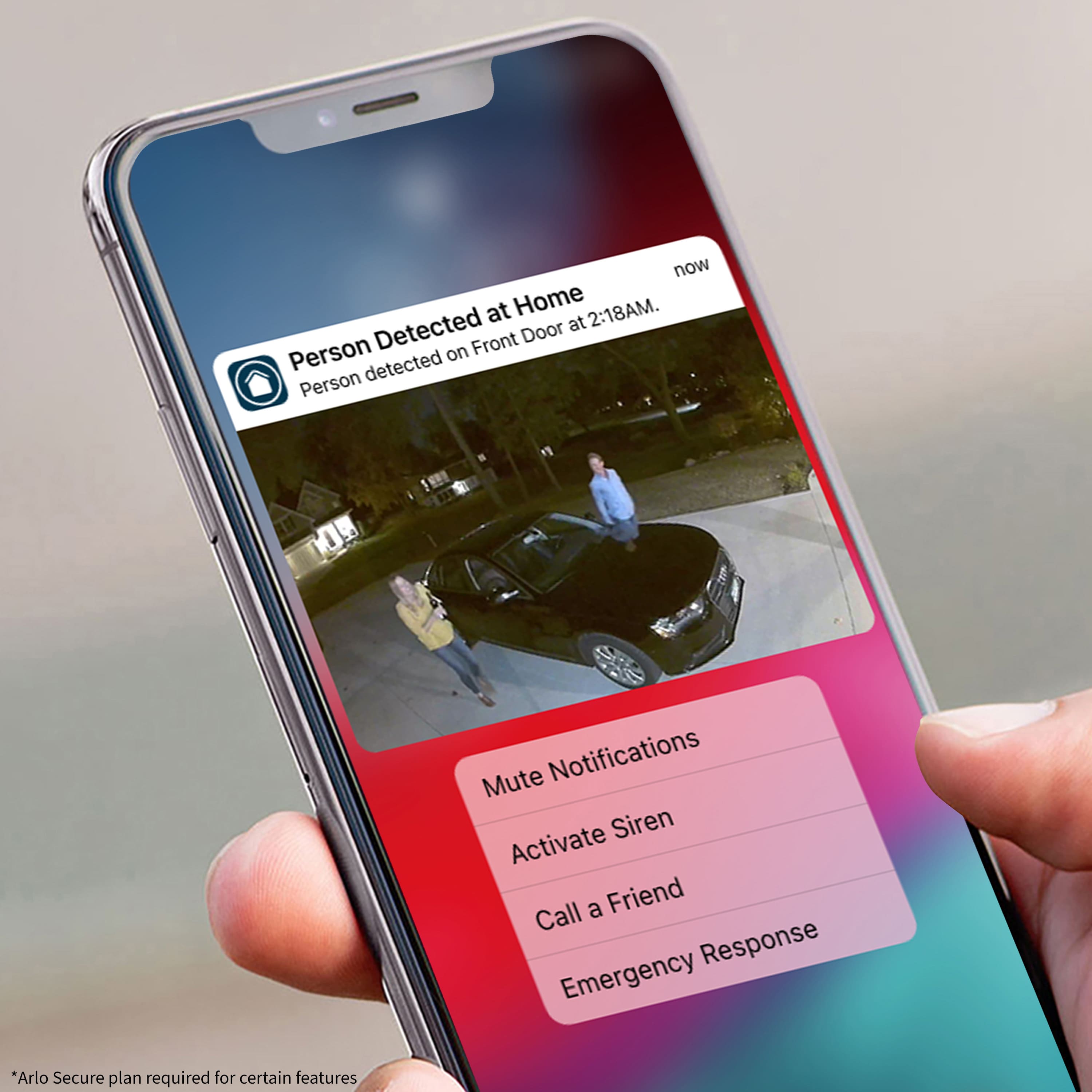 The Essential Outdoor Camera delivers smart home security with clear 1080p HD resolution and 4x battery life.¹ You’ll get alerts and be able to watch live video right from your phone. Use the Integrated Spotlight Ward to ward off intruders or trigger the Integrated Siren automatically or manually from the Arlo Secure App. Even in low light you’ll be able to identify details with Color Night Vision. Or try the noise-canceling audio to hear and speak clearly with visitors. Setup is quick and easy and only takes minutes by connecting directly to Wi-Fi. You can install it with full confidence thanks to its rechargeable battery and weather-resistant design. An Arlo Secure plan trial is included. After trial, a paid plan is required to keep premium features like 30-day video cloud storage, People, Package, Vehicle Detection, 24/7 Emergency Response, and more.