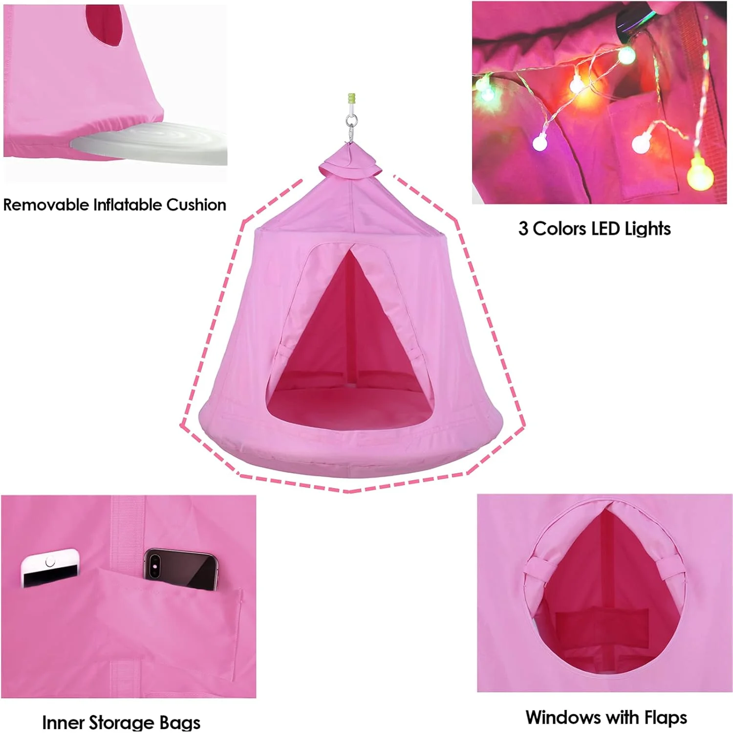 Arlopu X-Shaped Hammock Chair Stand with Swing Chair, Hanging Tree Tent with Steel Stand Combo Set, Play House Swing Tent with Steel Frame, LED Light Strip, 330lbs Weight Capacity