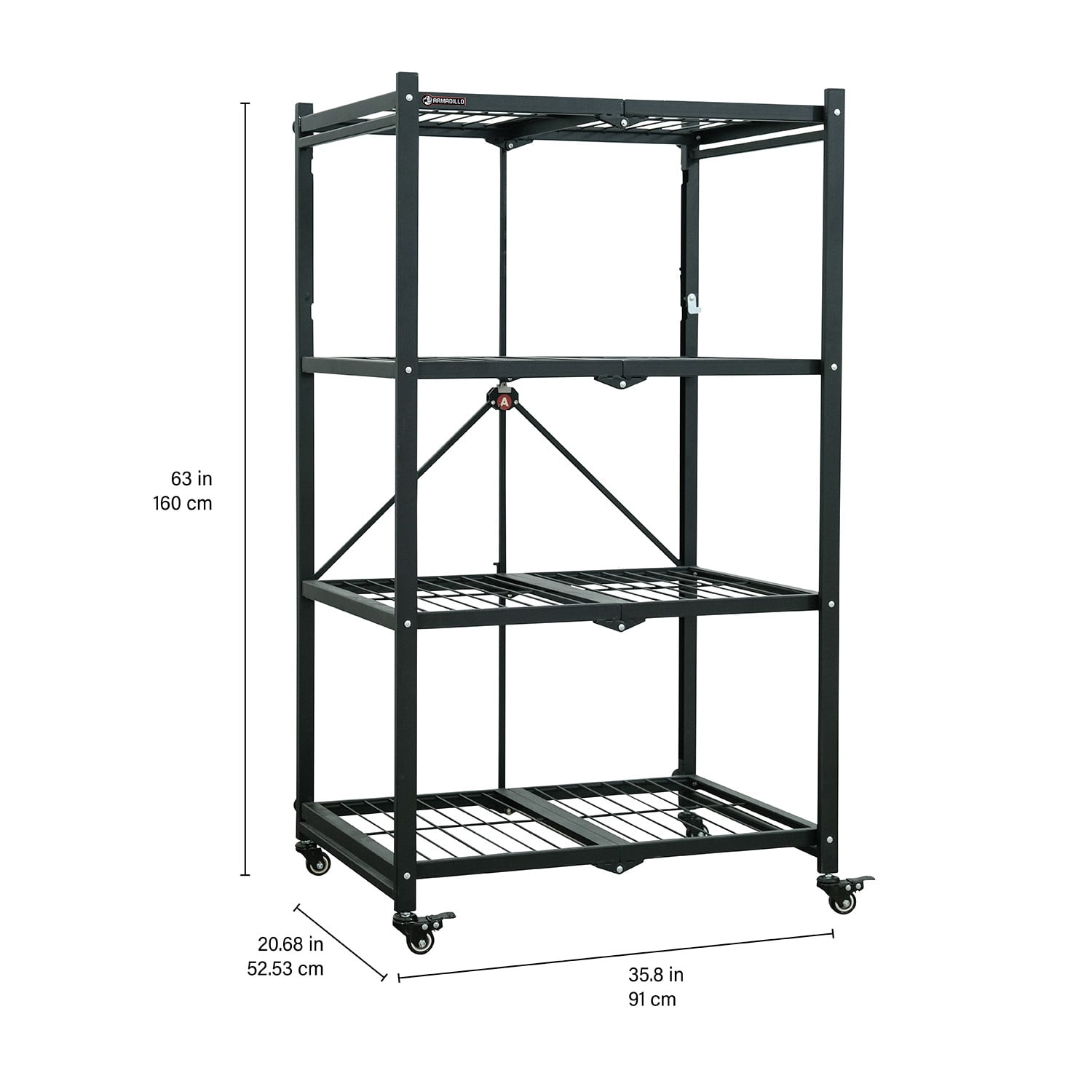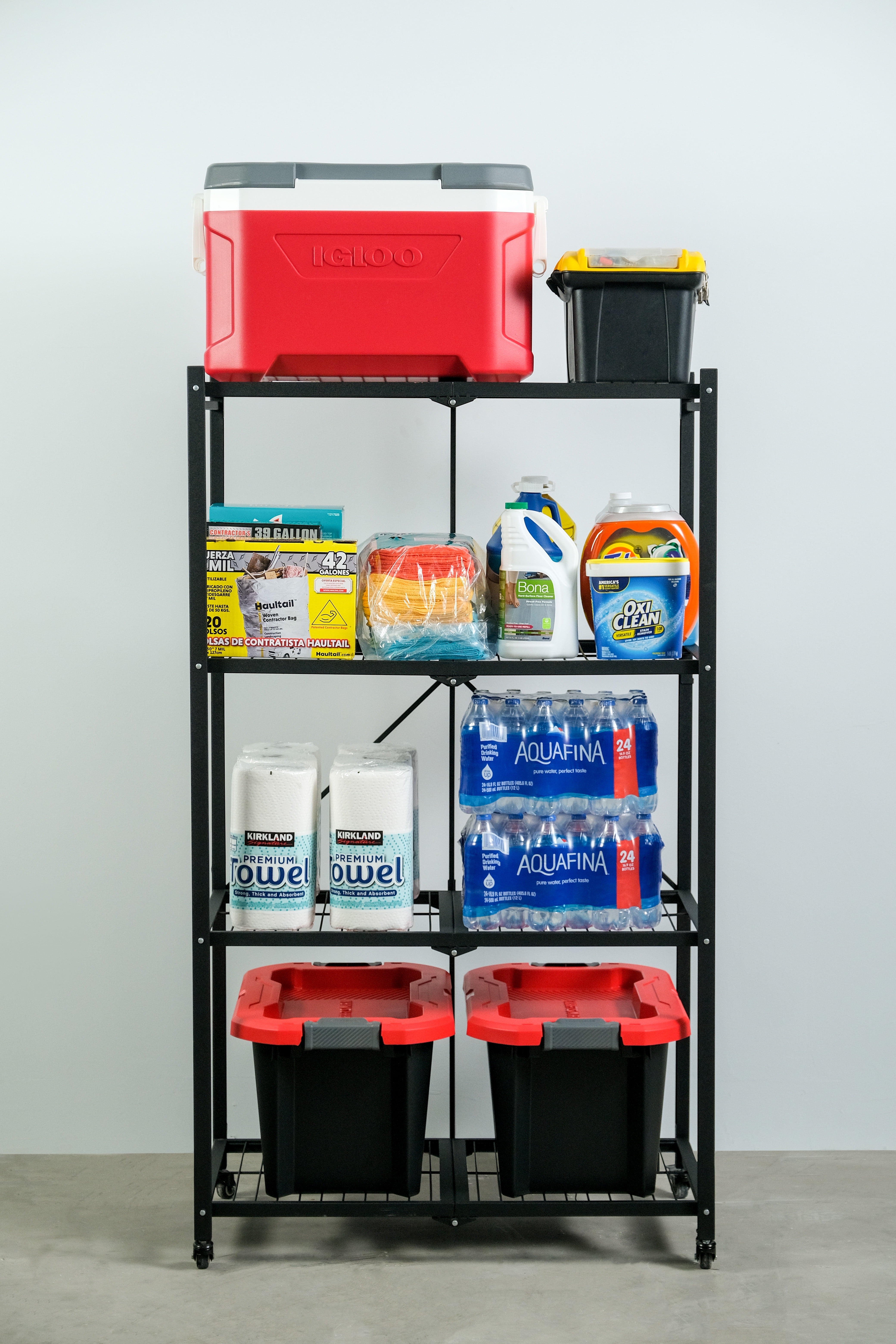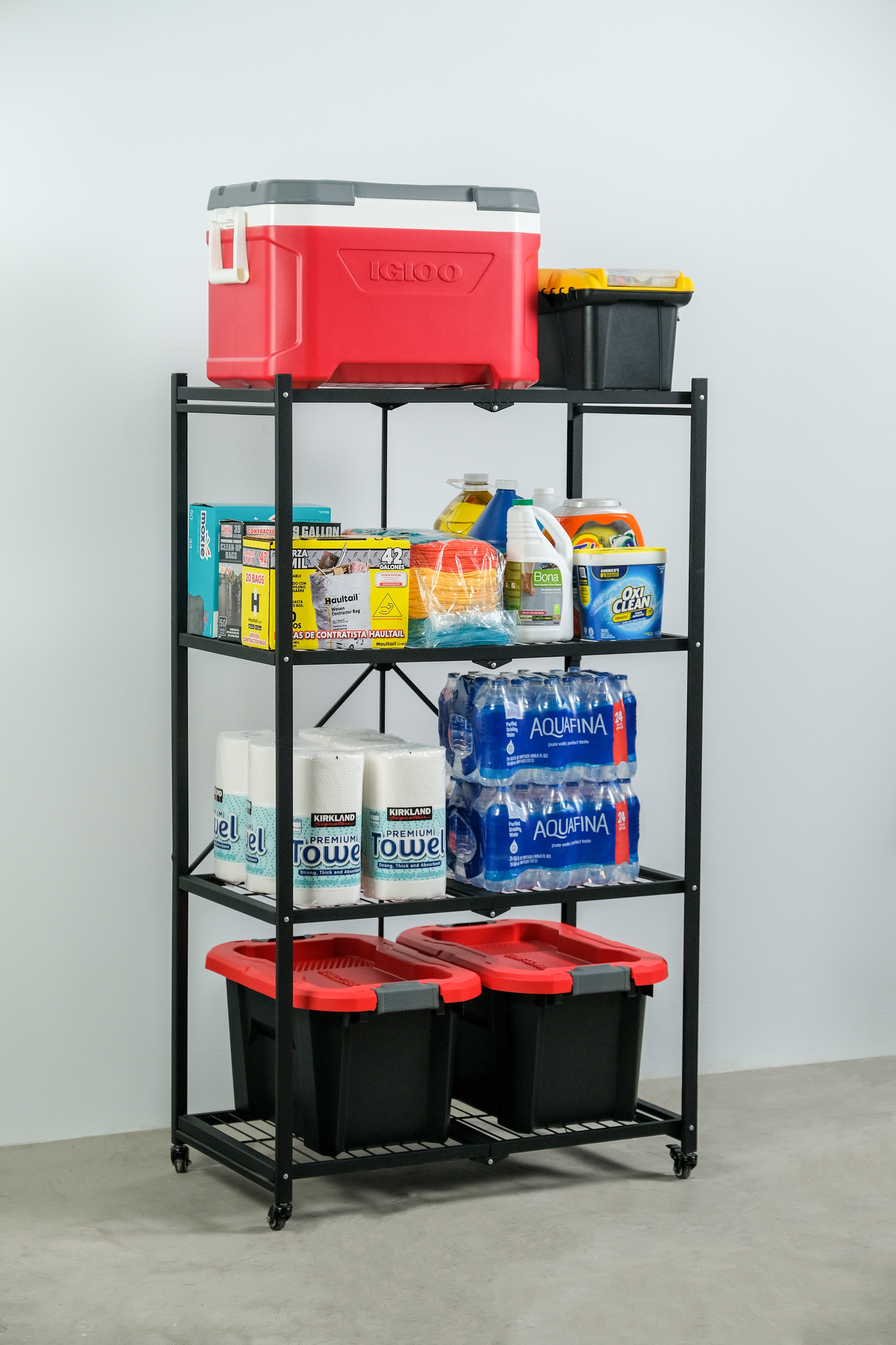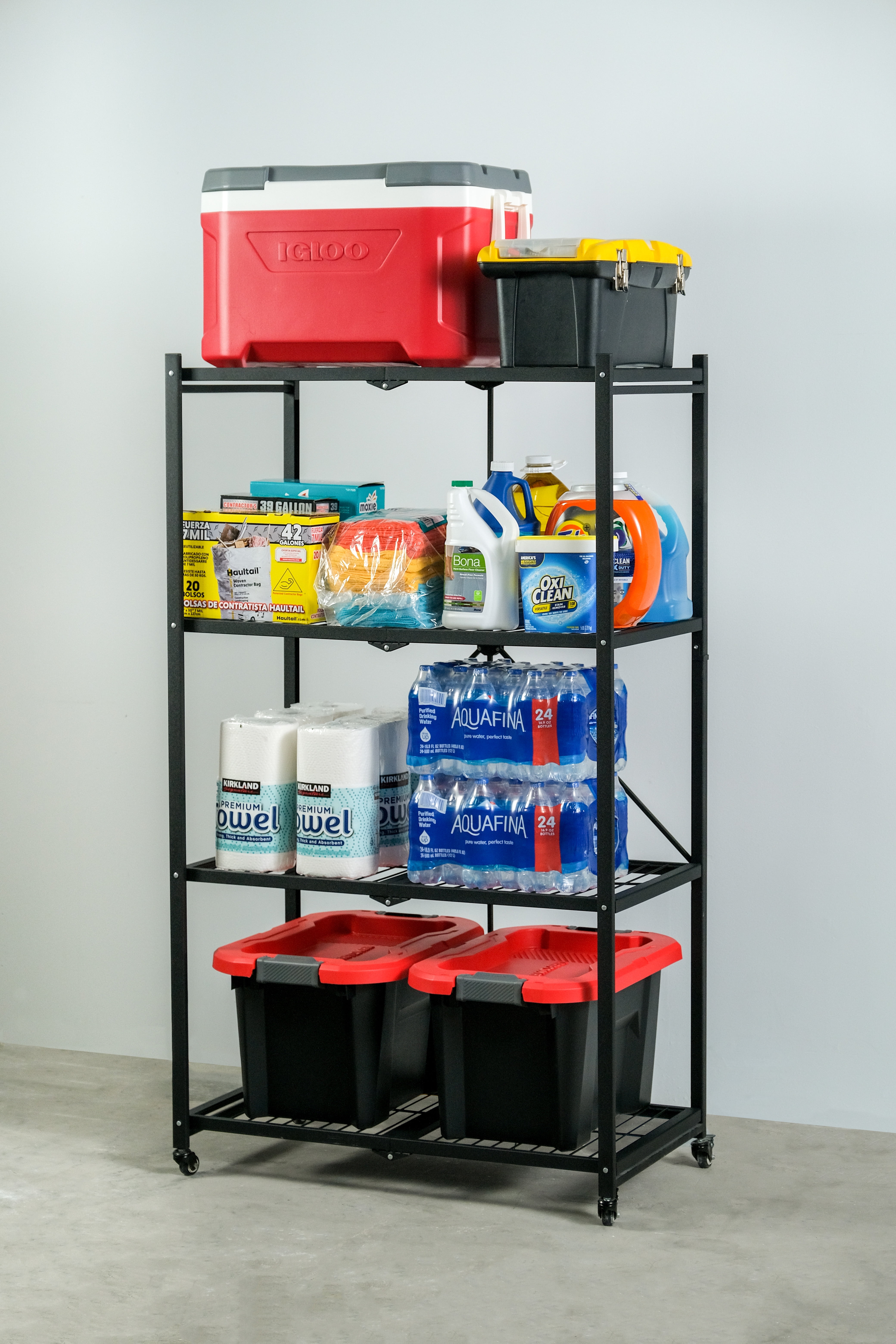 Armadillo Tough Collapsible Large 4 Tier Metal Storage Shelf with 300 lb. Capacity with Wheels