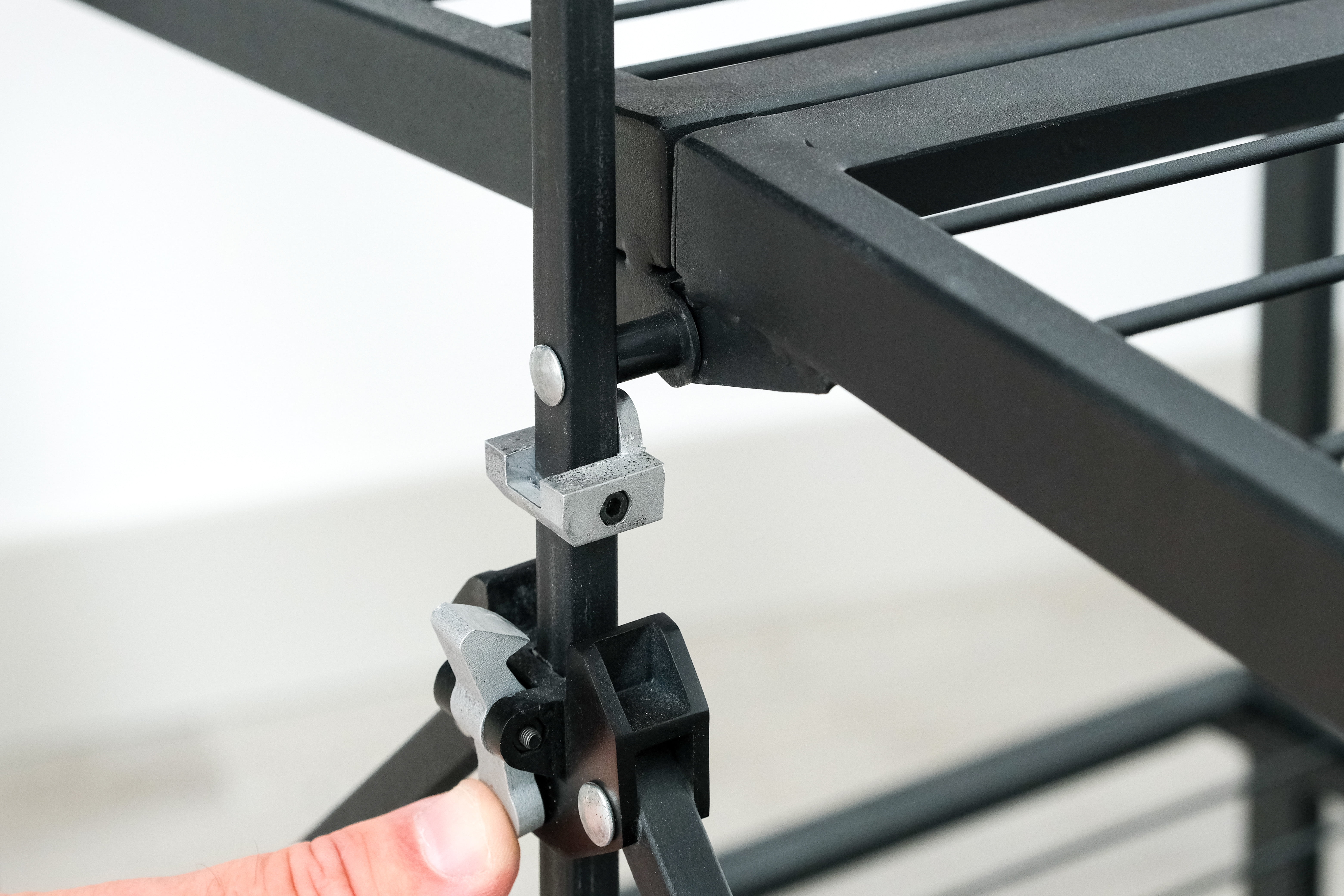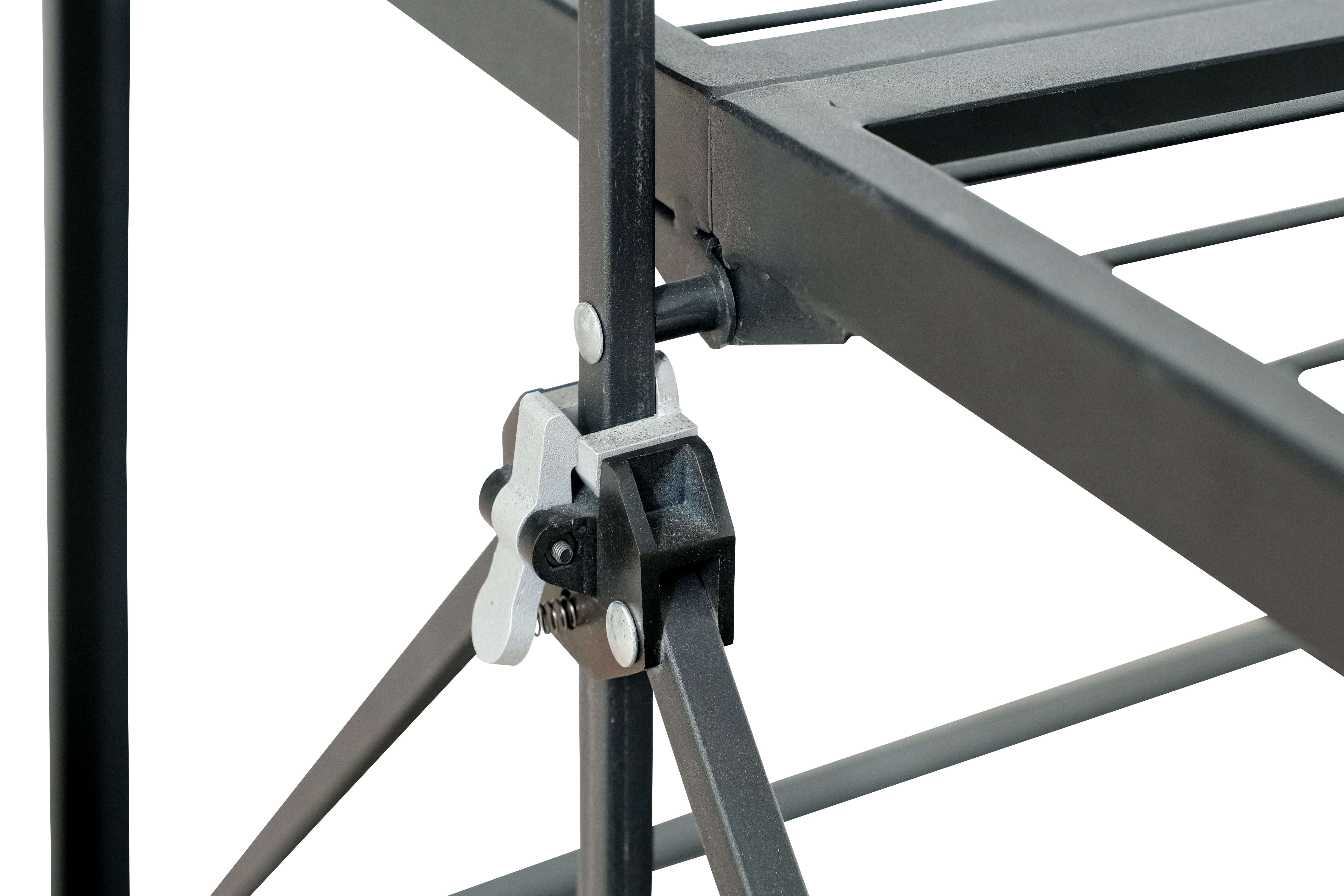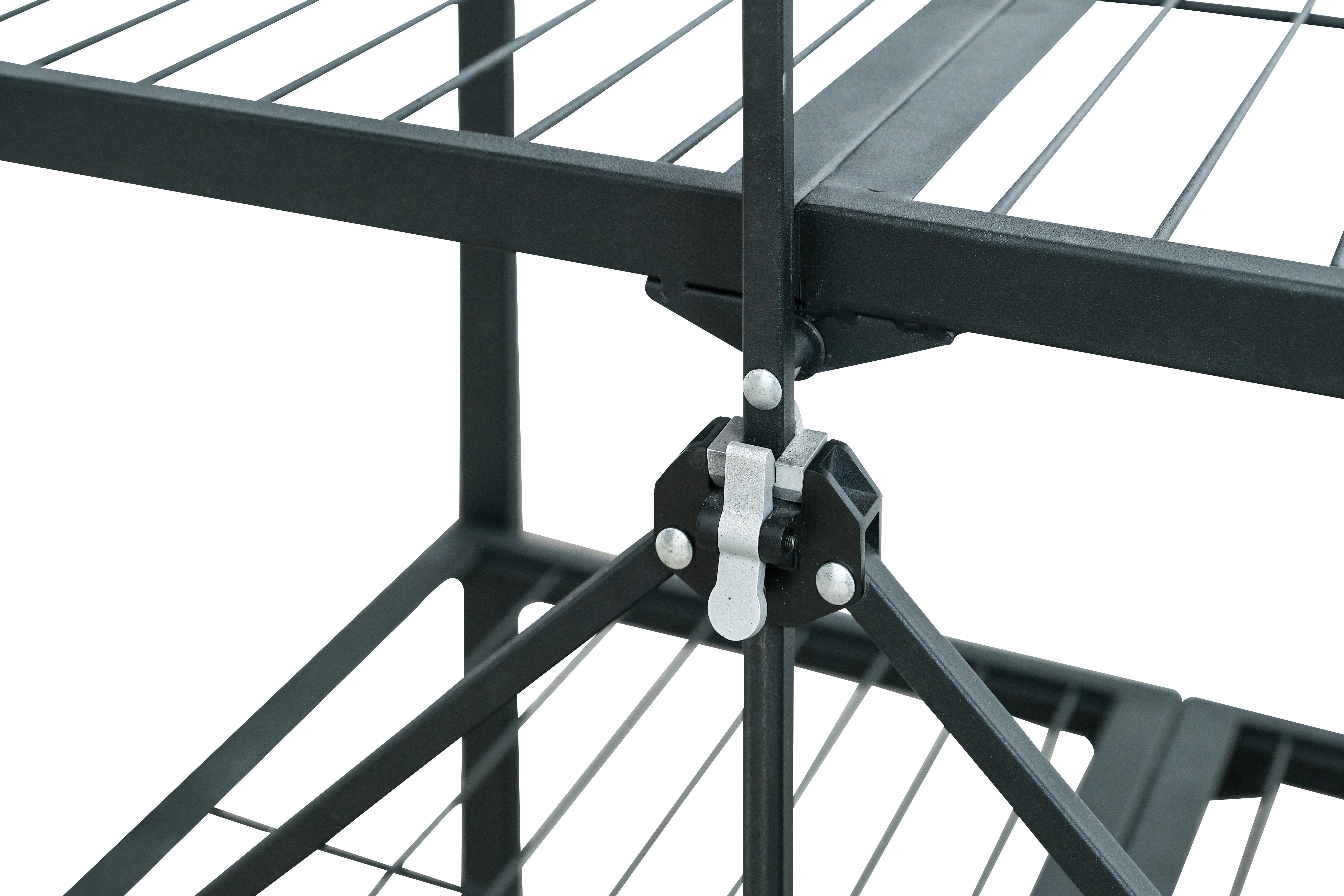 Each shelf holds 250 lbs without wheels as long as the weight is evenly distributed for a total weight of 1,000 lbs. The weight per shelf with wheels is recommended to be 75 lbs. when evenly distributed for a total of 300 lbs. This rack is collapsible and features an auto locking system. No tools are required for assembly. Includes easy glide locking wheels to use if desired. This rack features a durable rust resistant powder coated finish. Recommended age group: Adult, Seniors and Teens