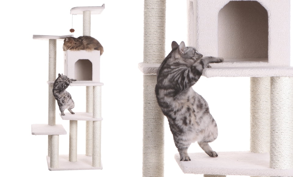 Armarkat 68-in Cat Tree & Condo Scratching Post Tower, Ivory