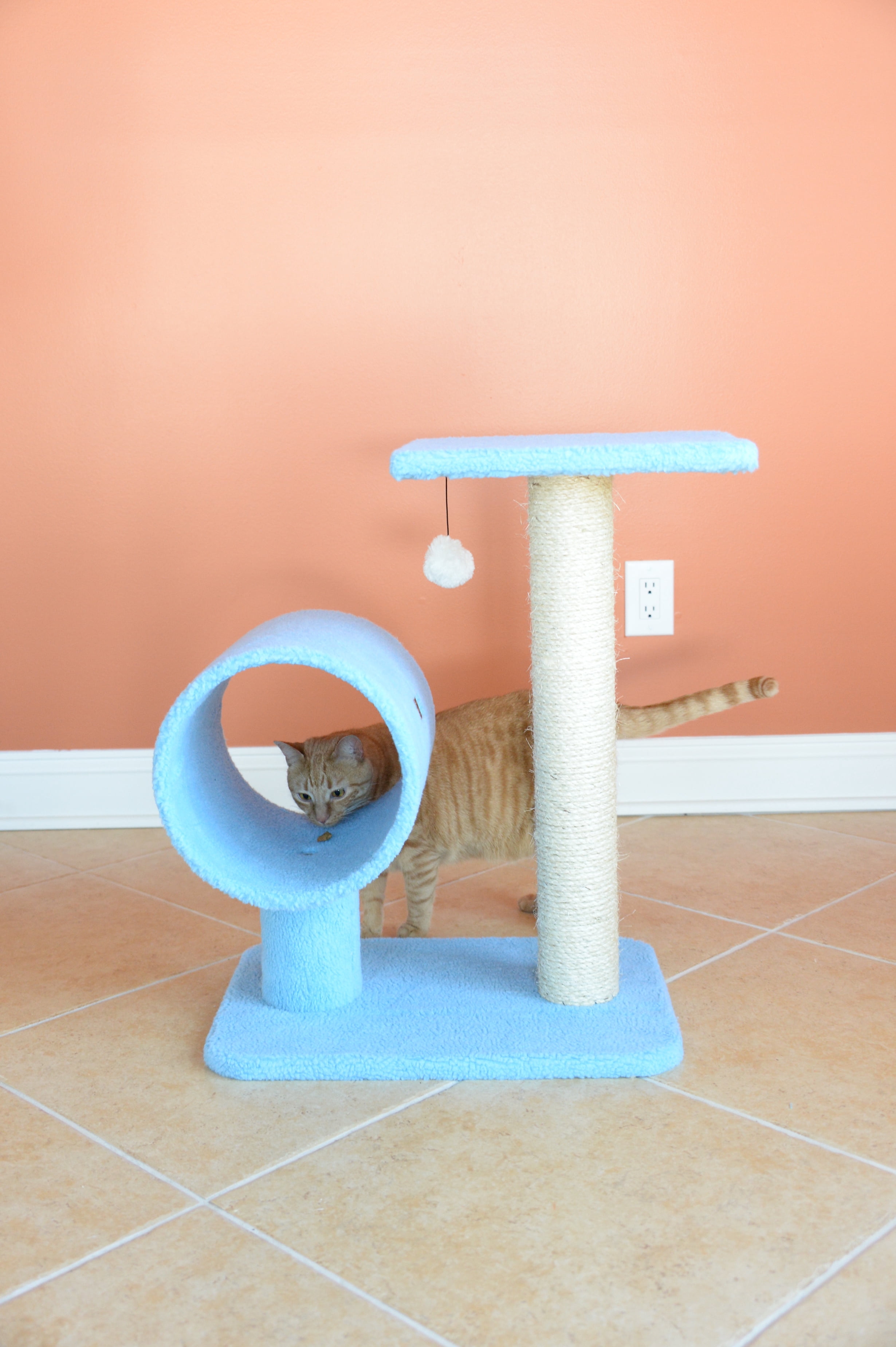 The Armarkat model B2501 Classic cat tree is Cat Daddy Approved by noted cat behaviorist Jackson Galaxy. This compact tree is made of pressed wood with a faux fleece covering. Features with Scratcher and Tunnel for privacy and hiding.F & B Bullet: 25″ height, Ske blue with high density faux fleece covering for feline’s comfort and soft, coverings are permanently adhered to wood structures. Well constructed of 15mm pressed wood material, making it not only thicker but stronger. 100% natural, seasoned sisal rope wraps all posts securely for years of “scratchability.” Dimensions: Post Diameter: 3.5″, 4.5″; Base: 20″ x 14″ ; Playhouse: N/A; Perch: 14″ x 12″ Maximum Holding Weight: 15 lbs Recommended for all cats and kittens 10 weeks or older Six-month warranty included.Replacement parts available from manufacturer.