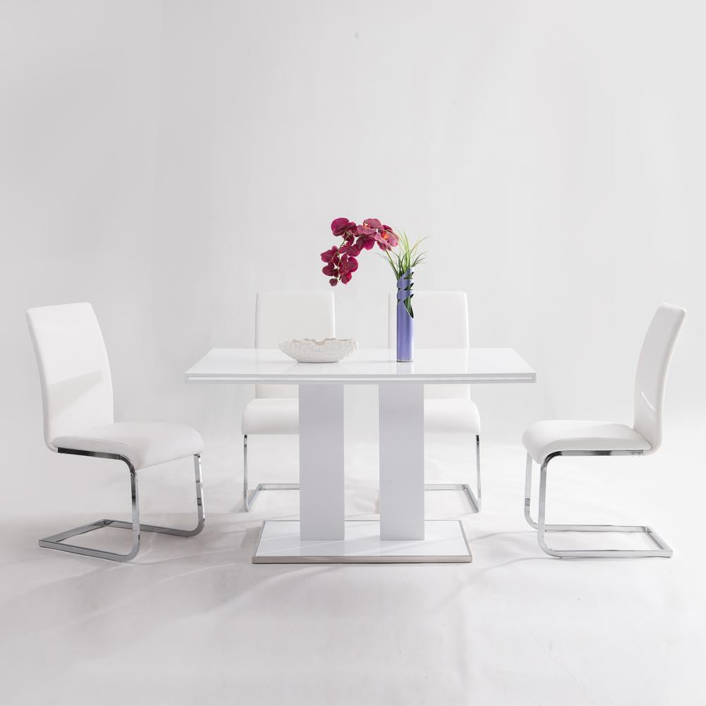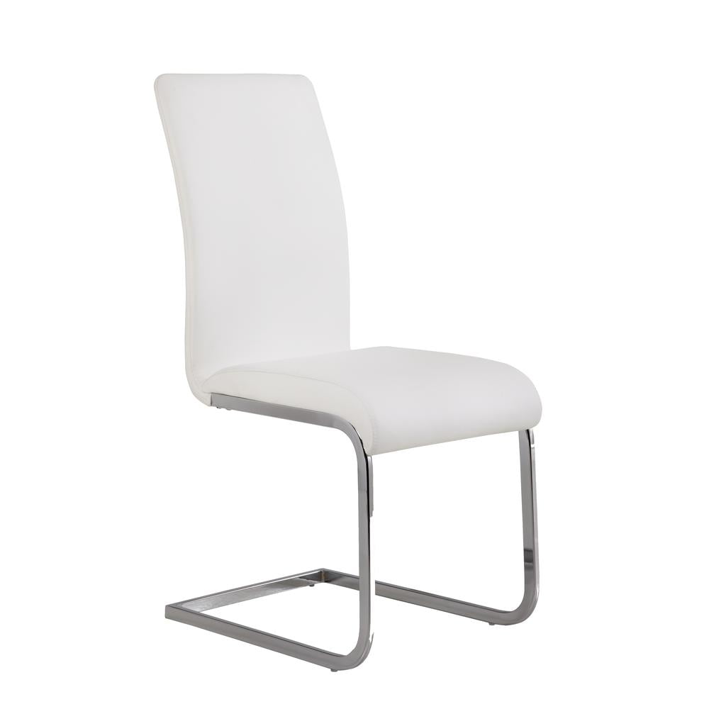 Material: Faux leather Finish: White Fill the void in your dining room with a self expressing feat of modern design. Stylish and inventive, Manufactured to the highest quality standards. Stainless Steel Frame Construction
