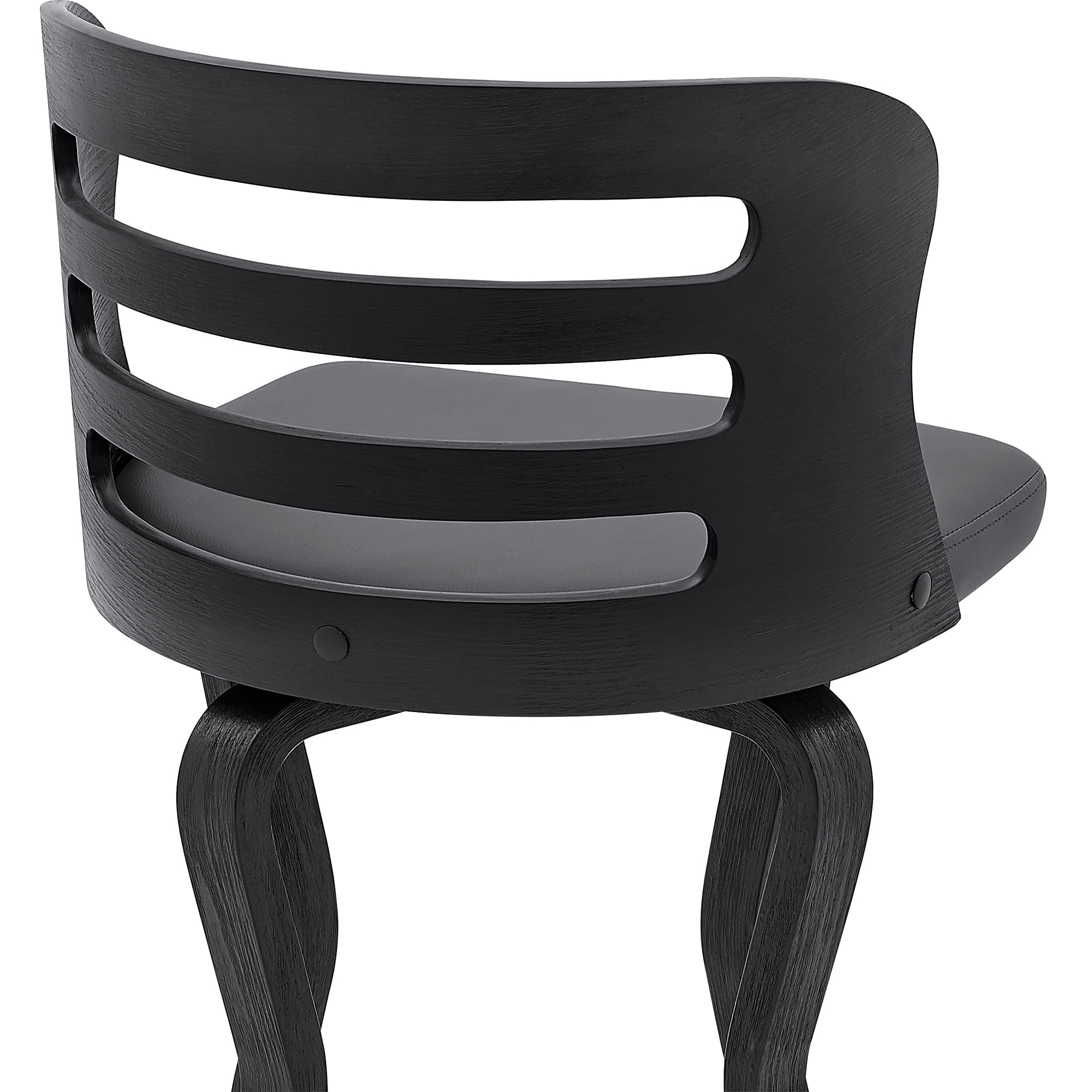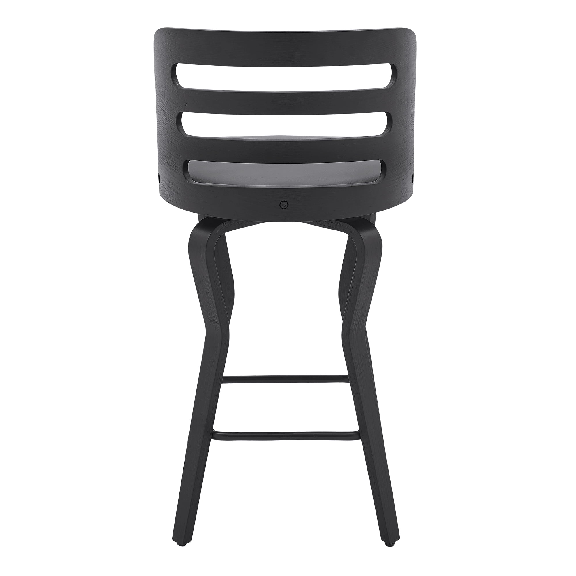 Gather your family and friends and seat them in the Verne 26″ Gray Faux Leather and Matte Black Wood Swivel Barstool from Armen Living. This wonderful bar stool is crafted to be breathable, with its slotted back, as well as functional, with the 360-degree swivel function for full mobility. The faux-leather upholstery is soft, yet durable – covering the soft foam-padded seat, giving you the look, feel, and longevity you have always been looking for. The wood chair back and legs are crafted to be durable sturdy, doing all the work for you by maintaining themselves for many years to come. The Verne also features an additional footrest for extra comfortability. Also available in 26″ counter height and 30″ bar height.