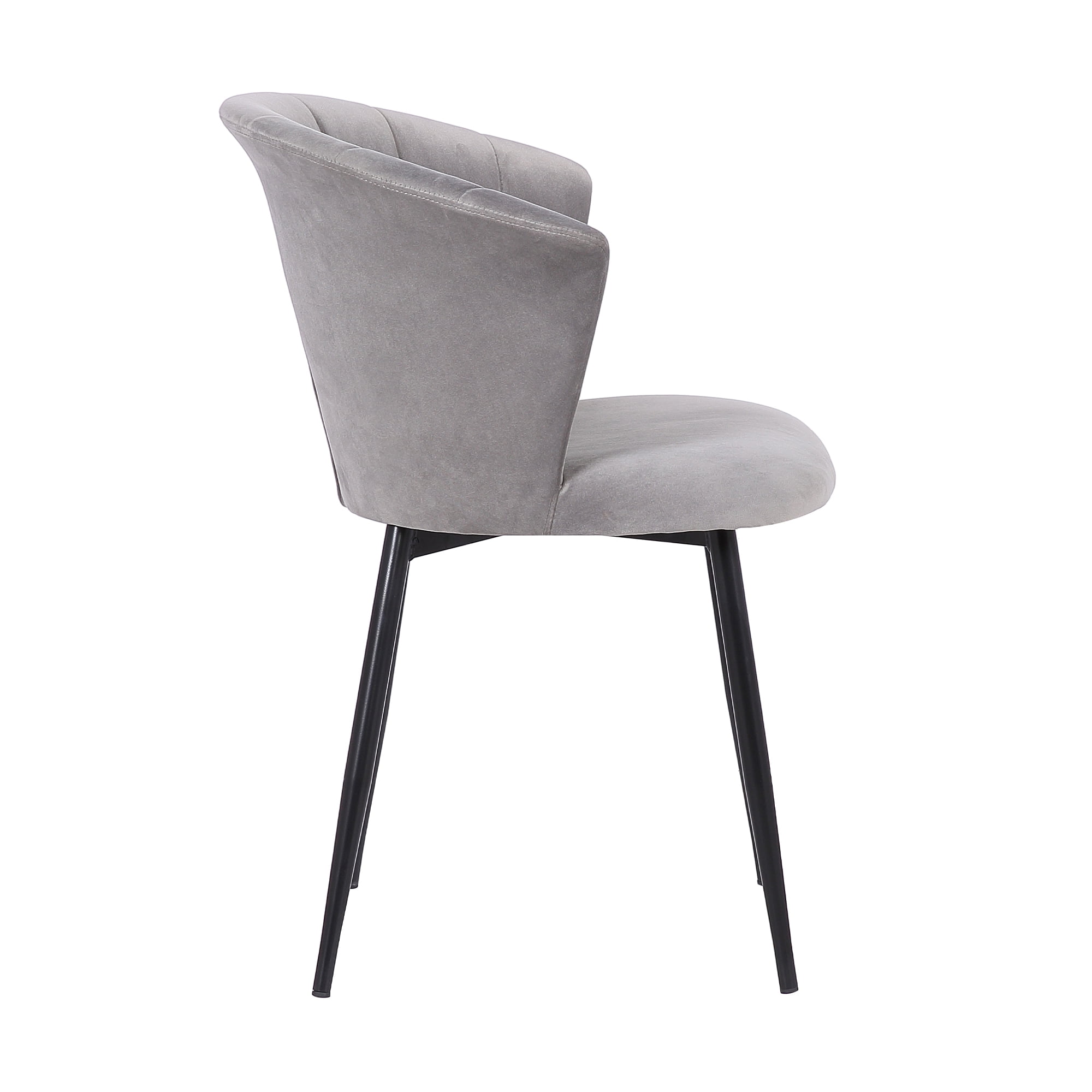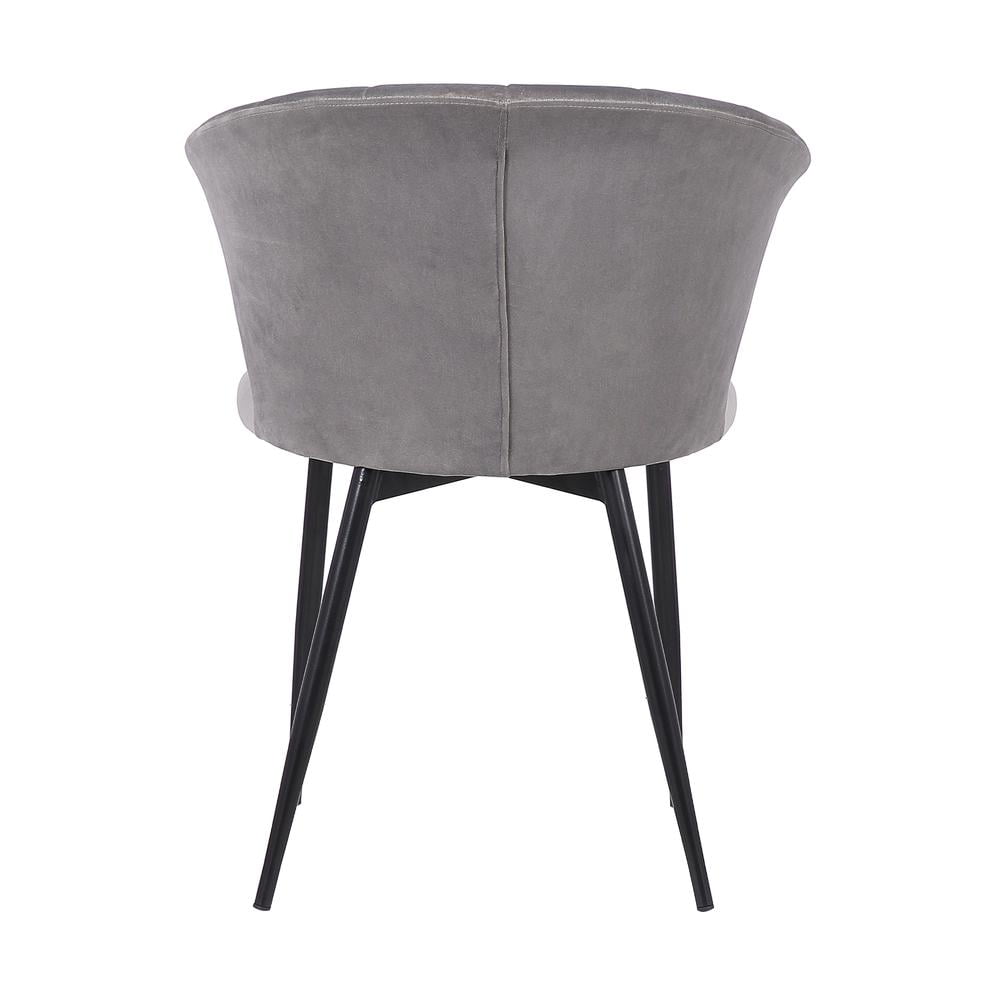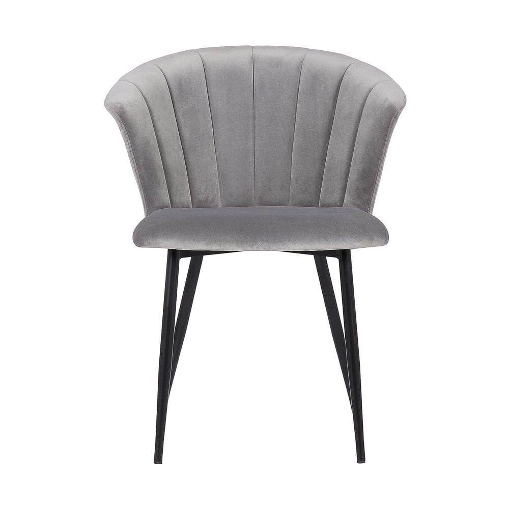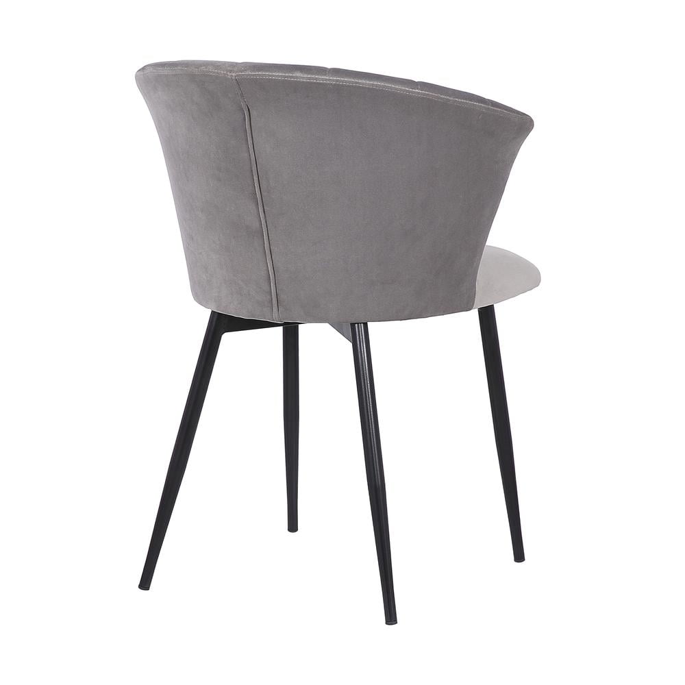 Materials: Velvet, metal Finish: Gray, black Thoughtfully crafted of high quality materials for years of enjoyment The high back on the Lulu chairs is not only a stylish focal point but also provides optimal back support allowing for hours of comfortable seating Black powder coated steel frame assures longevity and dependable design Added floor protectors prevent scratched and scrapes on floors The soft gray velvet wraps the foam-padded cushions offer extreme comfort, which helps to support and relax your back and body.