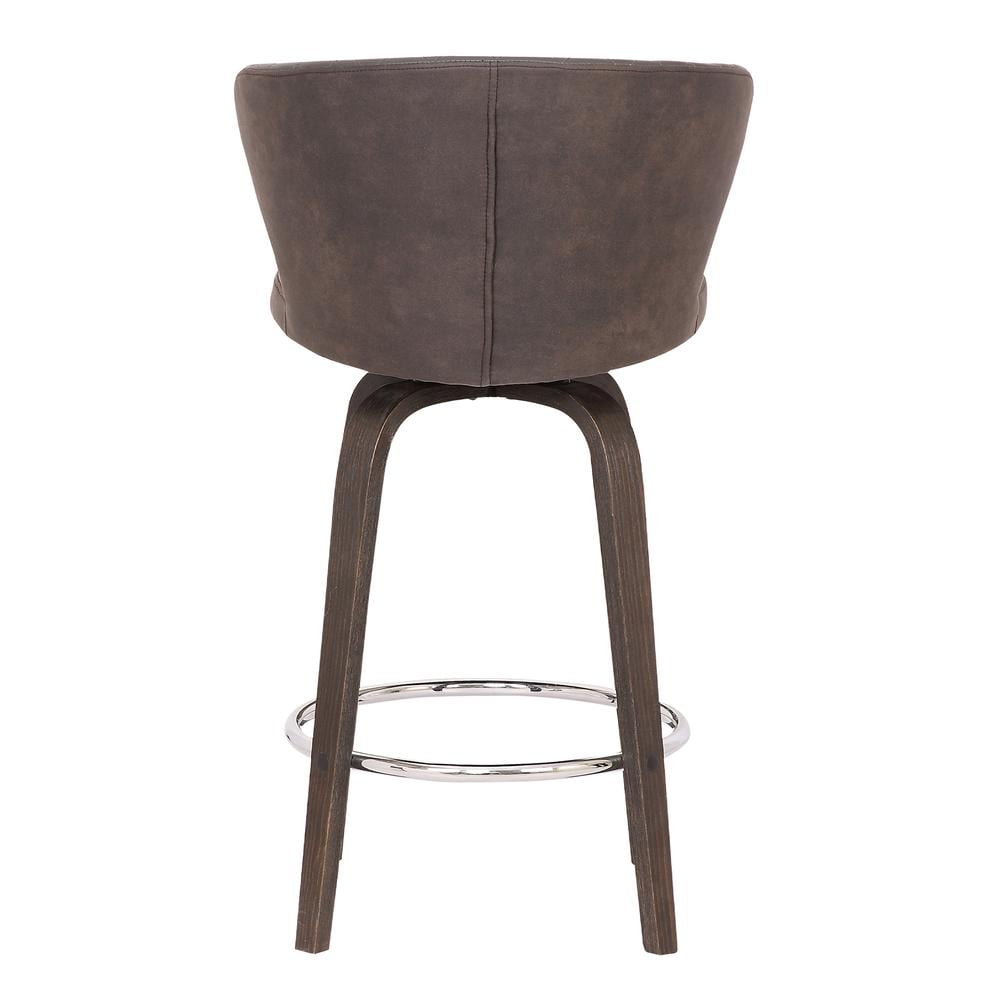 Armen Living Mynette 30″ Faux Leather & Wood Swivel Bar Stool in Brown