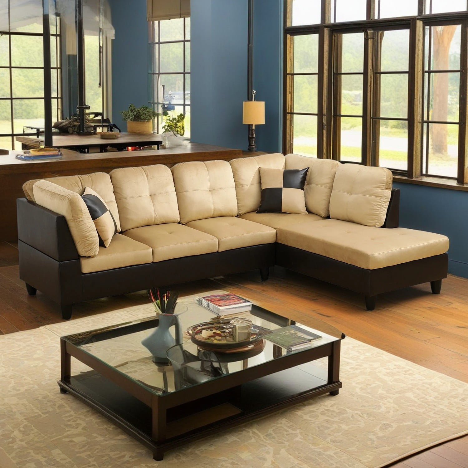 Material: Faux leather, wood, steel Finish: Brown, chrome Tall back offers exceptional user lumbar support without detracting from overall appearance Foam padded seat is exceptionally comfortable and appealing to the eye Available with Grey, Pink, Blue, or Green fabric upholstery NOTE: Fabric color and saturation may vary due to lighting and monitor/phone screen settings.