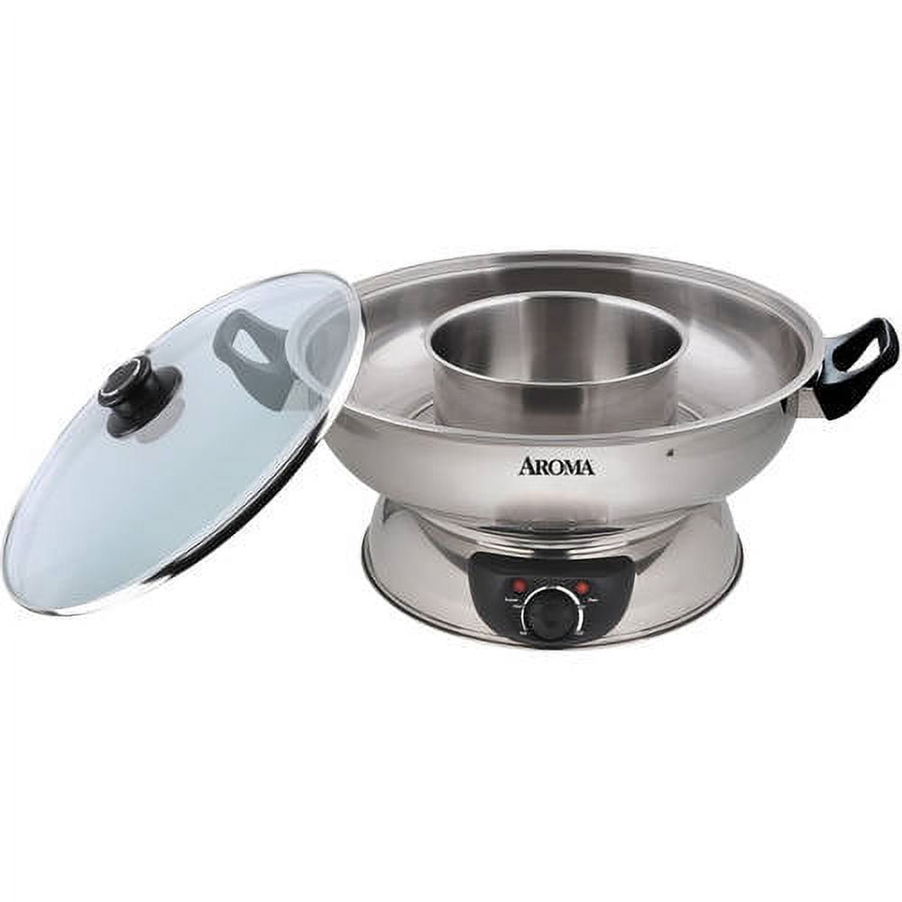 AROMA® 5Qt. Electric Shabu Shabu Hot Pot (ASP-600): Durable but lightweight stainless steel cooking pot 1500 wattage power that heats up fast and cooks food evenly Adjustable power dial for all of your hot pot needs; choose from Minimum, Medium and High heat settings Removable pot is dishwasher safe for easy clean up Great for family meals, communal gatherings or entertaining