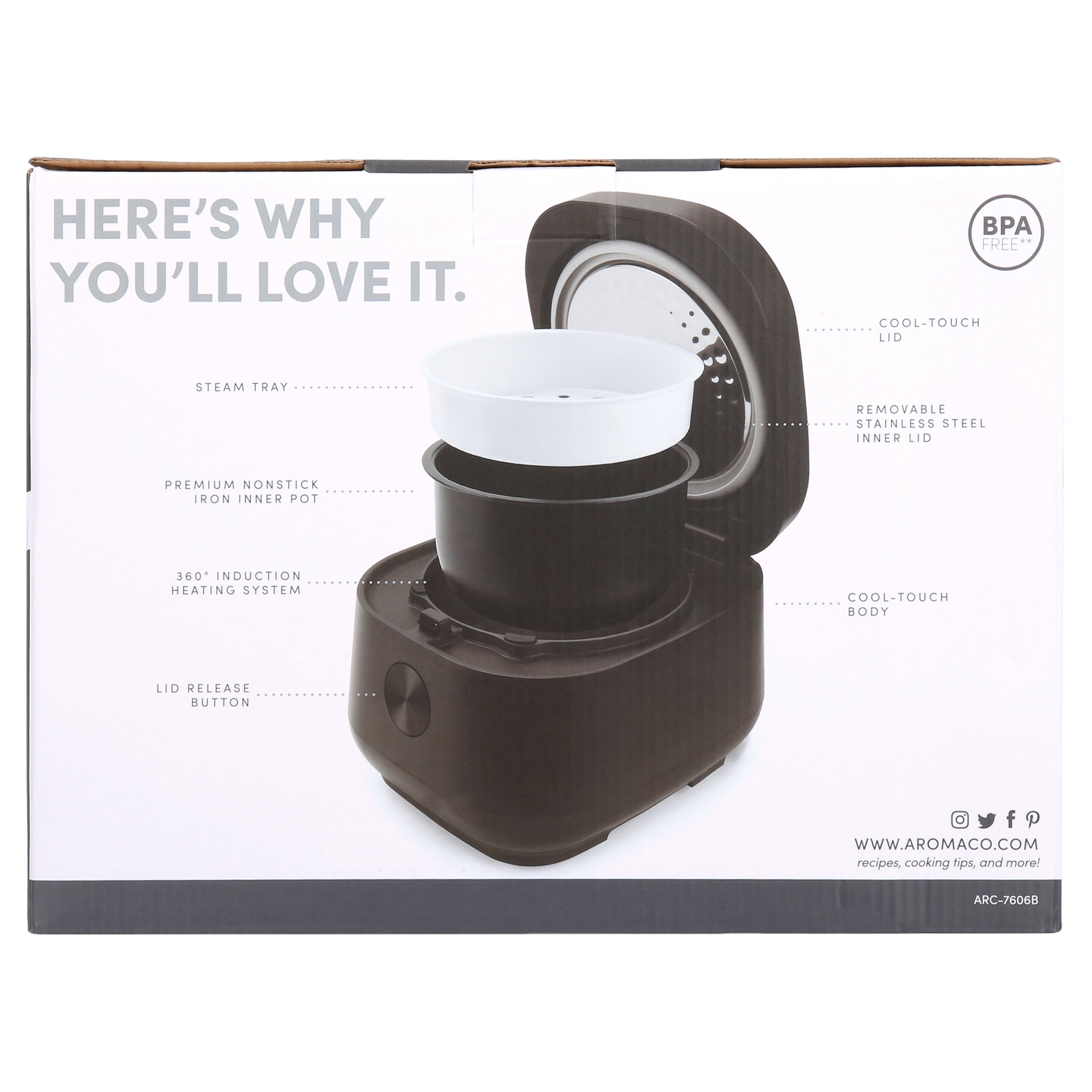Aroma’s 12-cup (cooked) induction multicooker is the key to better, more balanced meals. Now you can achieve the perfect rice texture every time. Too much water? Too much rice? This advanced rice cooker has dual sensors that adjust and fix your mistakes. Plus, 360-degree induction heat spreads around the entire pot, not just the bottom. Every grain is perfectly cooked without any hot spots! The heavy-duty iron pot is paired with an inner lid that traps heat under extra-thick stainless steel. This unique design actually locks in the flavor of fresh ingredients! Measure, steam, ladle and serve with matching accessories. Easily set a delay timer up to 15 hours or start cooking now.