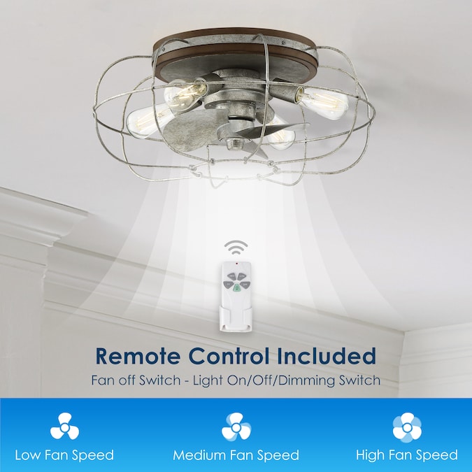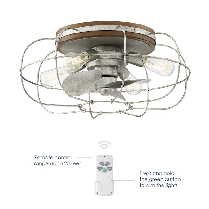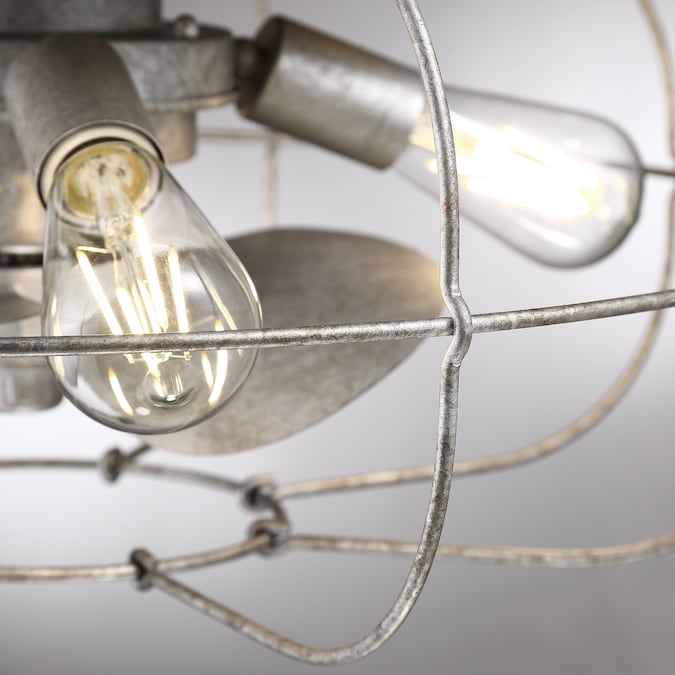 The Jaxon® Ceiling Fan is totally unique in the world of ceiling fans because it mounts flush to the ceiling. That makes this fan is ideal for use in rooms with lower ceilings. The Jaxon® Ceiling Fan in Galvanized finish adds a classy look, and a cooling breeze to any room. The painted faux woodgrain accent adds a touch warmth to the rustic galvanized painted steel cage. This fan with lights is very versatile, and is ideal for use in medium to small sized rooms, like bedrooms, bathrooms, kitchens, laundry rooms, dens, and offices.