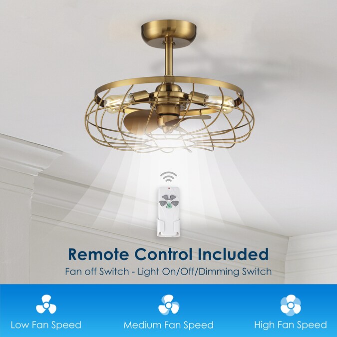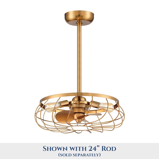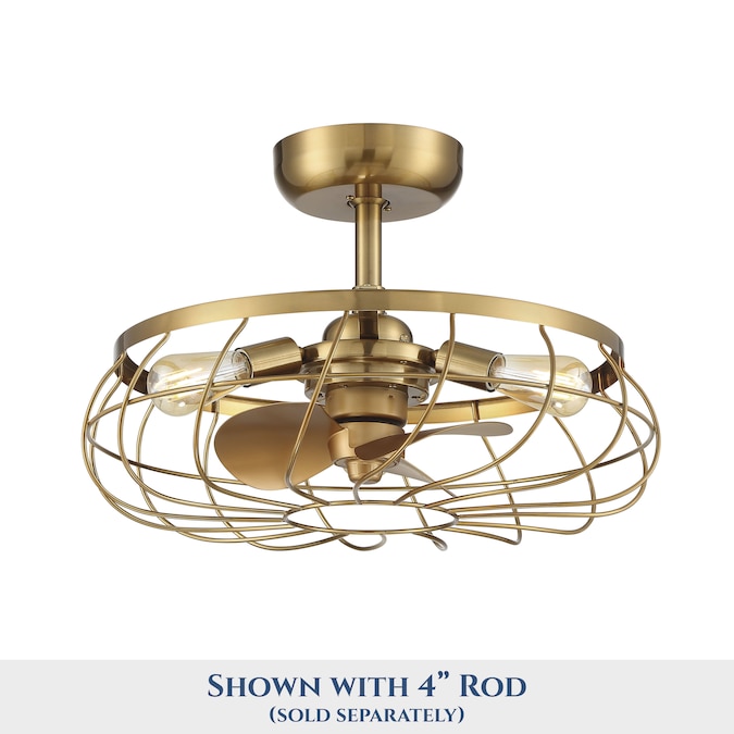 This unique ceiling fan with lights was designed by Arranmore Lighting Company, LLC. United States Patent Number US D986,458S. The Santiago® Ceiling Fan in aged brass finish adds warmth, charm, and a cooling breeze to any room in your home or office. The unique retro look of the steel cage design, is combined with air circulation and dimmable light performance.
