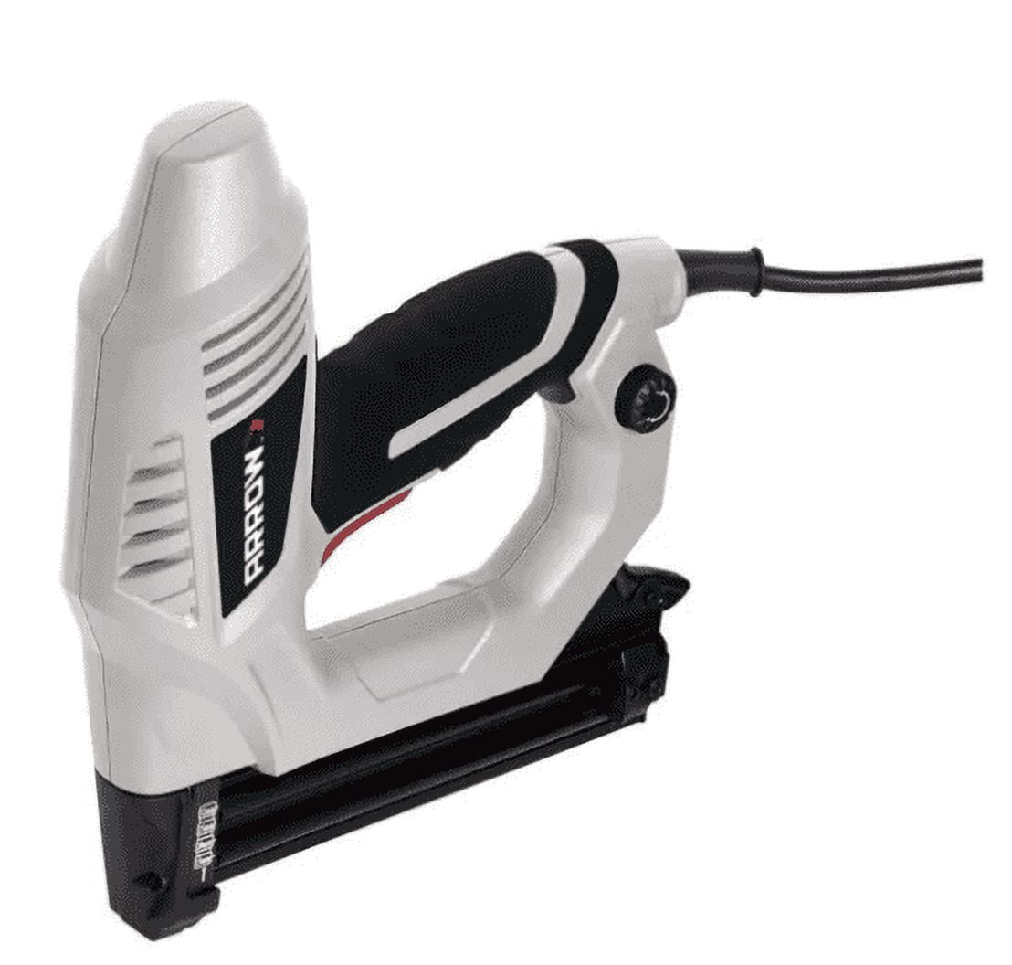 The Arrow ET200BN Electric Cordless Brad Nailer does it all. The tool’s adjustable depth control knob allows the operator to set the correct amount of power for every job – matching the size of the brad nail and the materials being nailed together. Ideal for wood trim and lattice work, the ET200BN features a soft comfort grip, matte finish, oversized trigger, contact safety, six-foot power cord, and convenient quick release magazine.