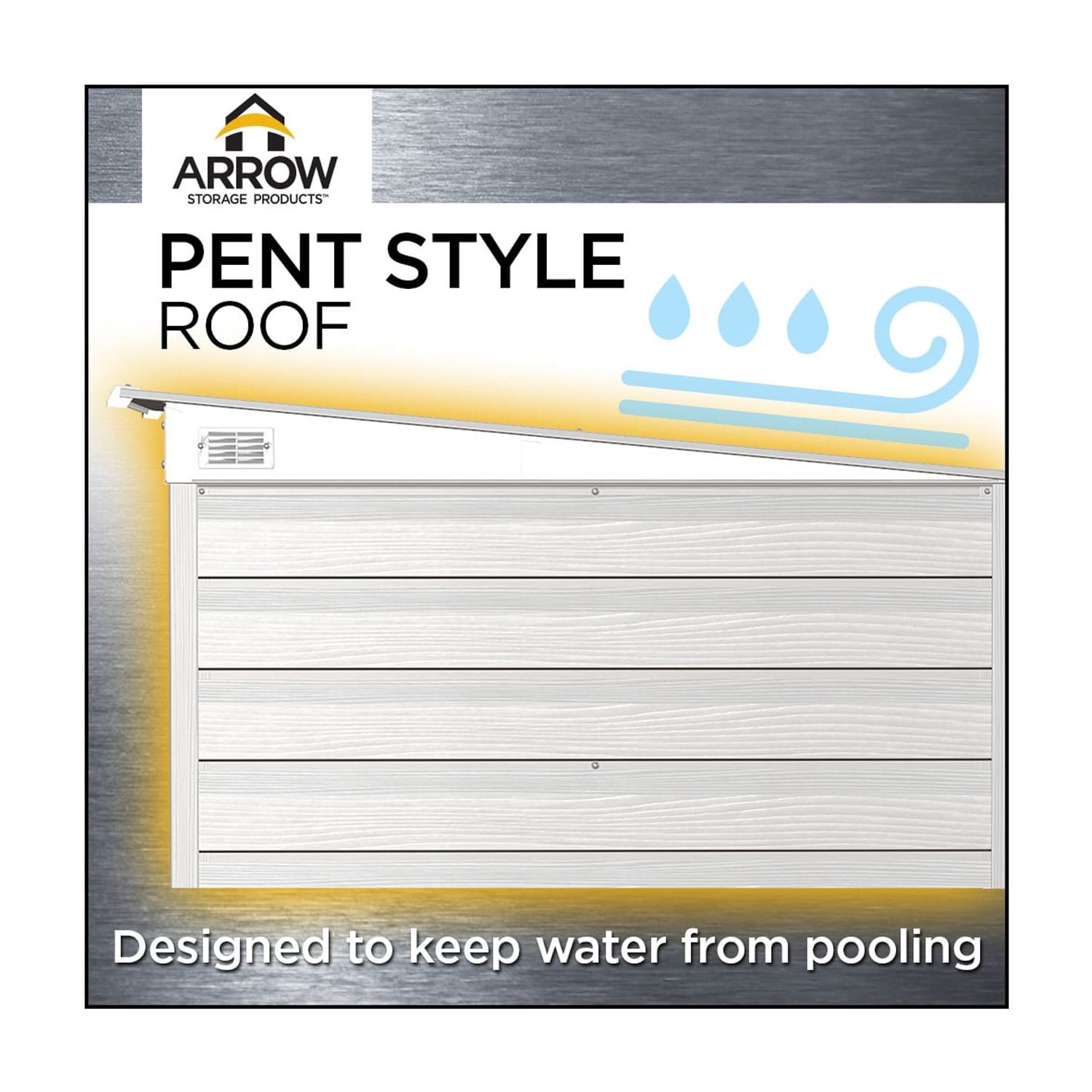 The Arrow Select Steel Storage Shed Line Of Strong, Sturdy Steel Storage Sheds Is A Pleasant Addition To Your Backyard. Made With Galvanized Steel That Is Treated To Provide Long-Term Protection Against Corrosion And Rust, Arrow Select Steel Storage Shed Sheds Are Engineered To Protect Your Stored Items From The Elements. Inside, The 71 In. Walls Provide Extra Headroom, Vertical Storage Space, And Added Entryway Clearance. That Makes It Great For Storing Ladders, Rakes, Pole Saws, And Anything You Want To Pile High. The Arrow Select Steel Storage Shed Line Also Has A Pent Style Roof To Prevent Pooling Of Rainwater And Debris, Built-In Air Vents For Better Circulation, And Locking Door Handles For Security. It Also Has A Smooth, Strong Sherwin-Williams Paint Finish That Protects It From The Elements And Gives The Steel Extra Protection From Rust And Corrosion.