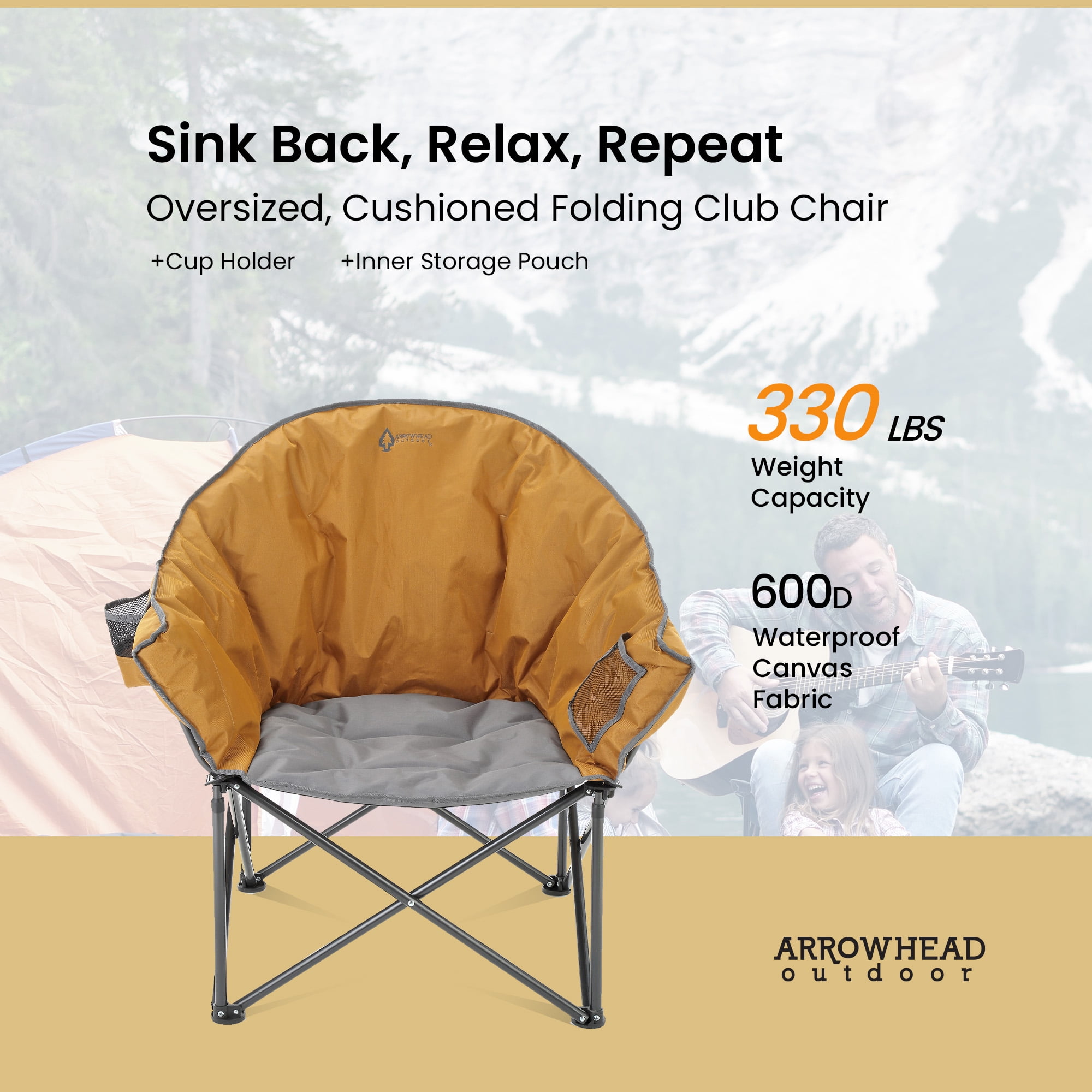 Kick Back in Comfort with the ARROWHEAD OUTDOOR Oversized Camping Chair Unwind in ultimate comfort with the ARROWHEAD OUTDOOR Oversized Heavy-Duty Club Folding Camping Chair. This chair is built for relaxation, offering a spacious moon saucer design that comfortably seats even the biggest campers. With a weight capacity of 330lbs, you can relax assured knowing this chair can handle it. Here’s what makes this chair the perfect outdoor companion: Oversized comfort: Moon saucer design offers ample space to relax and spread out. Heavy-duty construction: Built to last with a sturdy steel frame and durable 600D canvas fabric. Plush padding: Extra padding ensures maximum comfort for hours of sitting. Convenient features: Includes a cup holder and an external storage pocket for keeping your essentials close by. Portable and easy to store: Folds up compactly and comes with a carrying bag for convenient transport. Built for all conditions: Whether you’re at the campsite, beach, backyard, or sporting event, this chair is ready for anything. Additional perks: – Round saucer design promotes better weight distribution and stability. – Easy to set up and fold down in seconds. – Backed by USA-based customer support for your peace of mind. – Invest in quality and comfort with the ARROWHEAD OUTDOOR Oversized Camping Chair. Order yours today and experience the difference! P.S. Don’t forget to check out our other camping essentials to complete your outdoor setup!