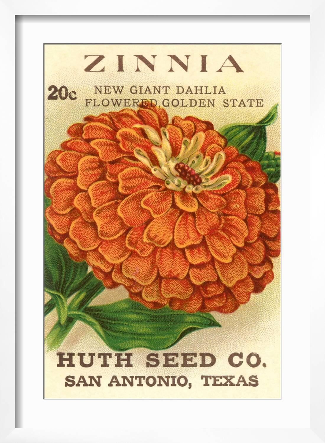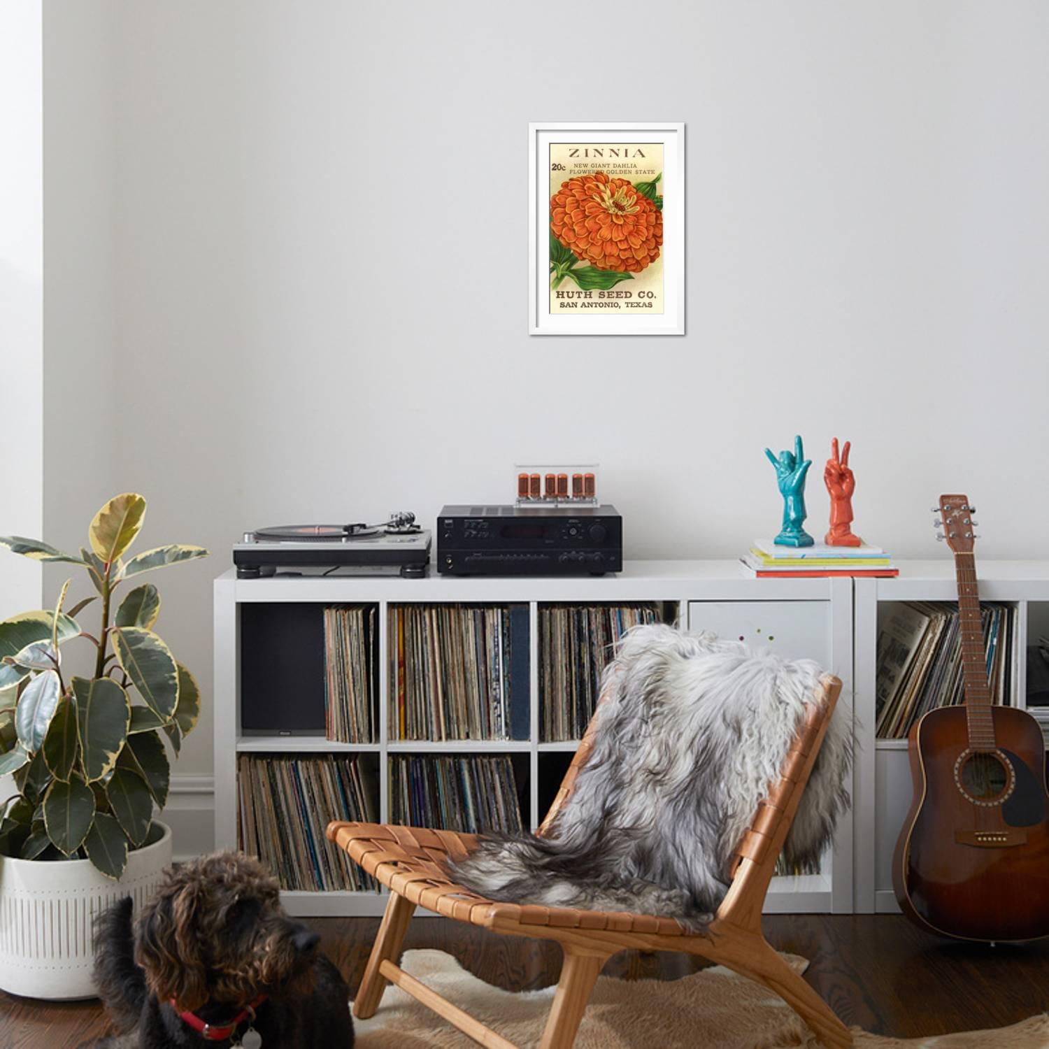 Art.com Zinnia Seed Packet Art Print, White Frame Wall Art, 17″ x 23″