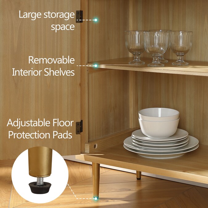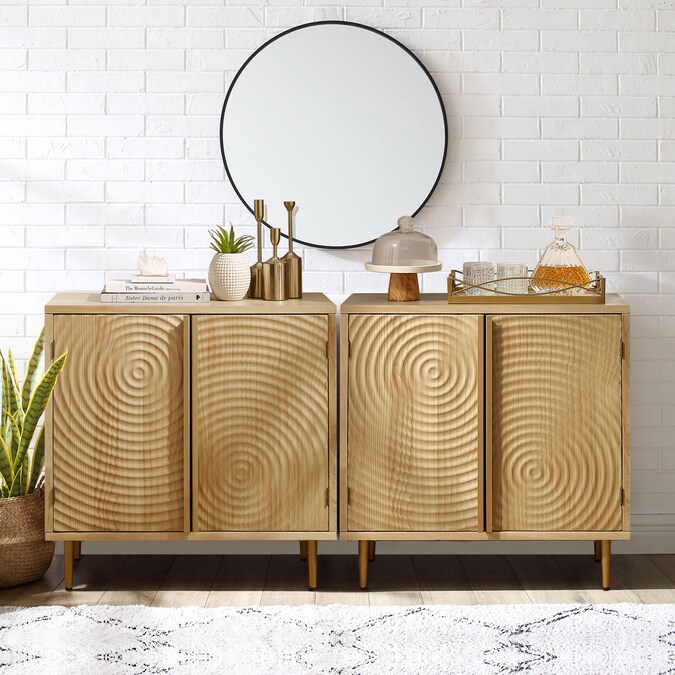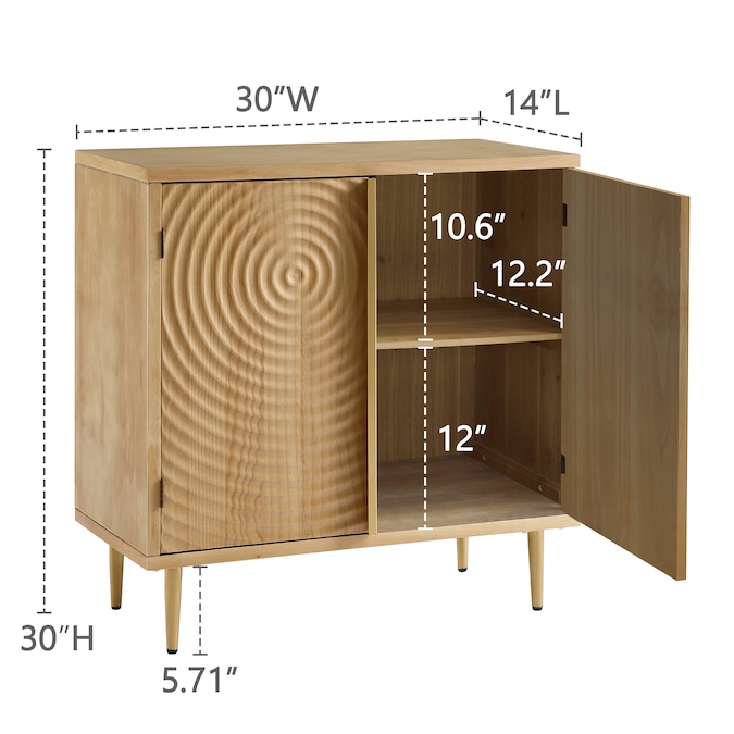 Bring rustic elegance to your space with this cabinet’s slat-textured doors. Interior shelf for storage.
