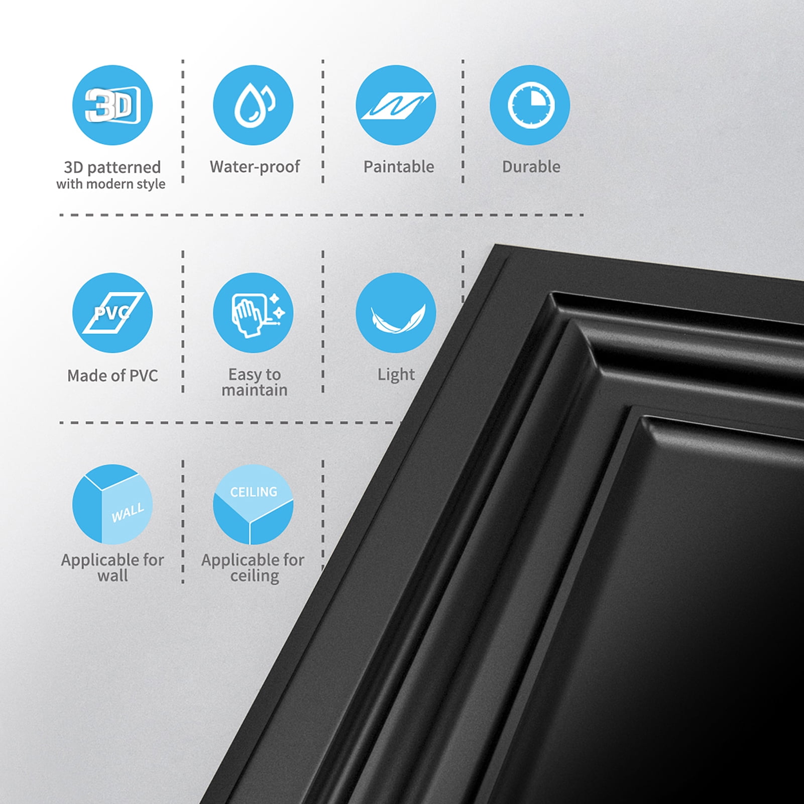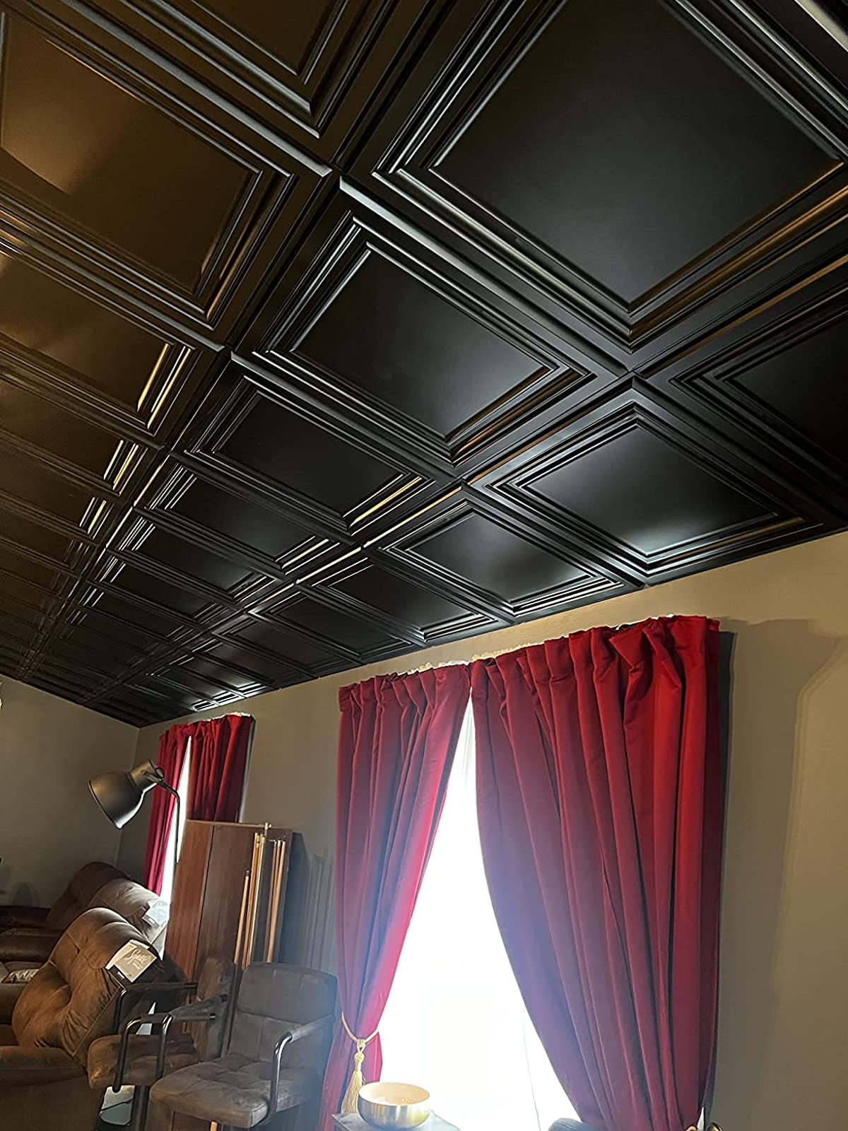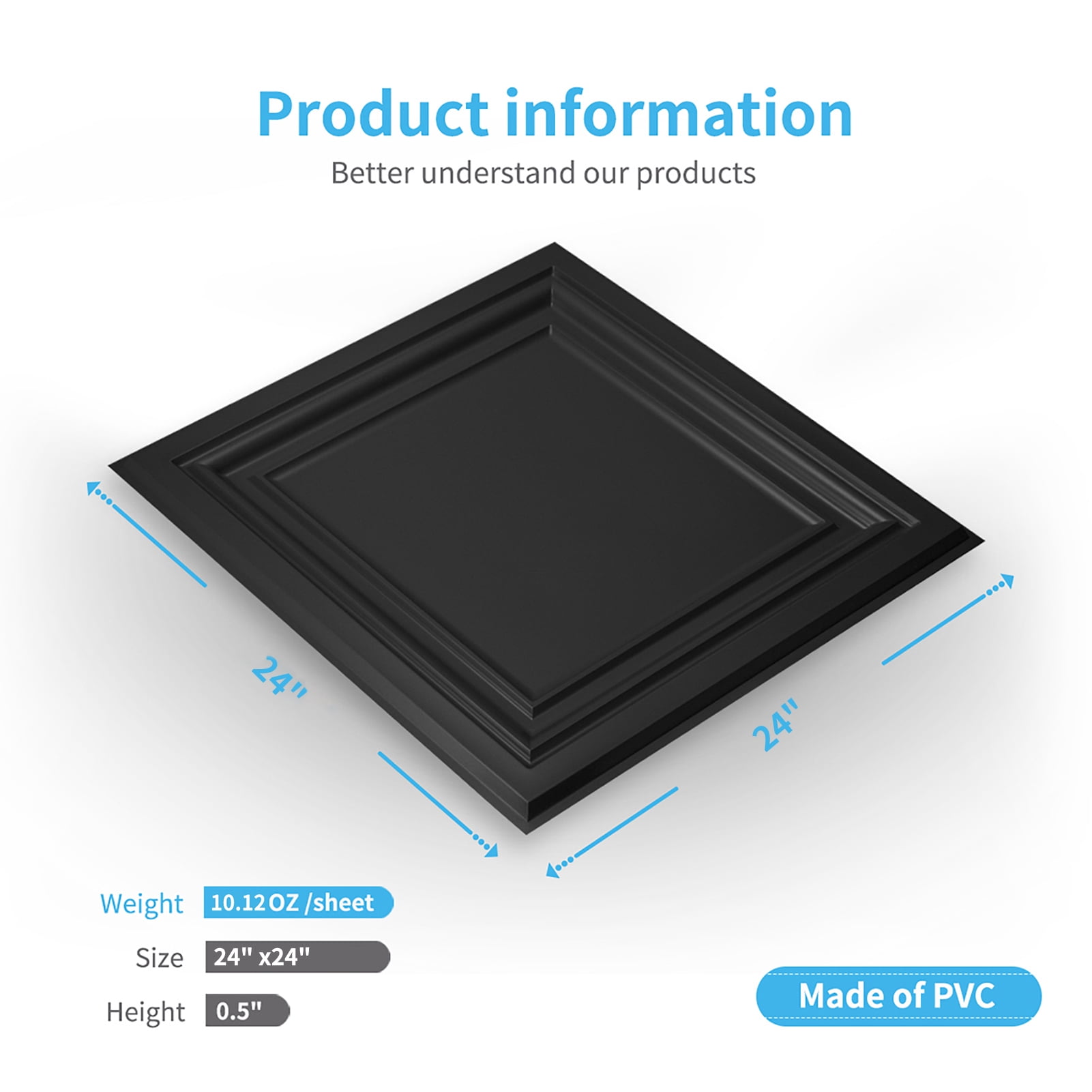 INSTALLATION-Easily lay into a standard 15/16″ T-bar drop ceiling grid system or glued over any flat substrates MATERIAL ADVANTAGE: It’s made out of lightweight PVC, flexible and will not crack, water and corrosion resistant for exceptional durability, safe and fully recycable QUANTITY: It contains 12 tiles of sized 24″x24″, and 1 part of blank tile for border filling. Covering 48 sq.ft CONSTRUCTION: It’s thin and lightweight, pretty easy to work with, paintable, cut with a snip, scissors or utility knife for quick and easy installation. MULTIPURPOSE: These elegant stylish 3D designs are excellent no matter for remodeling or new construction to ceiling or wall decoration