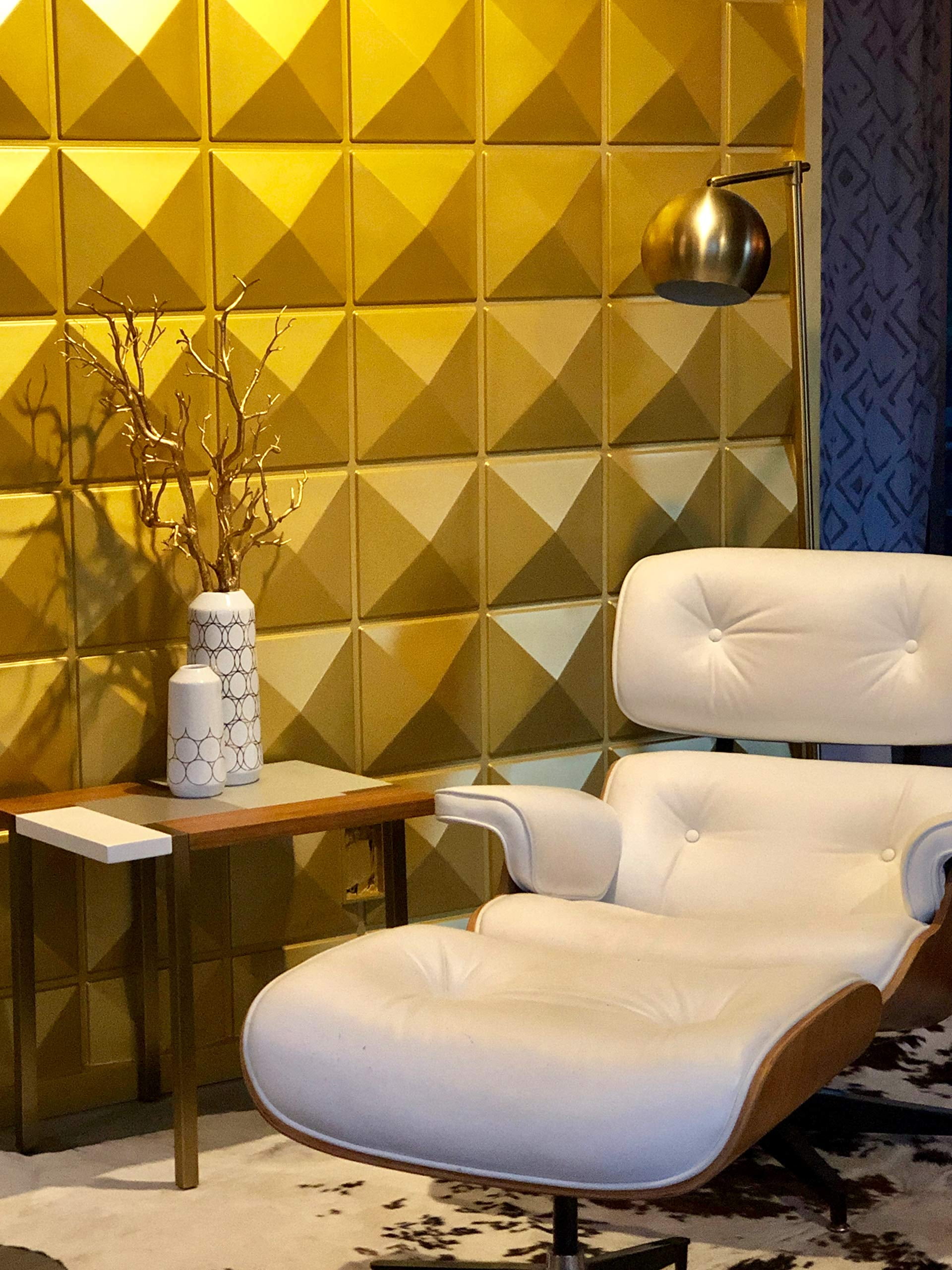 It comes with 12 pieces of white 3d wall panels and total covers 32.3 square feet; the size of each tile: 19.7″ x 19.7.” It comes in matte white color, paintable with any household paint Thickness: 0.05 inch (1.2mm); Embossed thickness: approximately 1 inch (25 mm) Waterproof can be cleaned with a damp cloth and used in interior wall decoration or exterior wall decoration. Favorite application places include the TV wall in the family room, bed headboards, staircases, children’s rooms, reception area, and many other places in the house; Commercial applications in restaurants, doctor’s office, clothing stores, and other retail settings are also a great way to appeal to customers.