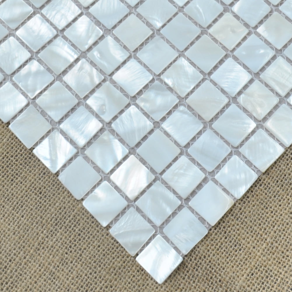 Premium quality genuine mother of pearl mosaic tile As a natural product, the hues in mother of pearl may vary. Come in pack of 10; Each Size: 11.8 x 11.8 x 0.1In. (300*300*2mm), Chip Size: 1″ * 1″ (25*25mm) Natural textured and mesh mounted Recommended Use: Kitchen Backsplash / Shower Walls / Bathroom Backsplash / Fireplace / Shower Room