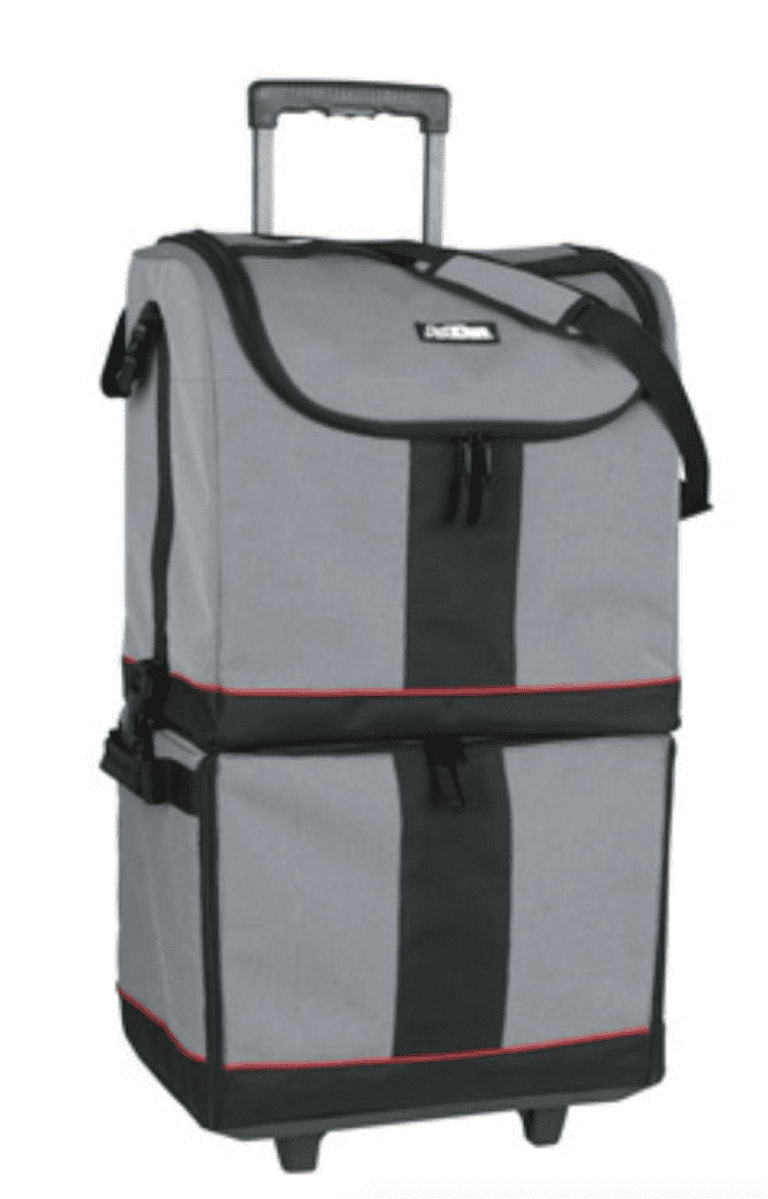 Organized Storage: The Tote Express Rolling Bag offers an easy, mobile, storage solution for all of your ArtBin Super Satchel containers. The tote is ideal for transporting all of your arts and crafts supplies. such as paint tubes and brushes, scissors, beads, ribbons or stamps. Super Portable Rolling Tote: The Tote Express Rolling Bag has a padded shoulder strap and side handles for comfortable carrying. The tote is equipped with 4 wheels so that you can easily transport it to an art class, workshop or school. Offers maximum storage capabilities with the ease of wheeled transport! Convenient Design: The Tote Express Rolling Bag features a bottom unit with large, open base for bulkier supplies such as a sewing machine or large boxes and top unit with 26 loops for markers, pens, brushes, and other small supplies. Durable Materials: The ArtBin Tote Express is made from a durable polycanvas material that will withstand wear and tear. The bottom unit is securely mounted to the double rollerskate wheelbase. Product Details: The Tote Express Rolling Bag measures 18 x 13 x 30. 5 inches total. The top section of the tote is 18 x 13 x 16. 25 inches and the bottom section is 18 x 13 x 14. 25 inches. The bottom unit is designed to be large enough to store your sewing machine. Top Unit is shipped inside Bottom Unit, some assembly required.