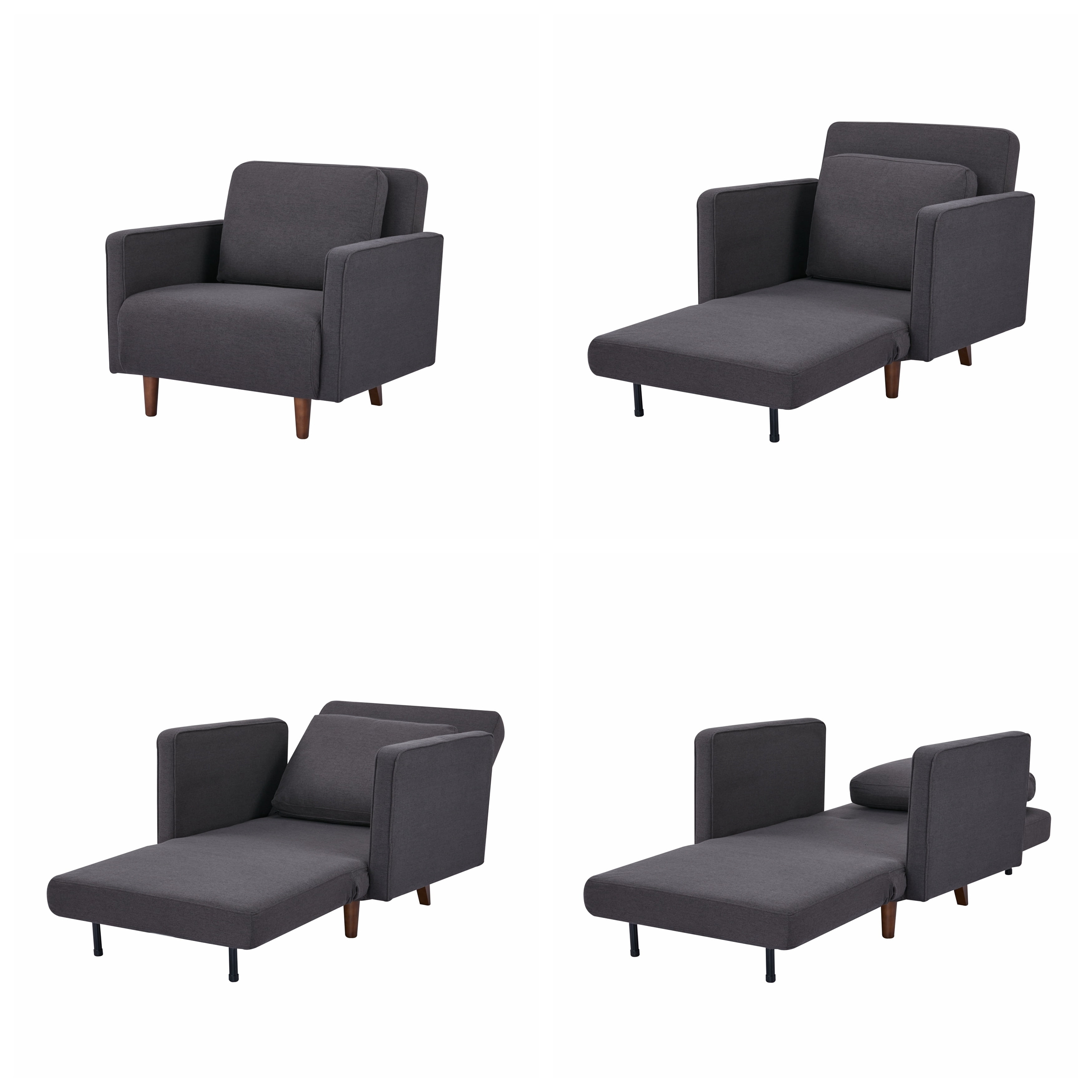 Easily converts from a chair to a chaise lounge or a twin bed Made of a naturally strong pine wood frame Cushioned with comfortable and supportive foam